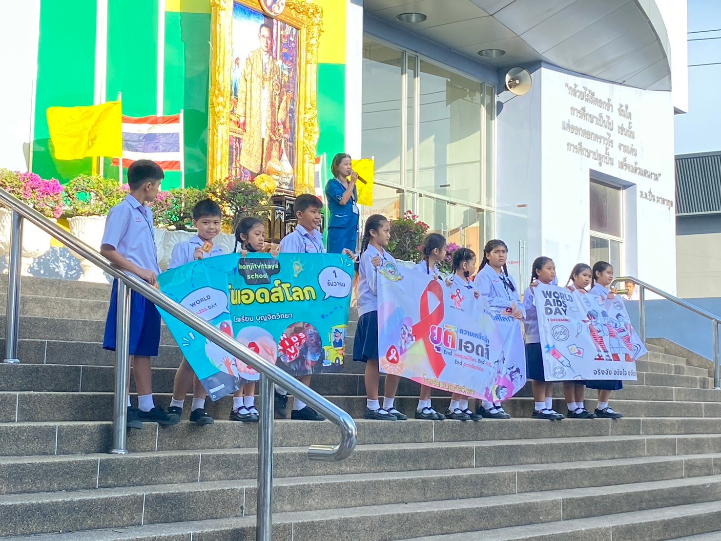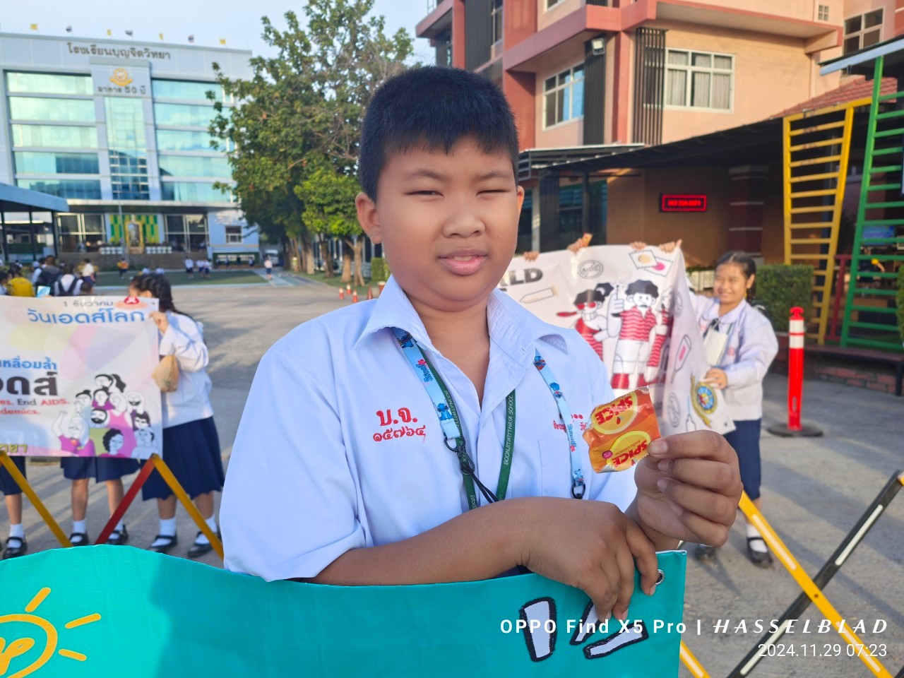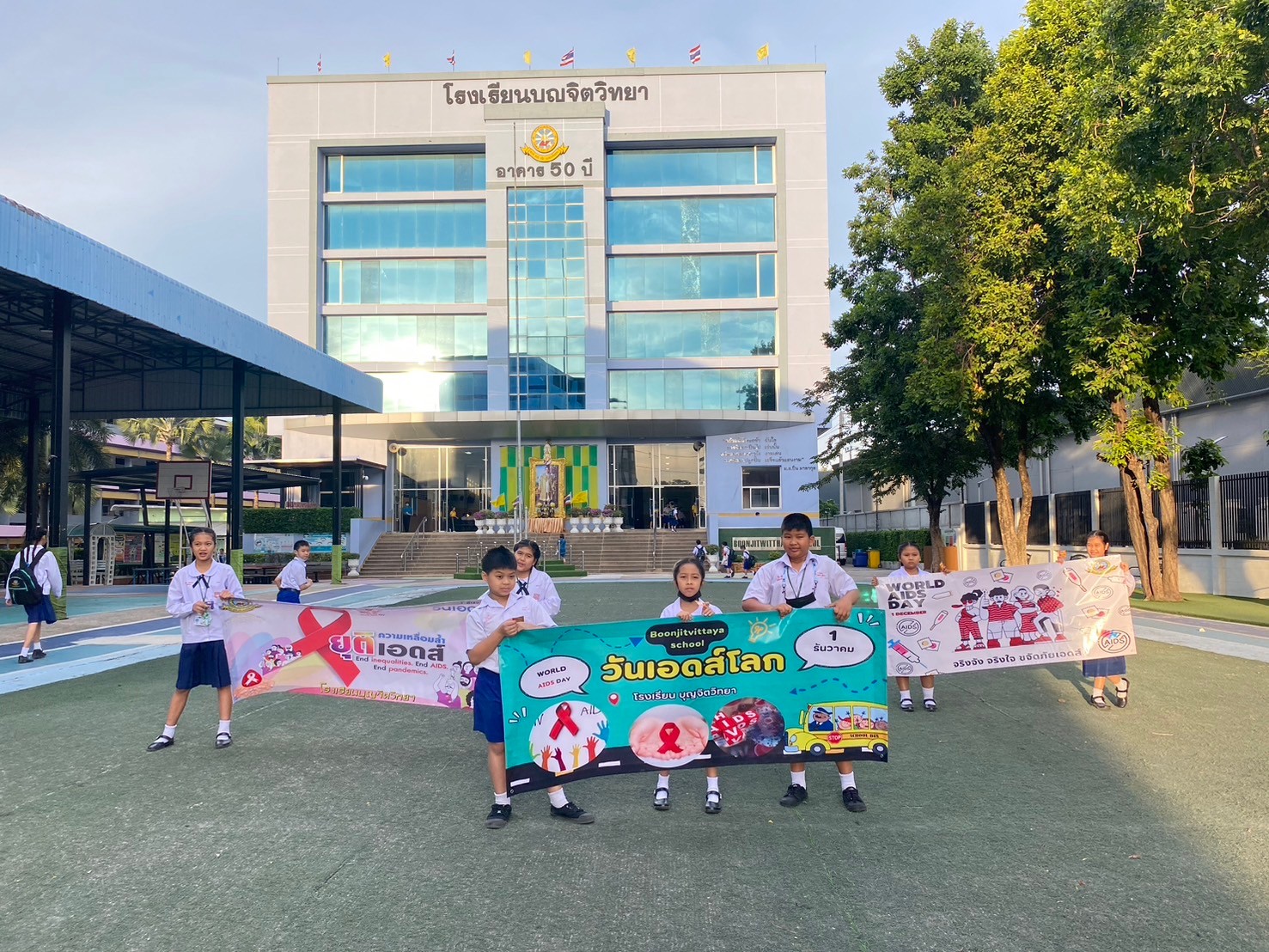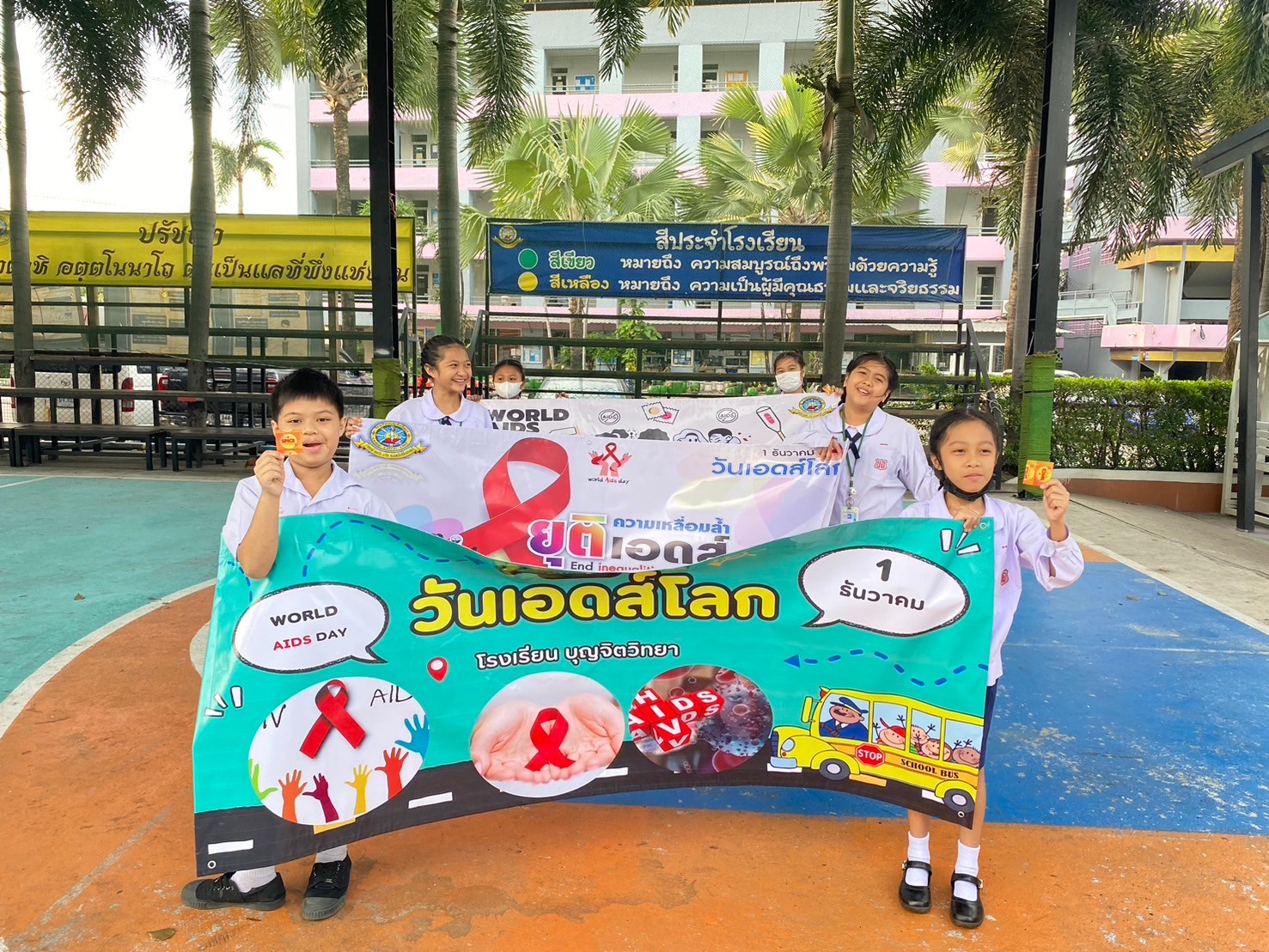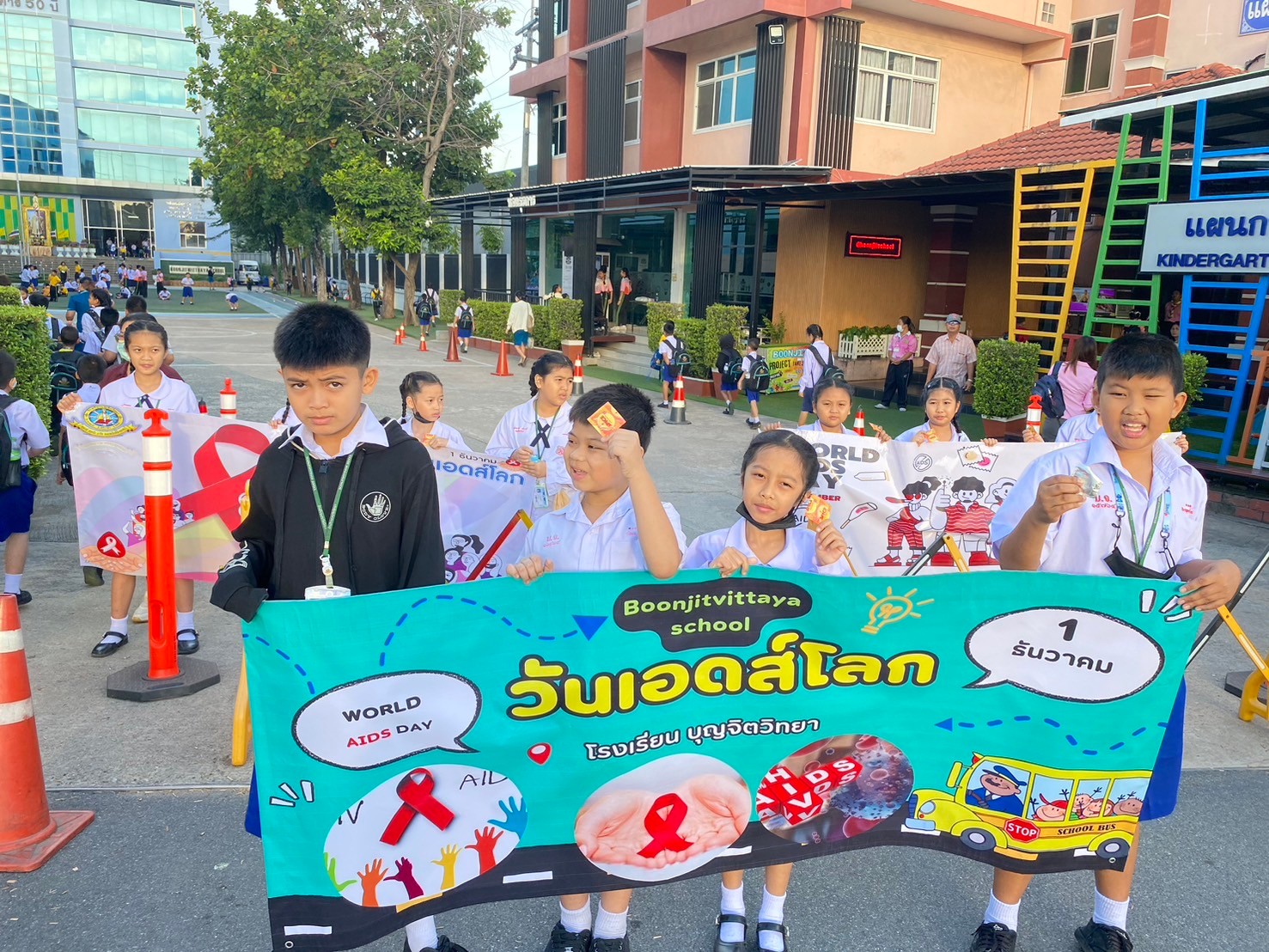 วันศุกร์ที่ 29 พฤศจิกายน 2567 เนื่องในวันเอดส์โลก ซึ่งตรงกับวันที่ 1 ธันวาคมของทุกปี โรงเรียนบุญจิตวิทยา ได้จัดกิจกรรมรณรงค์สร้างความเข้าใจที่ถูกต้องเกี่ยวกับโรคเอดส์ ซึ่งได้รับความอนุเคราะห์จากเจ้าหน้าที่สาธารณสุขเทศบาลนครแหลมฉบังเข้ามาให้ความรู้ ซึ่งจัดกิจกรรมบริเวณ ณ หน้าอาคาร 50 ปี และ หน้าอาคาร เลิศปัญญา