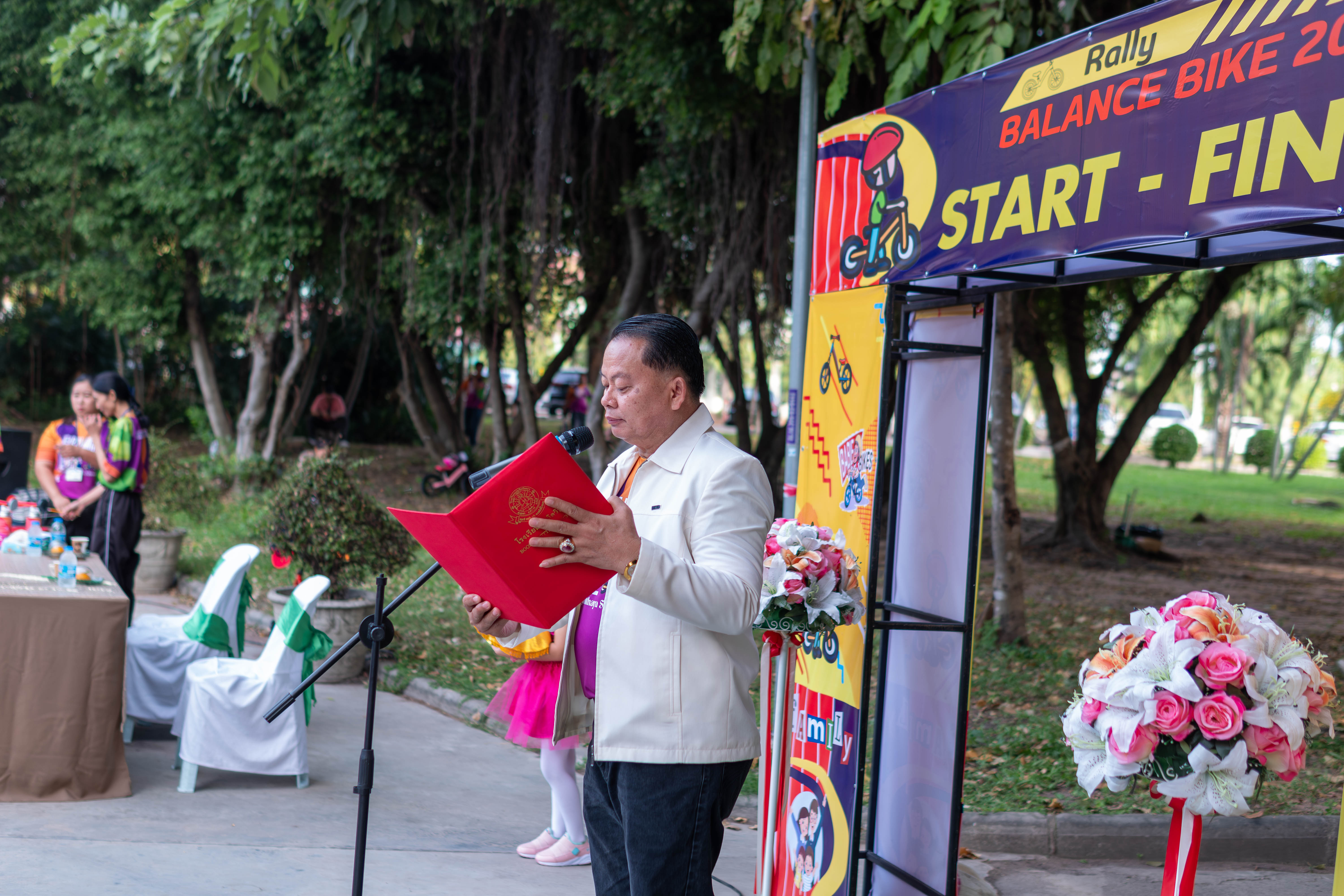 นายปรีชา ธรรมประเสริฐ มาเป็นประธานในพิธี นางชวาลา กันทอง ผู้อำนวยการโรงเรียนบุญจิตวิทยา เป็นประธานในพิธีกล่าวเปิดงาน "Balance Bike 2024"
