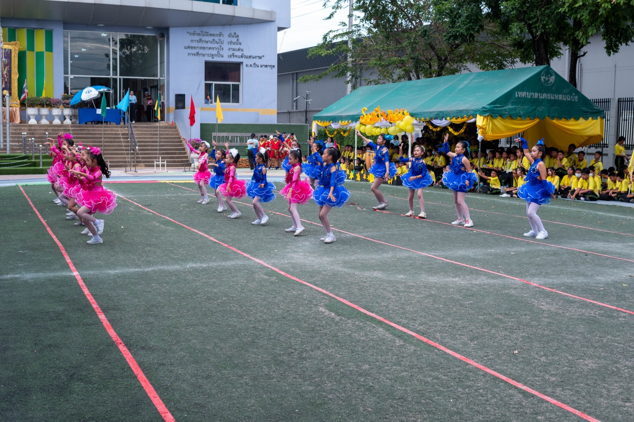 วันที่ 12-13 ธันวาคม 2567 กิจกรรมกีฬาสีภายใน "เขียว-เหลือง เกมส์" โดยมี นางชวาลา กันทอง ผู้อำนวยการโรงเรียนบุญจิตวิทยา เป็นประธานในพิธีเปิดการแข่งขัน กีฬาสีภายใน "เขียว-เหลือง เกมส์" ประจำปีการศึกษา 2567 เพื่อส่งเสริมให้นักเรียนเห็นความสำคัญของการออกกำลังกายและมีความสามัคคีในหมู่คณะ ณ สนามหน้าอาคาร 50 ปี