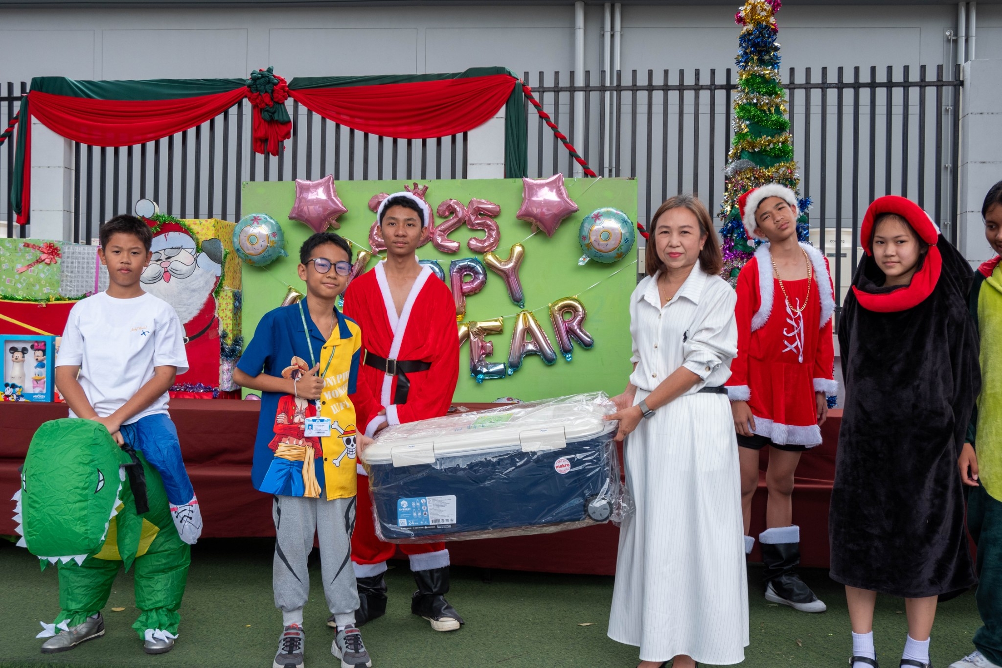 กิจกรรมวันส่งท้ายปีเก่าต้อนรับปีใหม่ Merry Christmas and Happy New Year 2025 โดยมีนางชวาลา กันทอง ผู้อำนวยการโรงเรียน คณะครู และบุคลากร ร่วมกันสนับสนุน ของขวัญให้แก่นักเรียน โดยจับฉลากมอบของขวัญวันปีใหม่ให้กับนักเรียนผู้โชคดีในระดับ เตรียมอนุบาลถึงมัธยมศึกษาปีที่ 3 ณ หน้าอาคาร 50 ปี