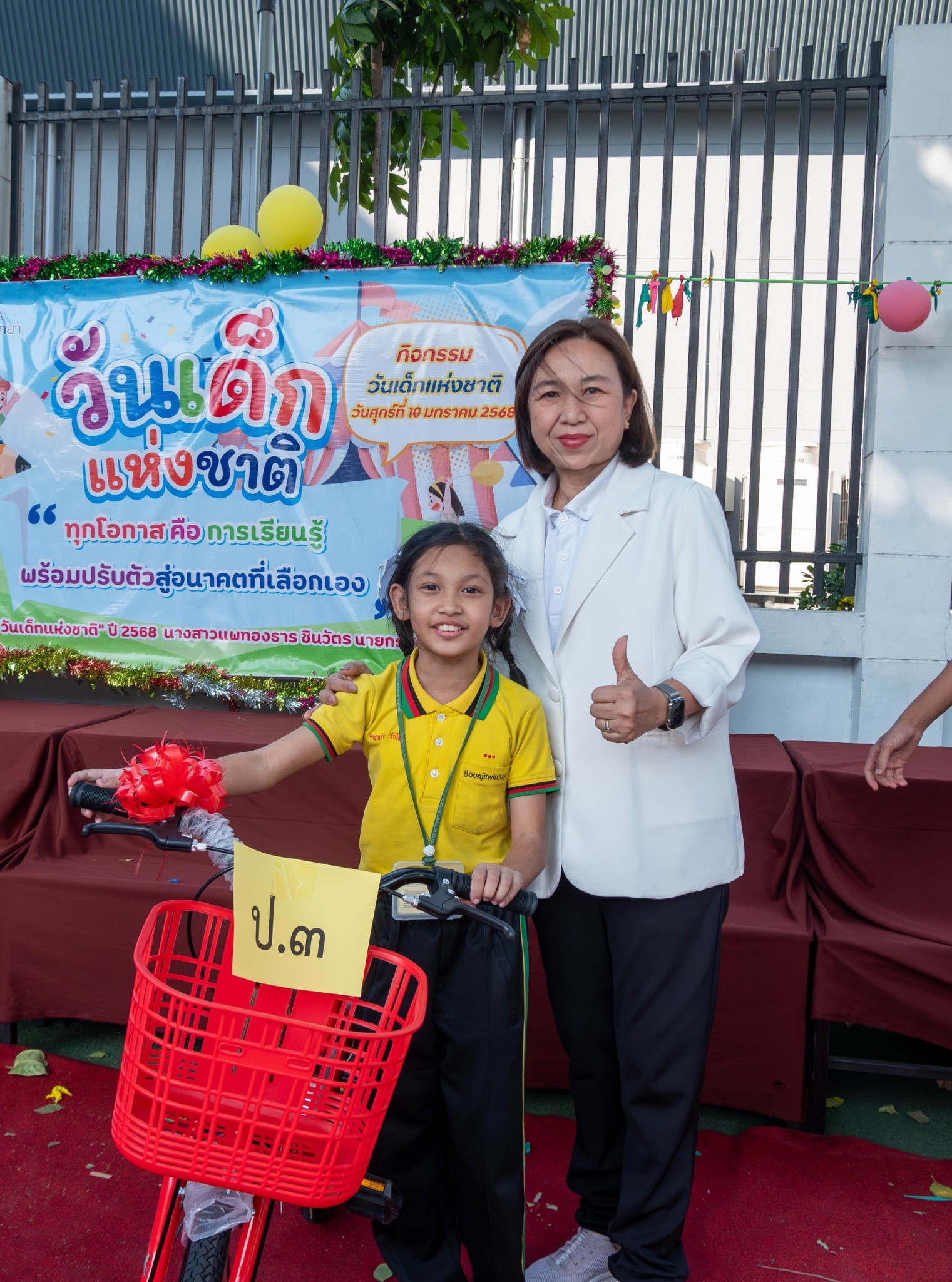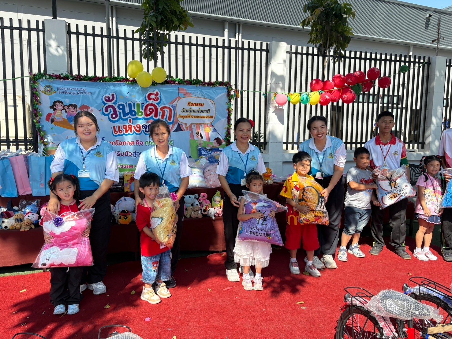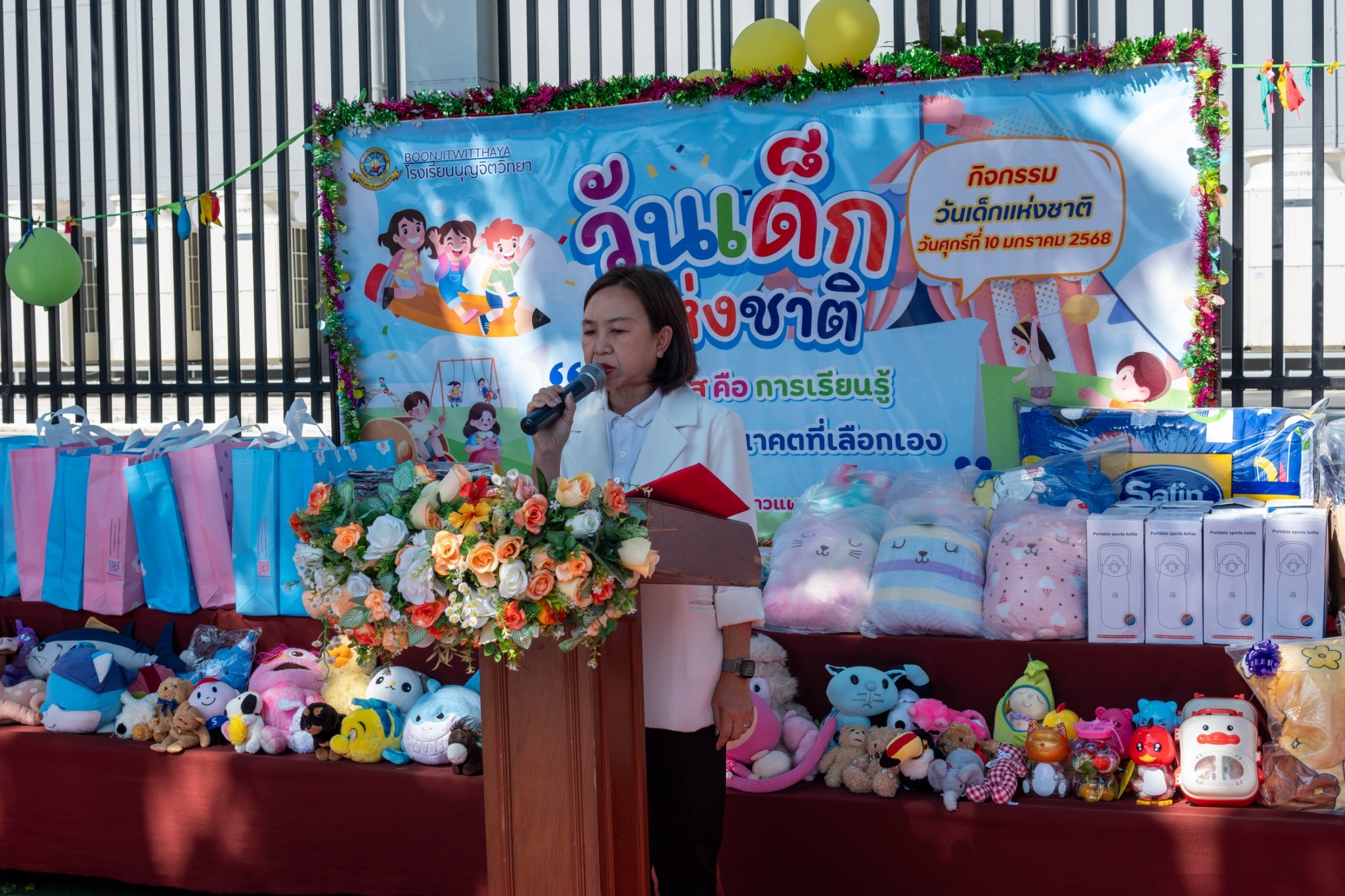 วันศุกร์ที่ 10 มกราคม 2568 นางชวาลา กันทอง ผู้อำนวยการกล่าวสารวันเด็กและคำขวัญวันเด็กและ ร่วมกับคณะบริหารคณะครู จับฉลากและ มอบของขวัญในกิจกรรมวันเด็กแห่งชาติ ให้กับนักเรียนระดับชั้น ปฐมวัย - ระดับชั้นมัธยมศึกษาปีที่ 3 ณ หน้าอาคาร 50 ปี