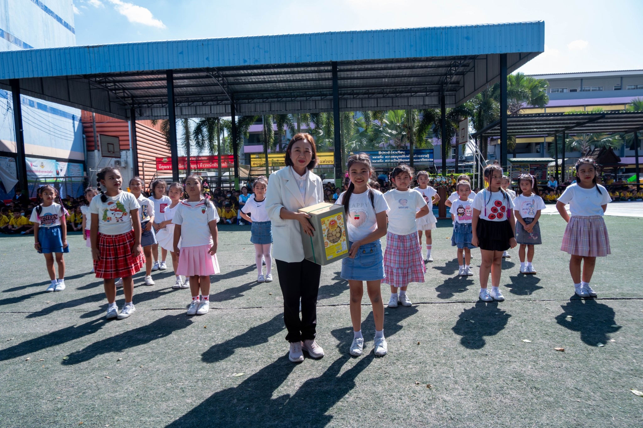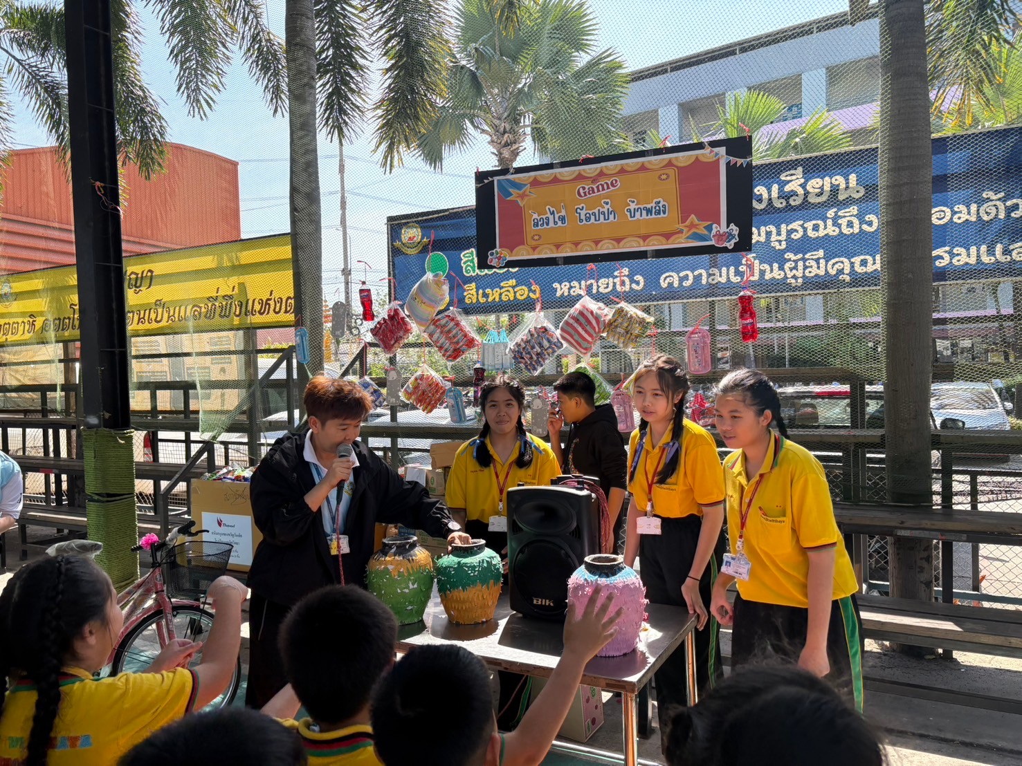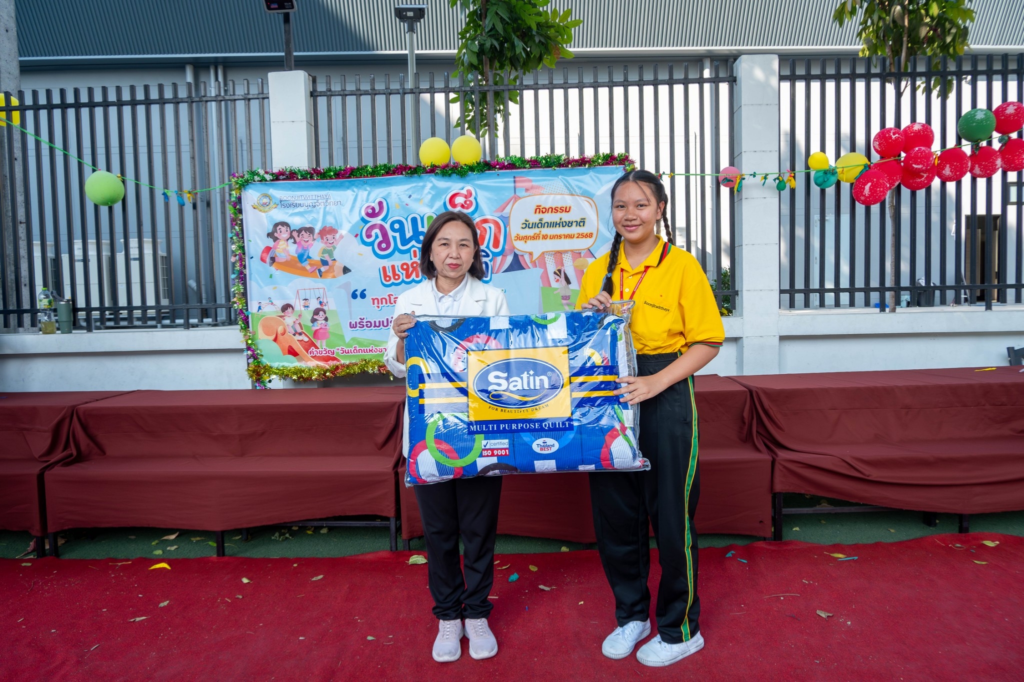 วันศุกร์ที่ 10 มกราคม 2568 นางชวาลา กันทอง ผู้อำนวยการกล่าวสารวันเด็กและคำขวัญวันเด็กและ ร่วมกับคณะบริหารคณะครู จับฉลากและ มอบของขวัญในกิจกรรมวันเด็กแห่งชาติ ให้กับนักเรียนระดับชั้น ปฐมวัย - ระดับชั้นมัธยมศึกษาปีที่ 3 ณ หน้าอาคาร 50 ปี