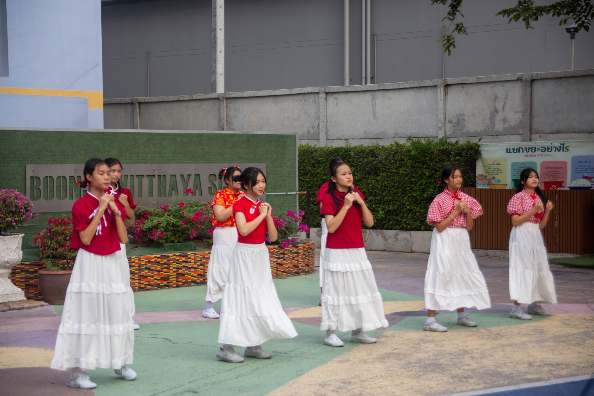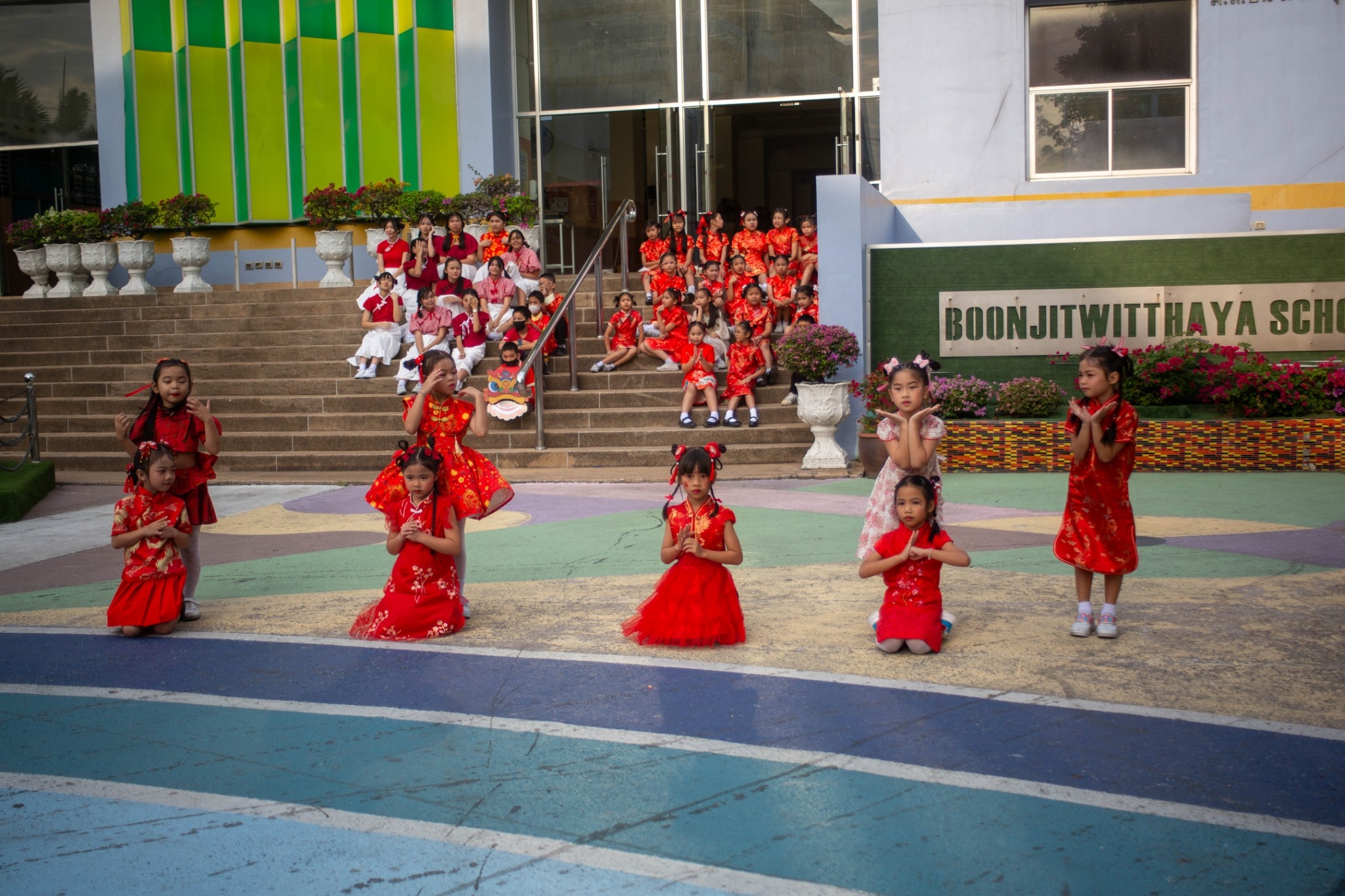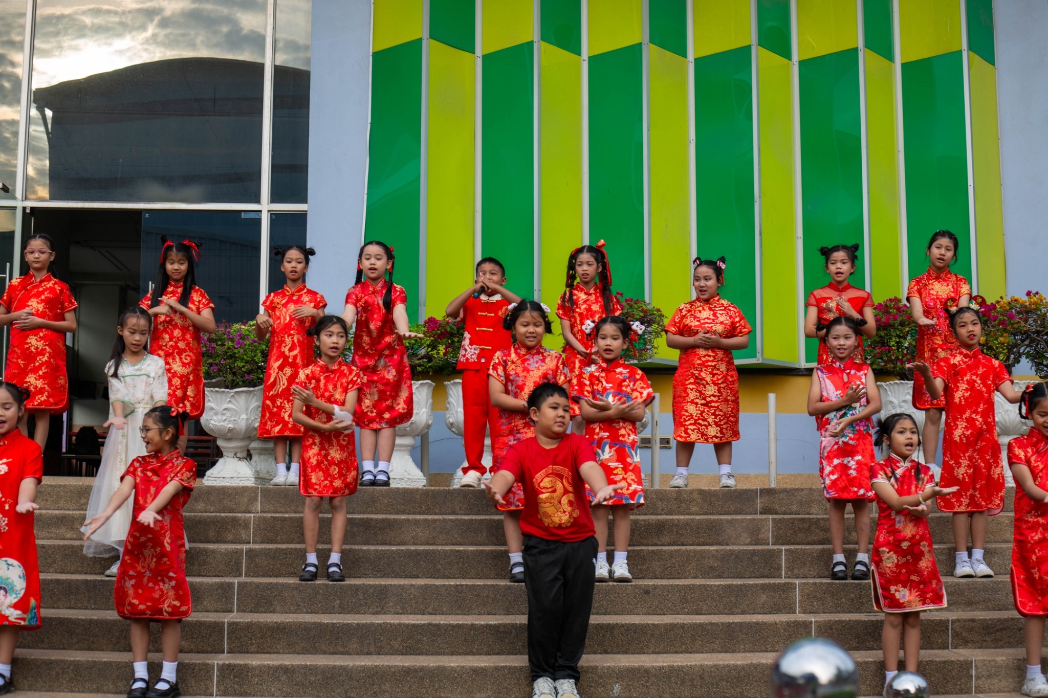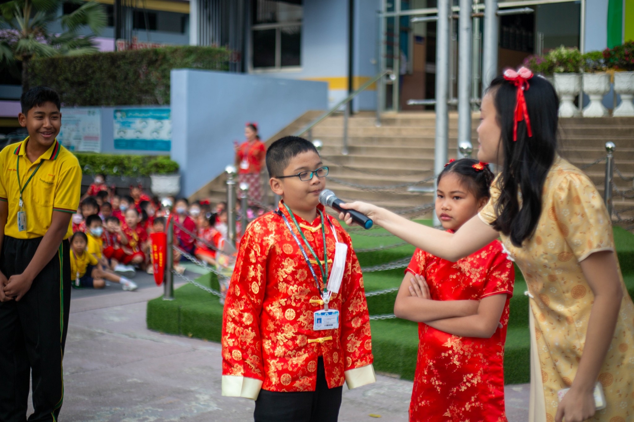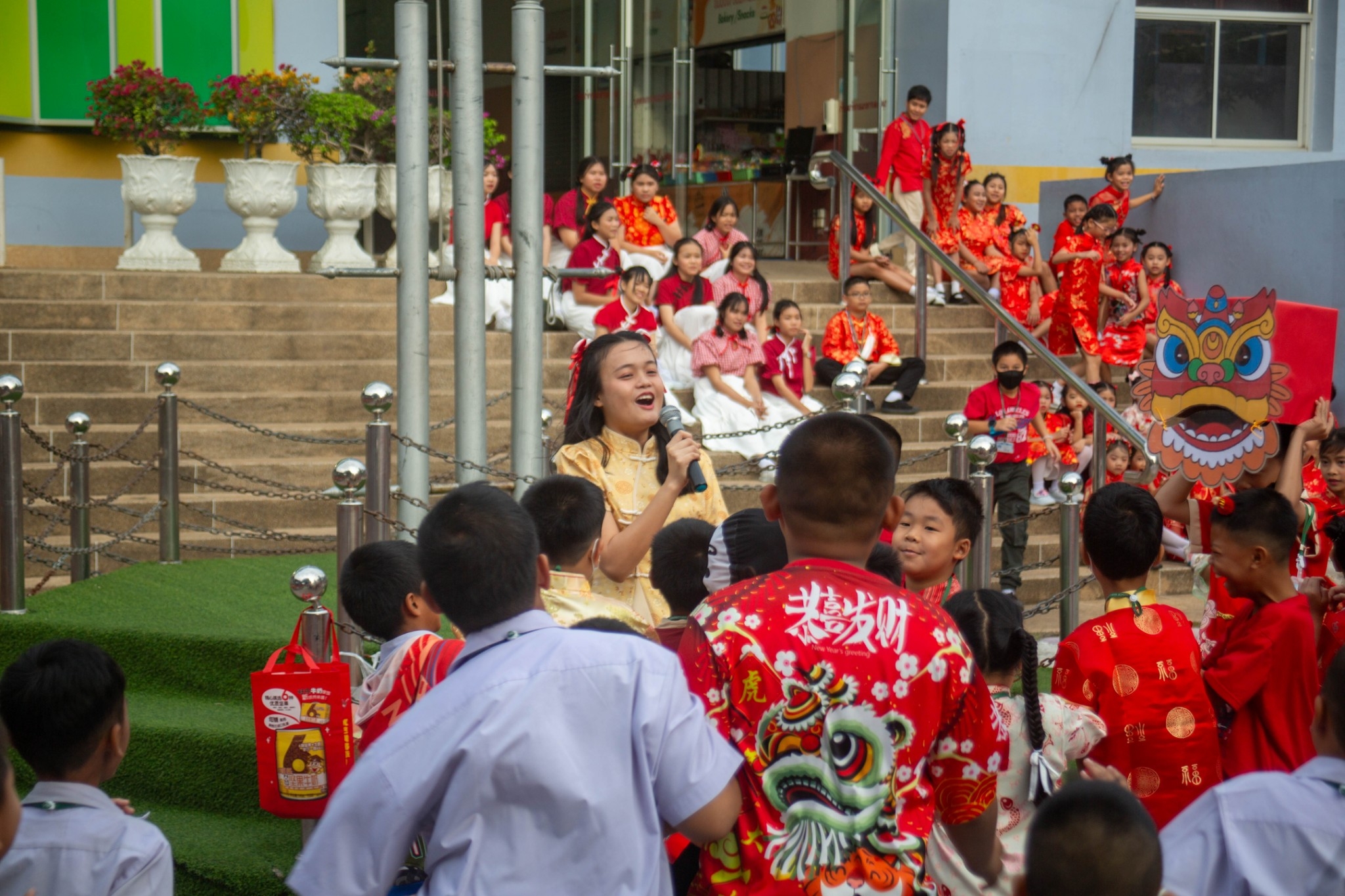 วันพุธที่ 29 มกราคม 2568 โครงการส่งเสริมทางภาษา จัดกิจกรรมเทศกาลตรุษจีน เพื่อเป็นการส่งเสริมให้นักเรียนได้เรียนรู้ประวัติศาสตร์ ความเป็นมาของประเพณีวัฒนธรรมชาวจีนรวมทั้งเข้าใจวัฒนธรรมที่แตกต่าง ส่งเสริมให้นักเรียนได้สืบสานวัฒนธรรมประเพณีการใช้ภาษาจีน และร่วมเฉลิมฉลองเนื่องในเทศกาลตรุษจีน ณ หน้าอาคาร 50 ปี