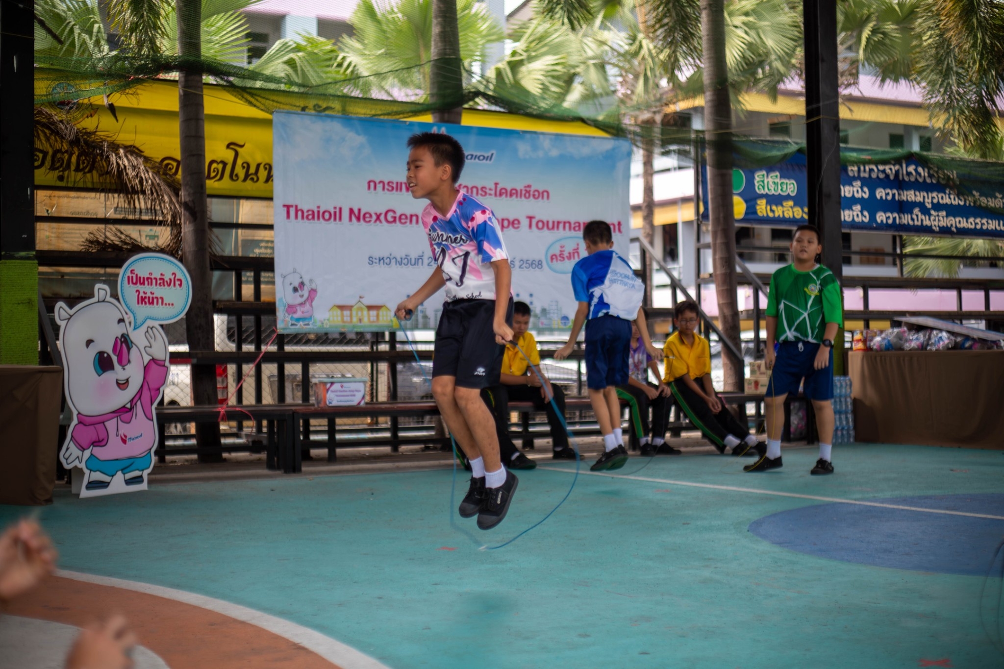 วันอังคารที่ 25 กุมภาพันธ์ 2568 กลุ่มไทยออยล์เปิดสนามแข่งขัน Thaioil NexGen Jump Rope Tournament 2025 ครั้งที่ 1 ระหว่างวันที่ 24-28 กุมภาพันธ์ 2568 โดยนักเรียนโปรเจคกระโดดเชือกได้เข้าร่วมการแข่งขันและเป็นการ“กิจกรรมนี้ไม่เพียงช่วยเสริมสร้างสุขภาพที่ดีเท่านั้น แต่ยังเป็นเวทีเฟ้นหานักกีฬากระโดดเชือกหน้าใหม่ที่มีความมุ่งมั่น เพื่อเป็นตัวแทนในระดับประเทศและต่อยอดสู่การเป็นนักกีฬามืออาชีพในอนาคต”เพื่อส่งเสริมให้นักเรียนได้ใช้เวลาว่างให้เกิดประโยชน์สูงสุด ณ สนามโรงเรียนบุญจิตวิทยา