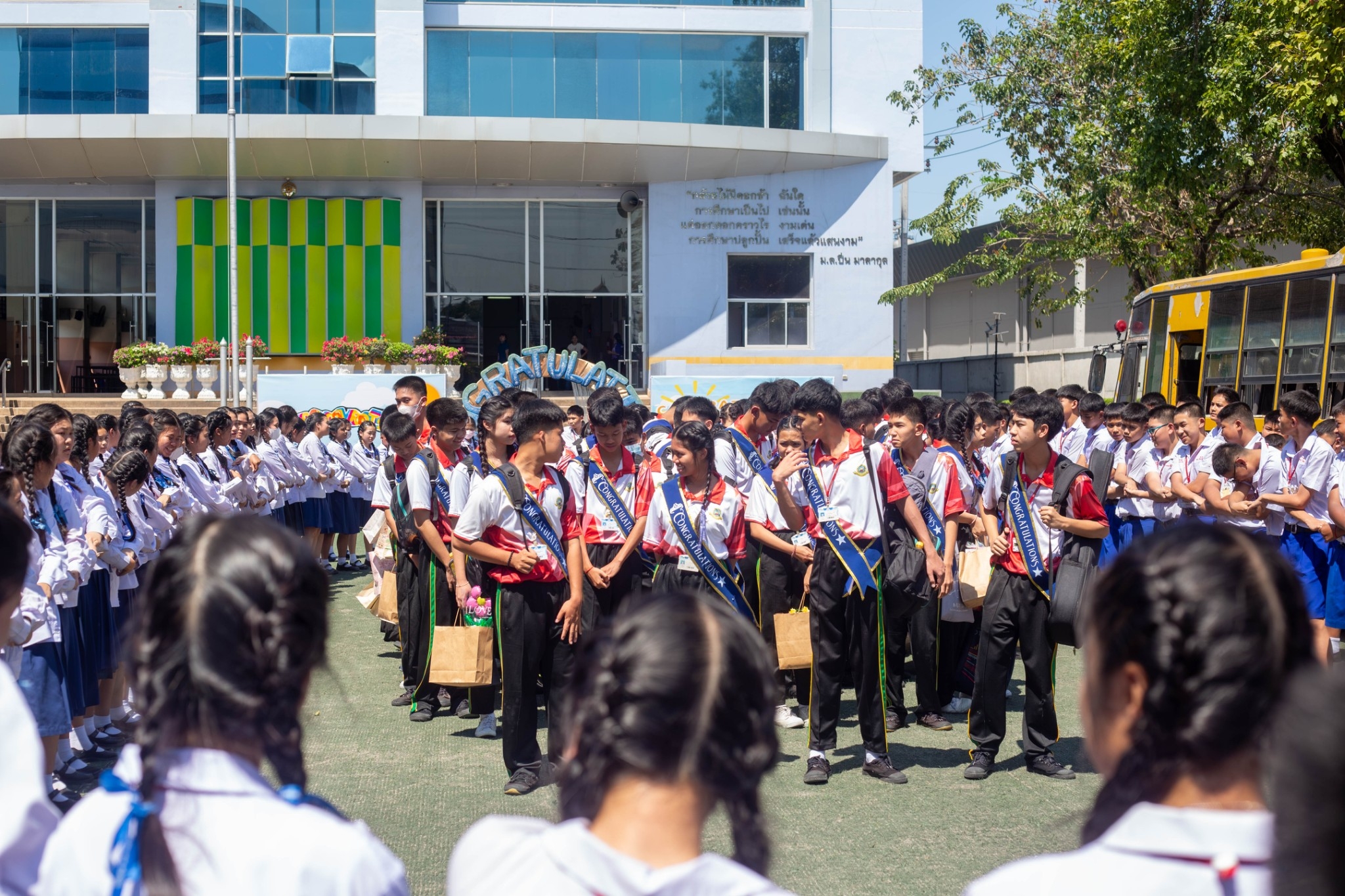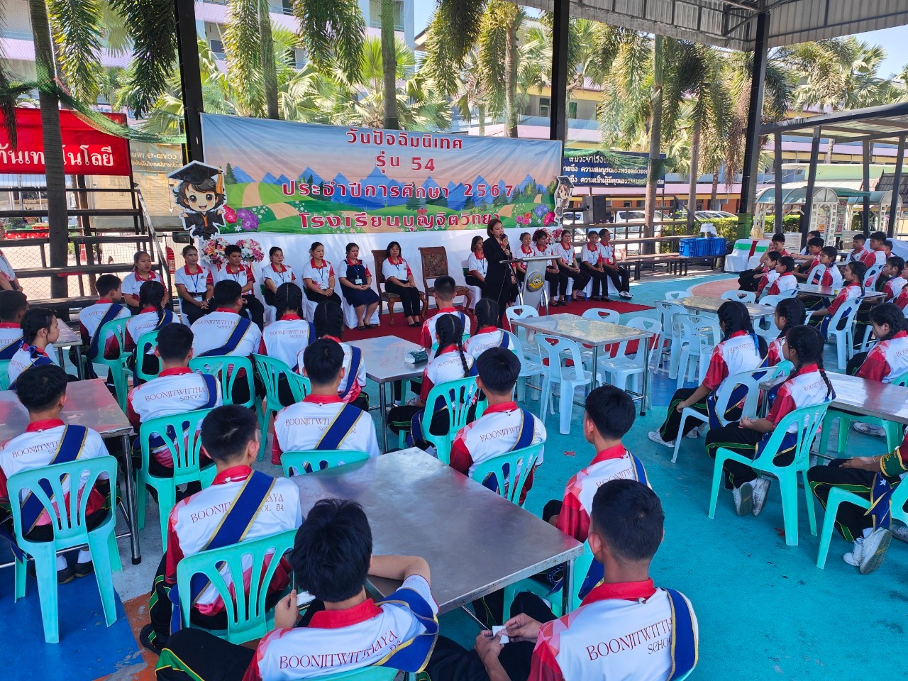 วันพุธที่ 5 มีนาคม 2568 นักเรียนระดับชั้นมัธยมศึกษาปีที่ 3 เข้าร่วมกิจกรรมปัจฉิมนิเทศ โดยมี นางชวาลา กันทอง ผู้อำนวยการโรงเรียนเป็นประธานในพิธีและคณะครูจัดพิธีบายศรีสู่ขวัญสร้างความสัมพันธ์อันดีระหว่างครูและนักเรียนที่จบการศึกษาและกิจกรรมน้องส่งพี่จากน้องมัธยมศึกษาปีที่ 1-2 ทางโรงเรียนขอแสดงความยินดีกับนักเรียนทุกคนที่กำลังจะสำเร็จการศึกษา ณ อาคาร 50 ปี ดูรูปเพิ่มเติม : https://drive.google.com/drive/folders/1W3N4qngn2iSJY2gMthB1fbktg5ma4XVD?usp=sharing