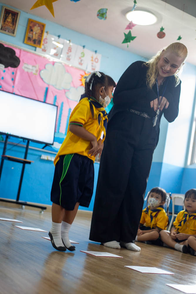 โดยนักเรียนได้เรียนรู้ผ่านกิจกรรมหลากหลายรูปแบบ อาทิ การเรียนการสอนโดยครูชาวต่างชาติ กิจกรรมเกมการศึกษา การจัดการเรียนรู้แบบ STEAM และ Active Learning เพื่อส่งเสริมพัฒนาการและสร้างความเข้าใจในการเรียนรู้ให้แก่นักเรียน ณ อาคารเลิศปัญญา