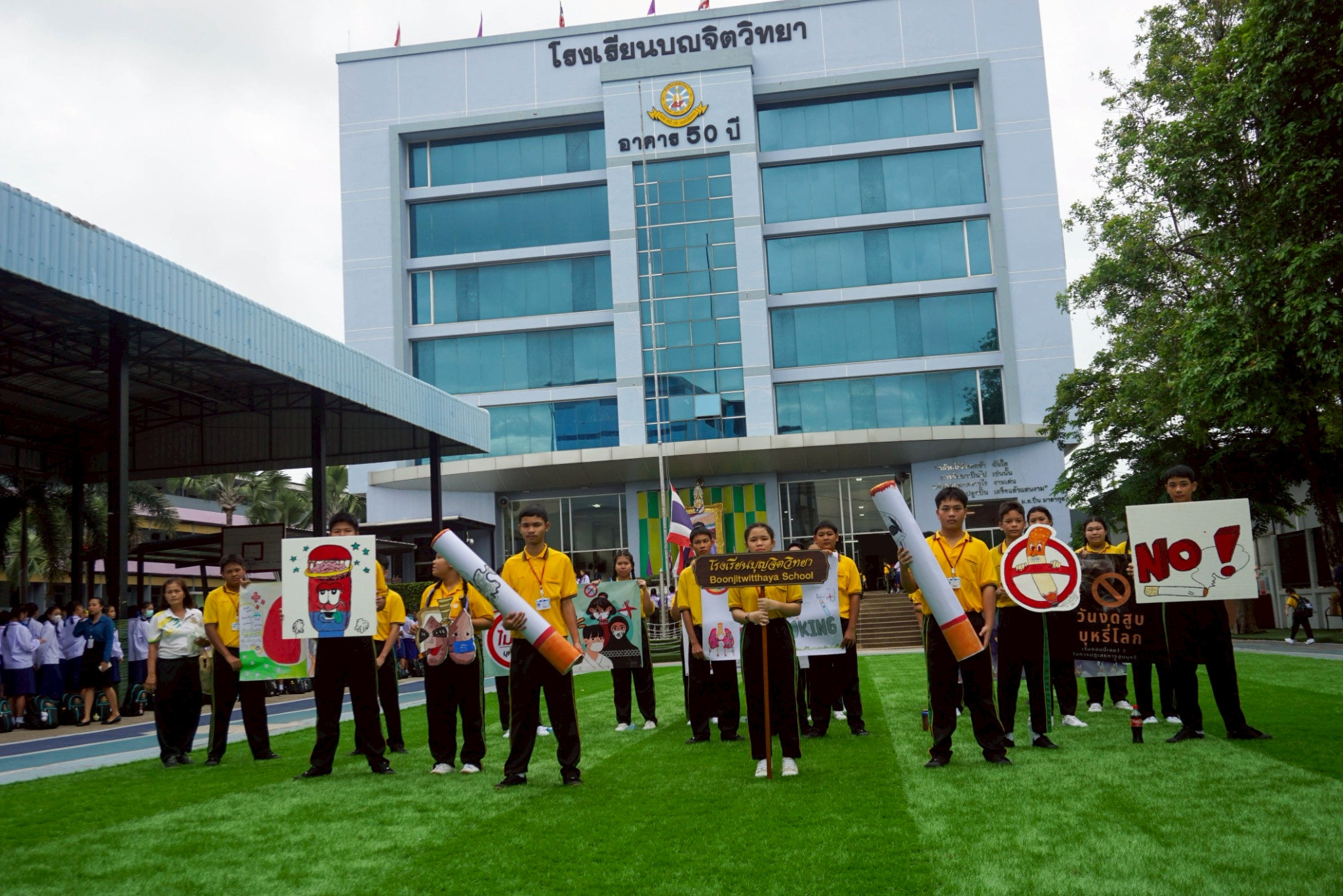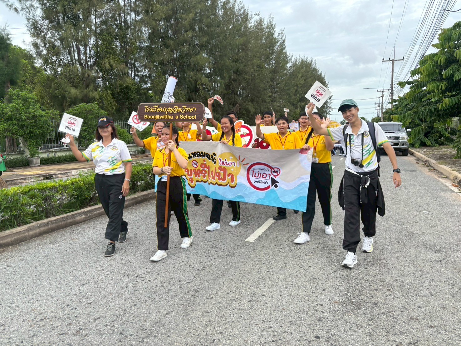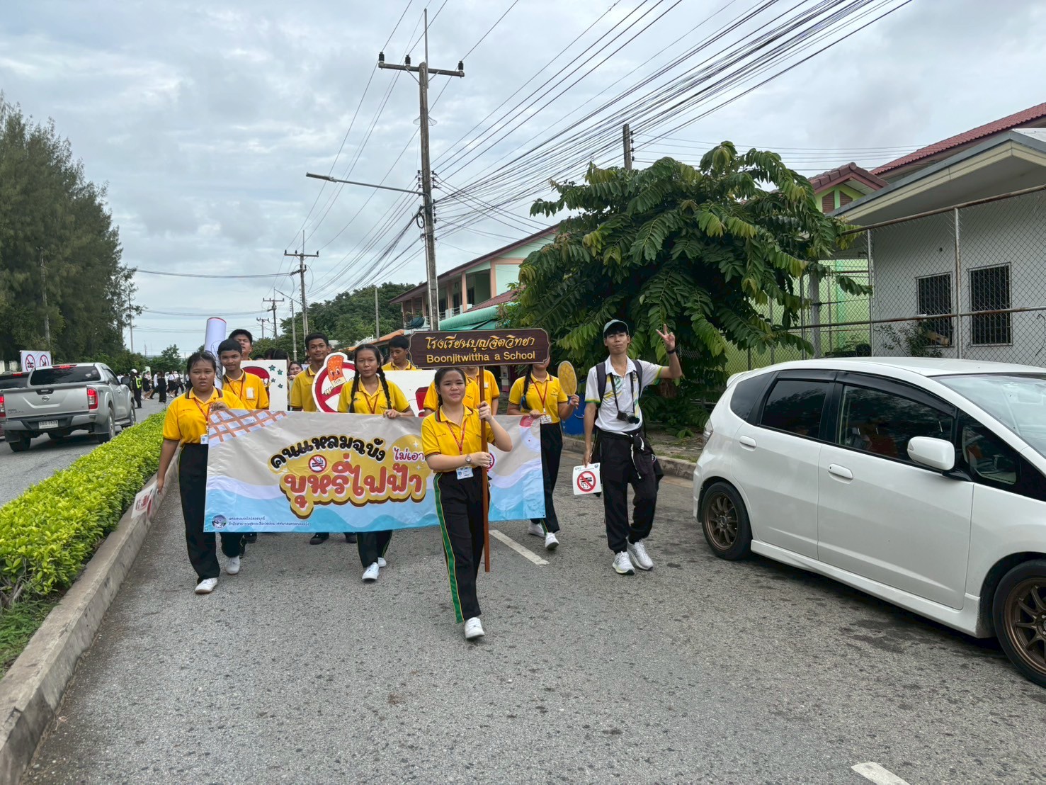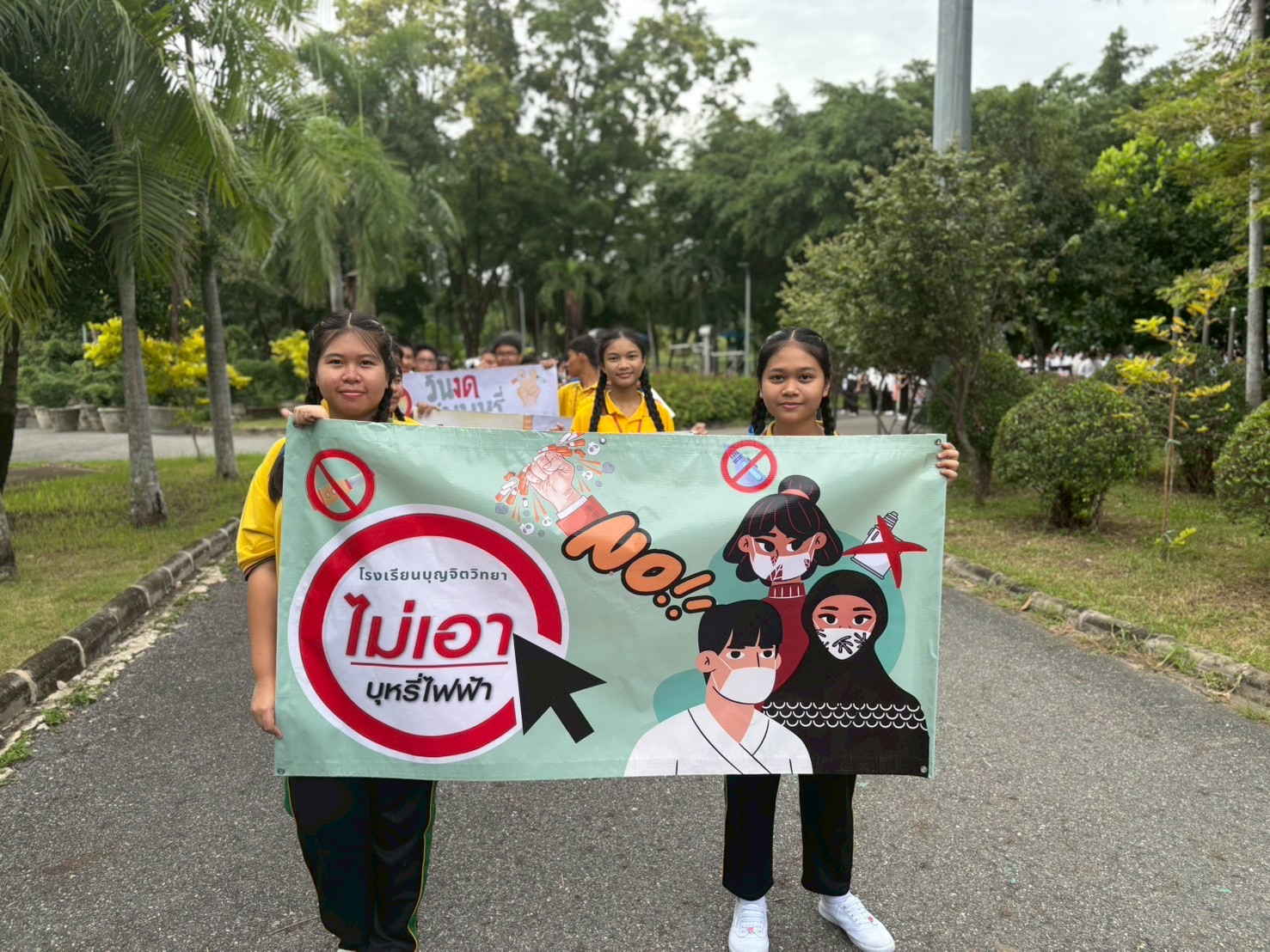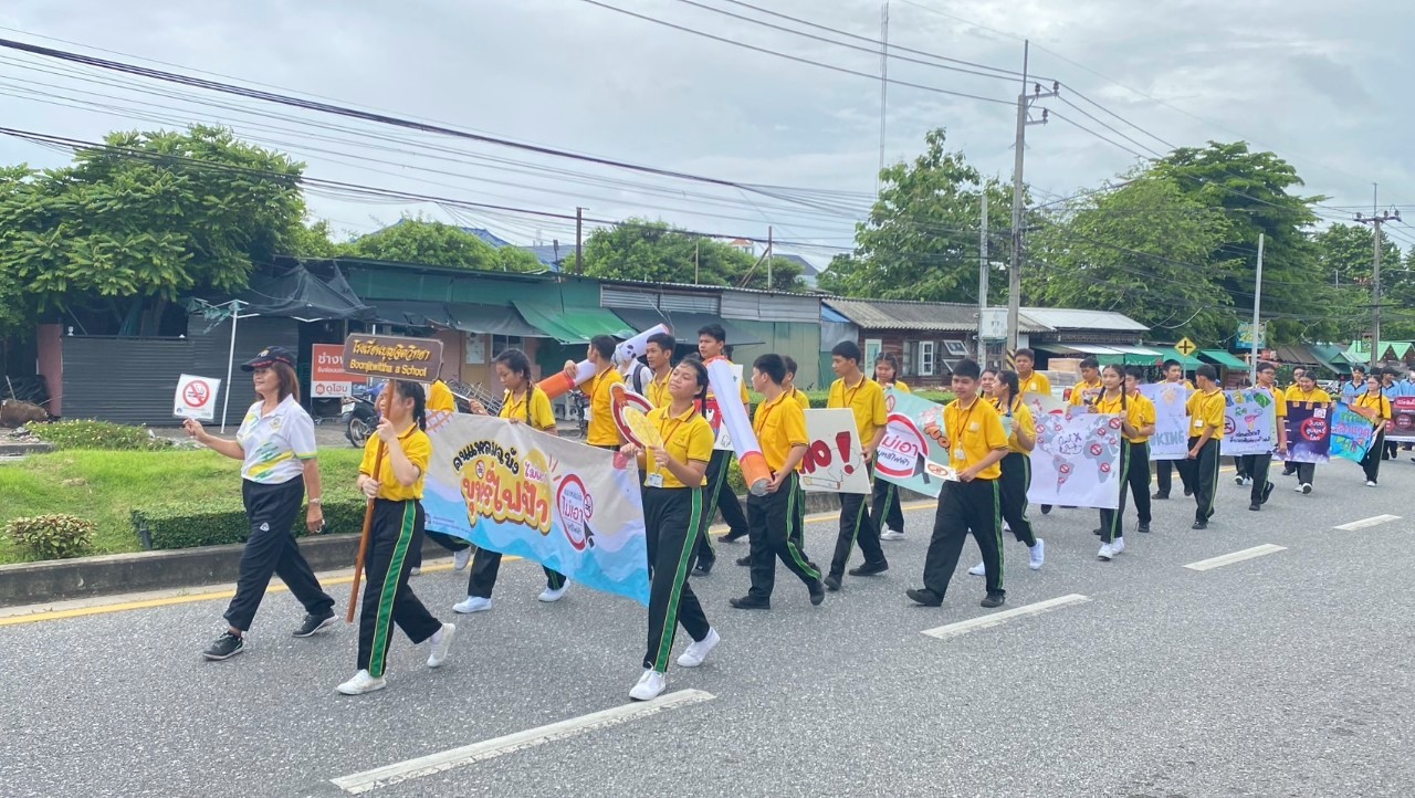 วันศุกร์ที่ 30 พฤษภาคม 2568 ตัวแทนครูและนักเรียนโรงเรียนบุญจิตวิทยา เข้าร่วมกิจกรรมเดินรณรงค์เนื่องในวันงดสูบบุหรี่โลก ร่วมกับเทศบาลนครแหลมฉบังและชุมชน เพื่อสร้างความตระหนักรู้ถึงภัยอันตรายจากการสูบบุหรี่ บุหรี่ไฟฟ้า ยาเสพติด และพฤติกรรมเสี่ยงต่าง ๆ โดยมีการเดินขบวนเชิงสัญลักษณ์ พร้อมถือป้ายรณรงค์ ณ สวนสาธารณะเฉลิมพระเกียรติ 80 พรรษา