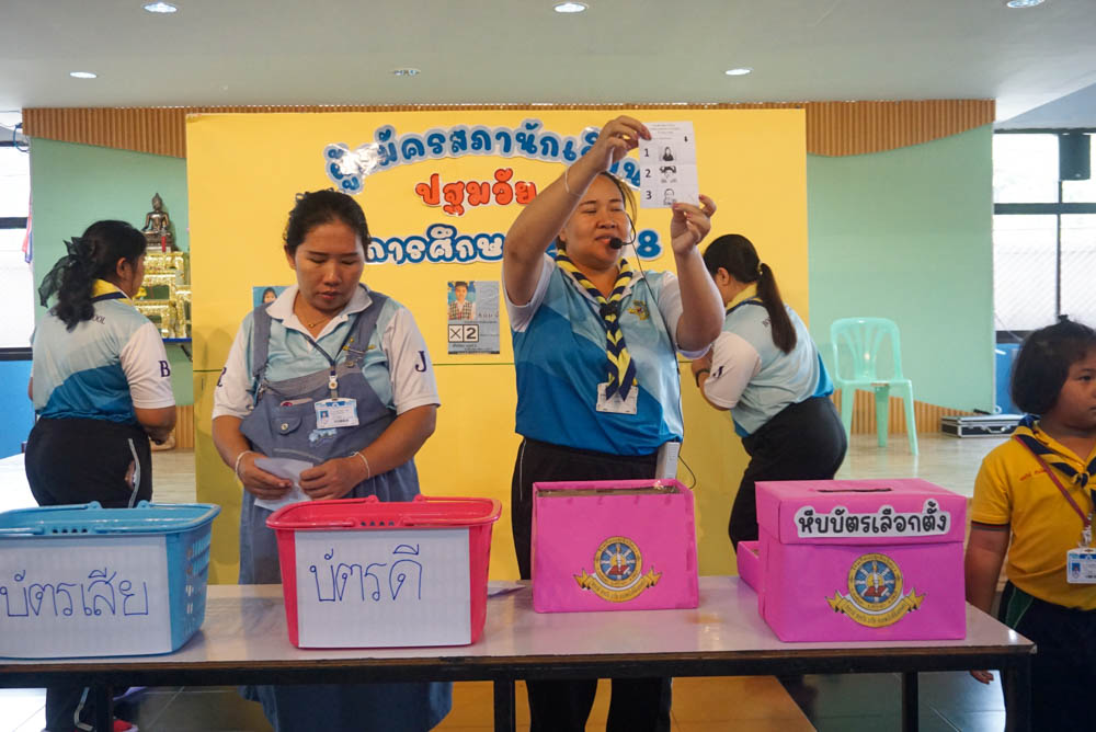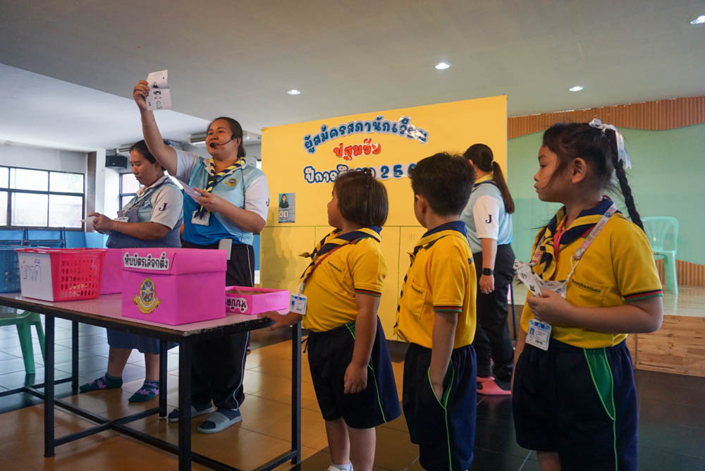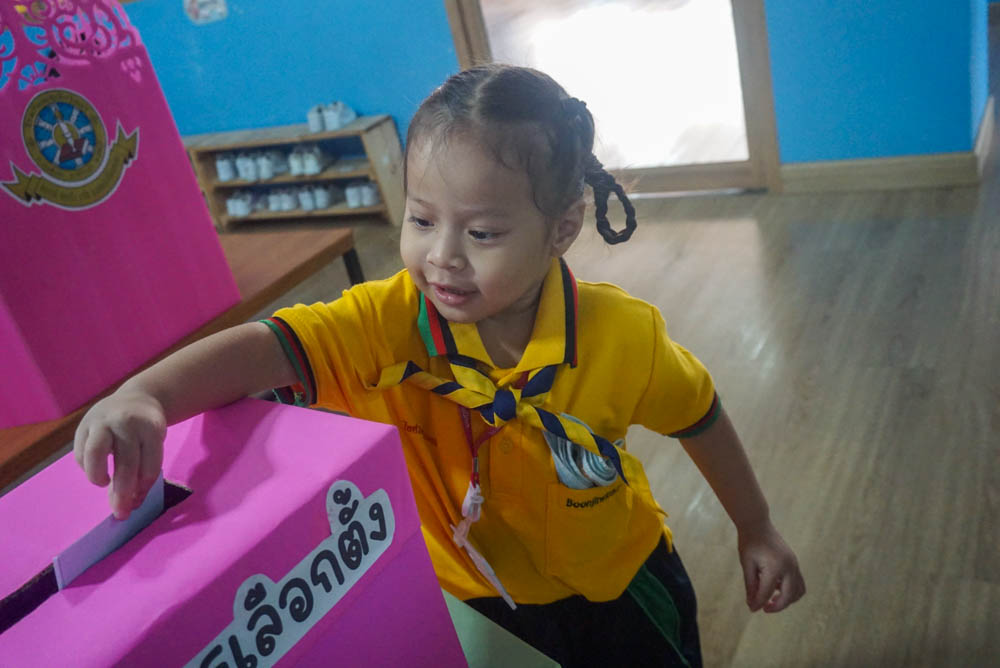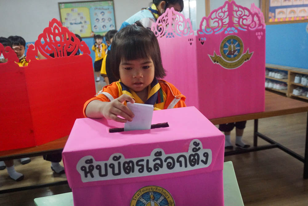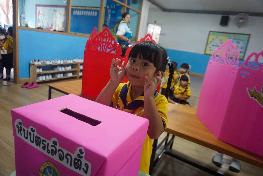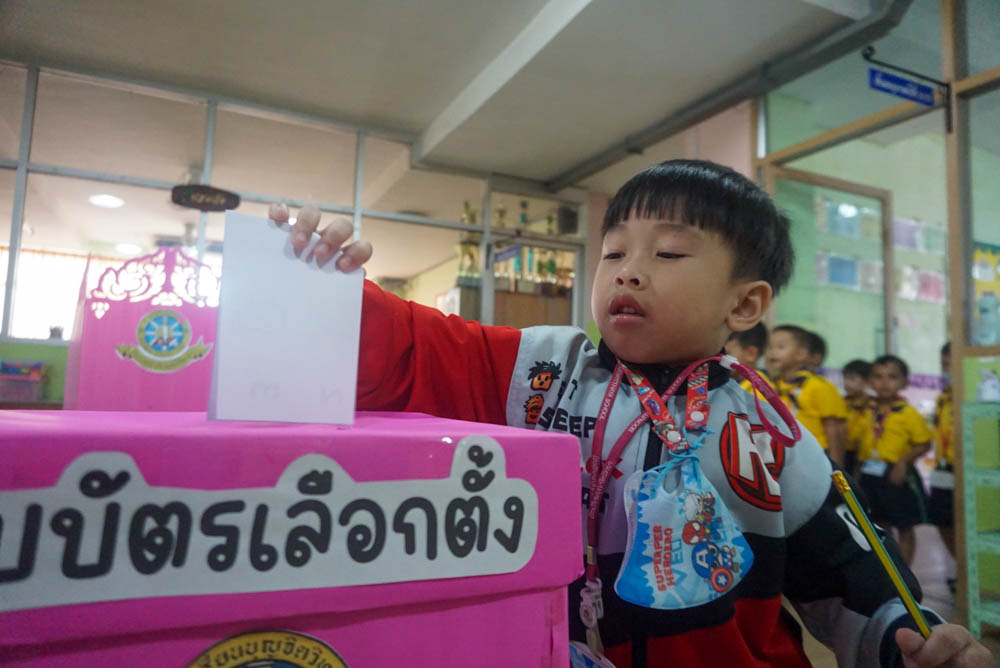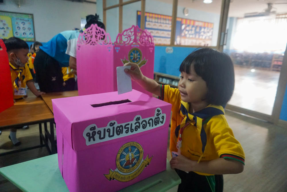นักเรียนระดับชั้นอนุบาลปีที่ 1–3 ได้เข้าร่วมกิจกรรมจำลองการเลือกตั้ง