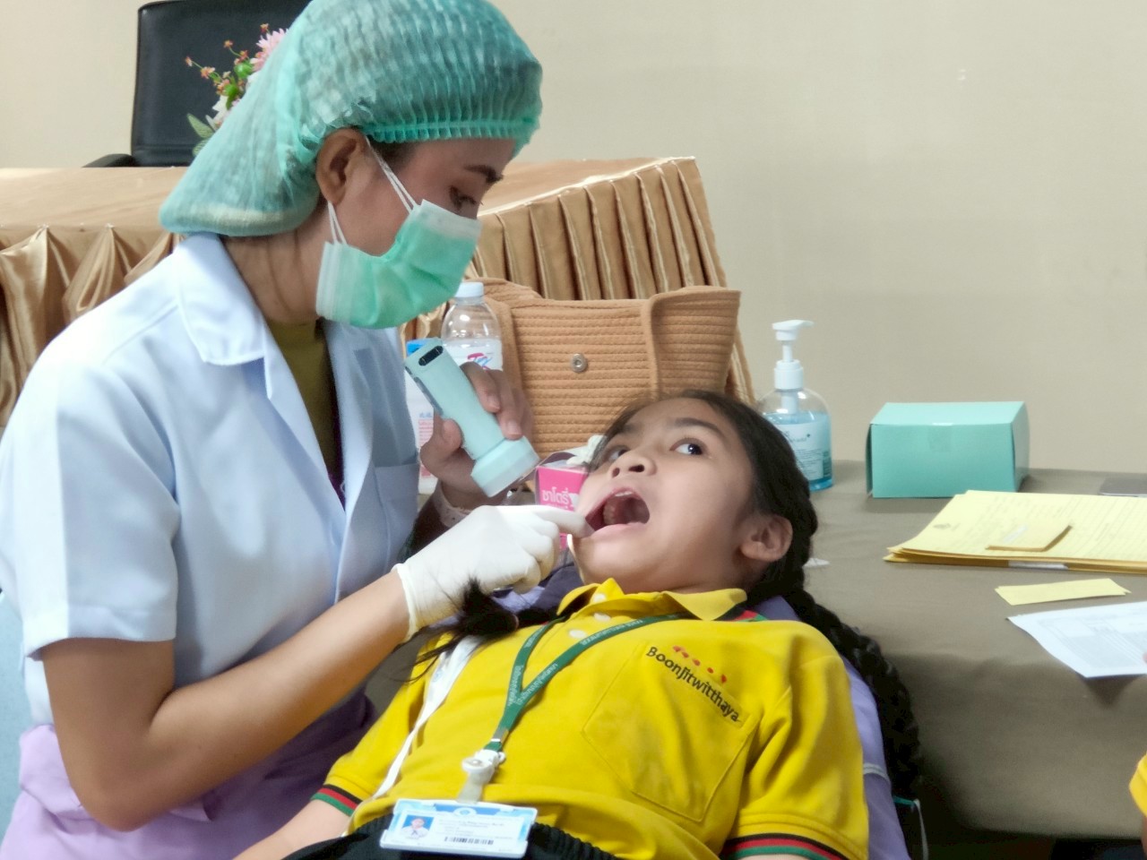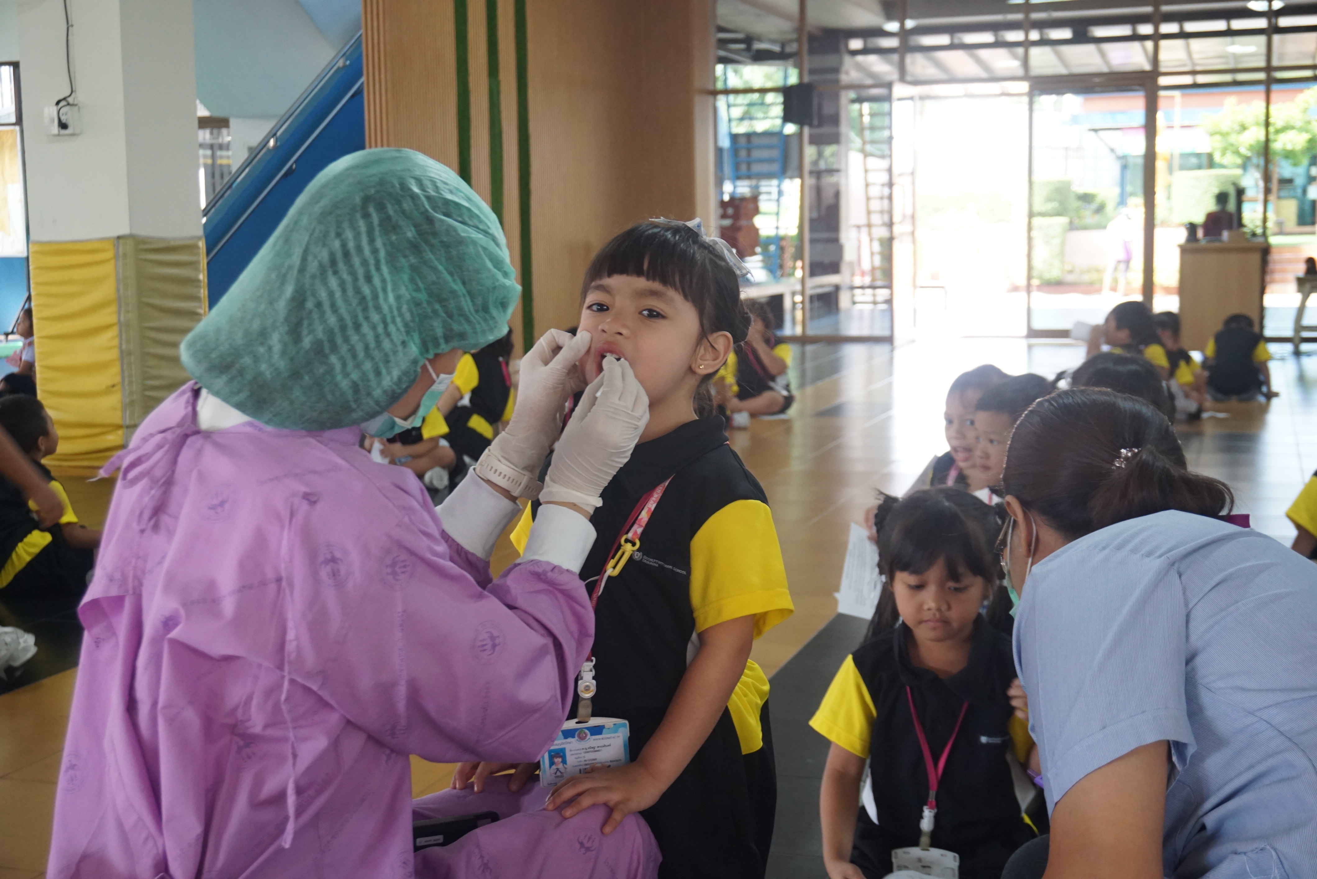 จัดกิจกรรมตรวจสุขภาพช่องปากและเคลือบฟลูออไรด์ให้แก่นักเรียนระดับชั้นอนุบาล 1 – ประถมศึกษาปีที่ 6 โดยนักเรียนระดับประถมศึกษาปีที่ 1 – 6 เข้ารับการตรวจสุขภาพฟัน ณ ห้องประชุม ชั้น 4 อาคาร 50 ปี ส่วนระดับชั้นอนุบาล 1 – 3 ได้รับการเคลือบสารฟลูออไรด์ ณ อาคารเลิศปัญญา ทั้งนี้ได้รับความอนุเคราะห์จากเจ้าหน้าที่หน่วยทันตกรรมเคลื่อนที่ โรงพยาบาลแหลมฉบัง