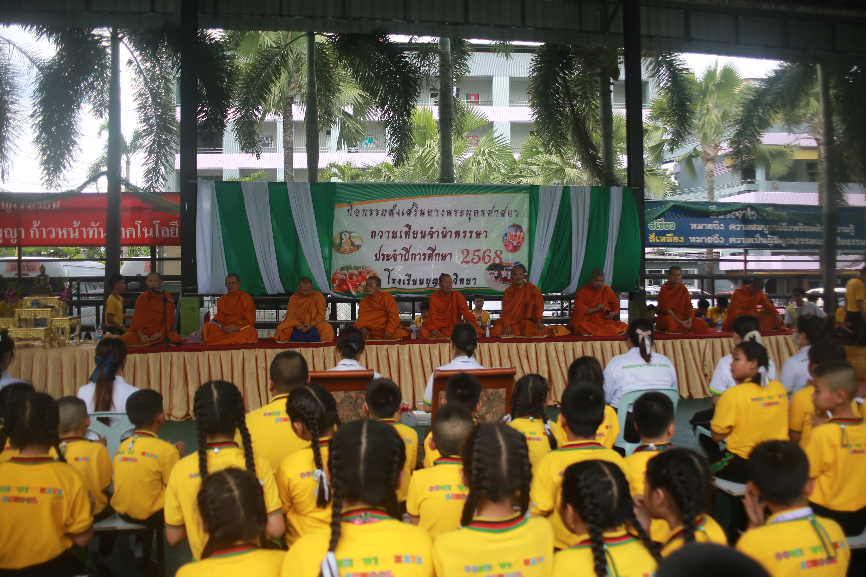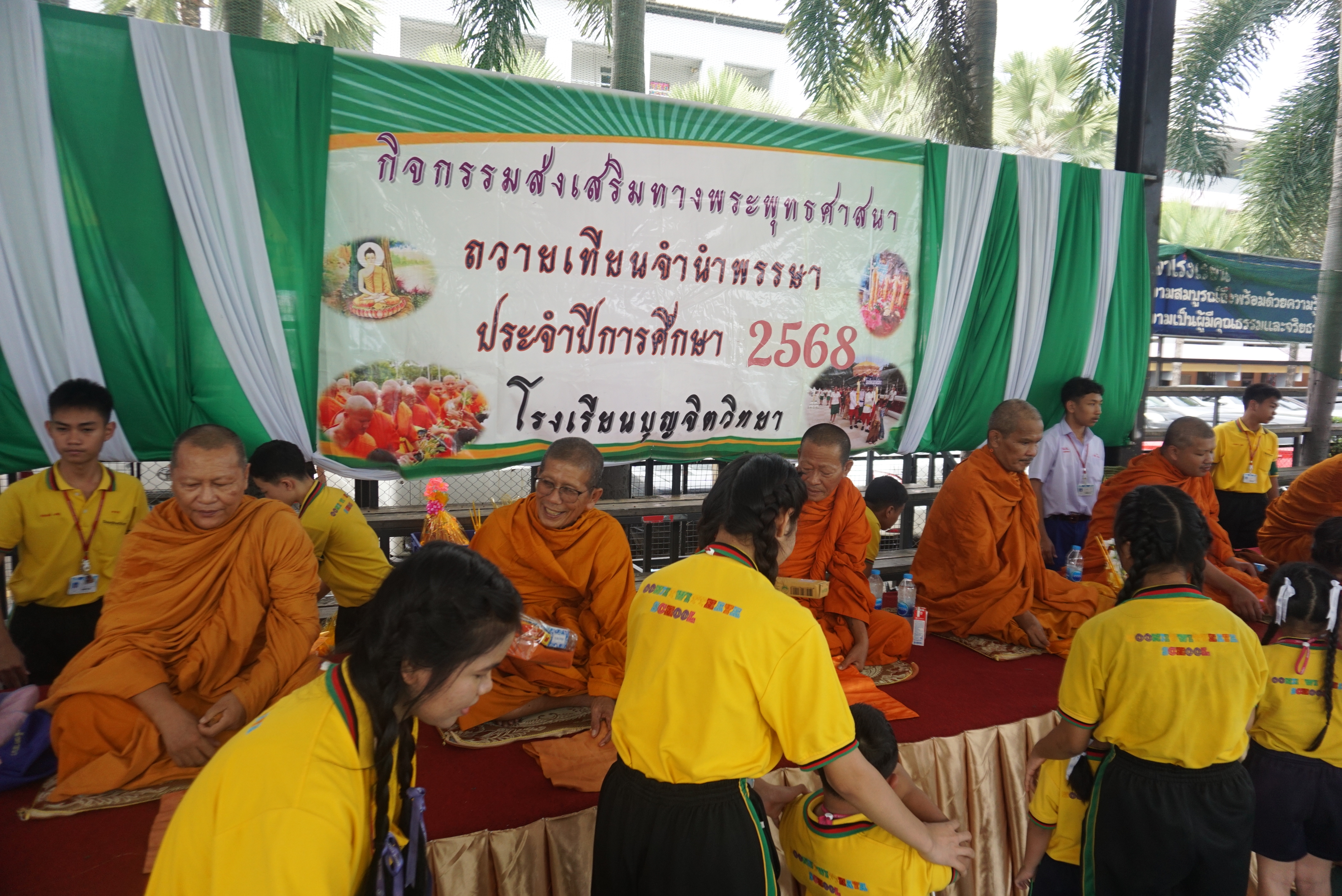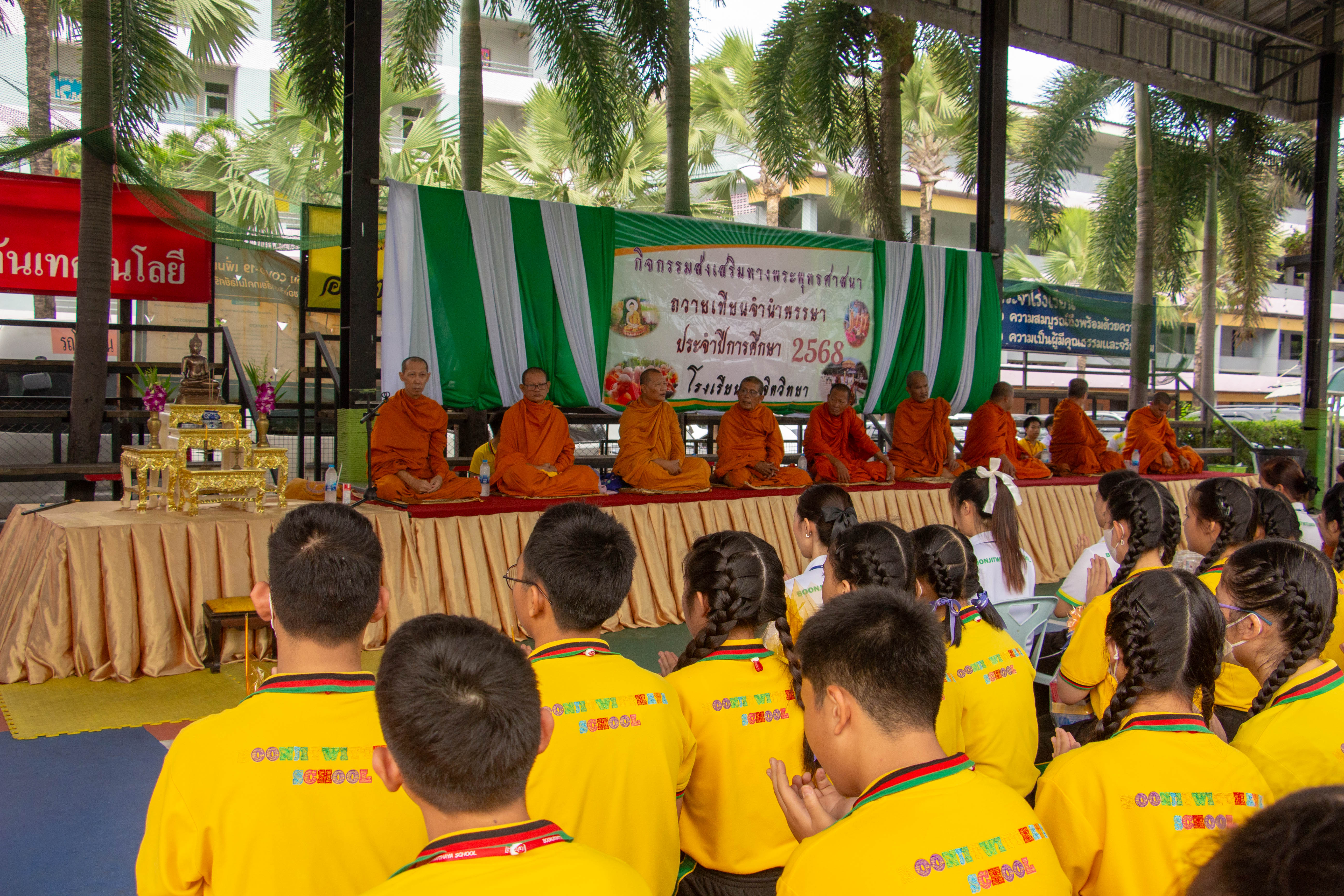โรงเรียนบุญจิตวิทยาได้จัดกิจกรรมเนื่องในวันสำคัญทางพระพุทธศาสนา “วันเข้าพรรษา” เพื่อปลูกฝังคุณธรรมจริยธรรมและส่งเสริมการสืบสานประเพณีไทยอันดีงาม โดย นางชวาลา กันทอง ผู้อำนวยการโรงเรียน นำคณะครู บุคลากร และนักเรียนระดับชั้นประถมศึกษาปีที่ 5 - ระดับมัธยมศึกษาปีที่ 2 รถร่วมถวายเทียนพรรษาและจตุปัจจัยแด่พระสงฆ์ ณ วัดมโนรม นอกจากนี้ ภายในโรงเรียนยังได้จัดกิจกรรมถวายเทียนพรรษา และร่วมถวายจตุปัจจัยแด่พระสงฆ์จาก วัดใหม่เนินพะยอม โดยมีนักเรียนระดับชั้นอนุบาล ระดับประถมศึกษาปีที่ 1–4และระดับมัธยมศึกษาปีที่ 3 เข้าร่วมกิจกรรม ณ หน้าอาคาร 50 ปี