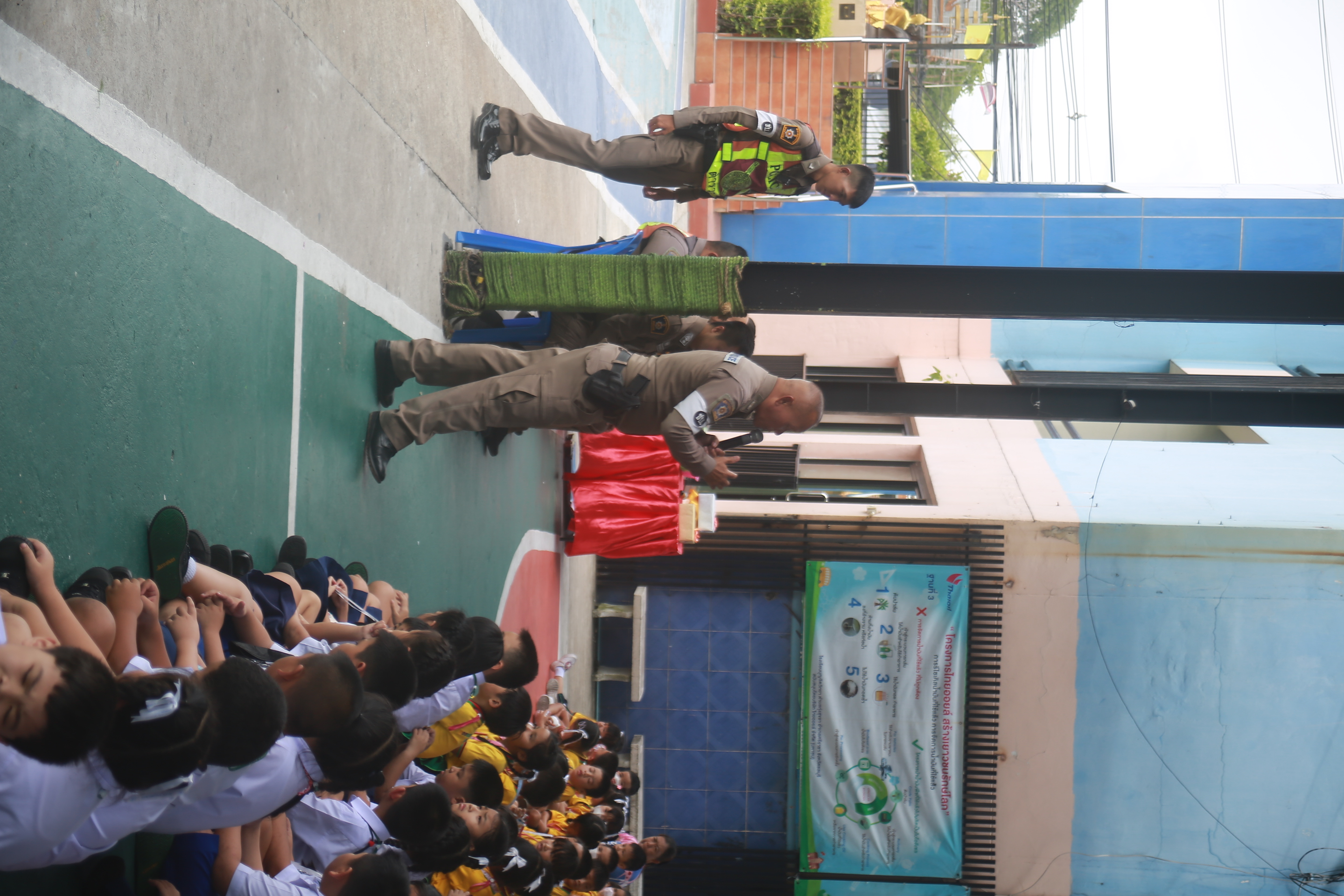 นางทัศนียา สัตยะวงค์ ผู้ช่วยผู้อำนวยการฝ่ายบริหารงานทั่วไป และคุณครูระดับชั้นปฐมวัย ได้จัดกิจกรรมให้ความรู้แก่นักเรียน โดยเชิญวิทยากรจากสถานีตำรวจภูธรแหลมฉบัง นำโดย พ.ต.ท.ชัยวัฒน์ หิรัญเกื้อ สารวัตรจราจร พร้อมคณะ มาให้ความรู้เกี่ยวกับ ความปลอดภัยในการโดยสารรถตู้ การป้องกันการติดอยู่ภายในรถ และการส่งสัญญาณขอความช่วยเหลือ แก่นักเรียนระดับชั้นปฐมวัย โดยมีจุดมุ่งหมายเพื่อสร้างความตระหนักรู้และเสริมสร้างทักษะการเอาตัวรอดในสถานการณ์ฉุกเฉินให้แก่นักเรียนในวัยเยาว์ กิจกรรมจัดขึ้น ณ บริเวณหน้าอาคาร 50 ปี