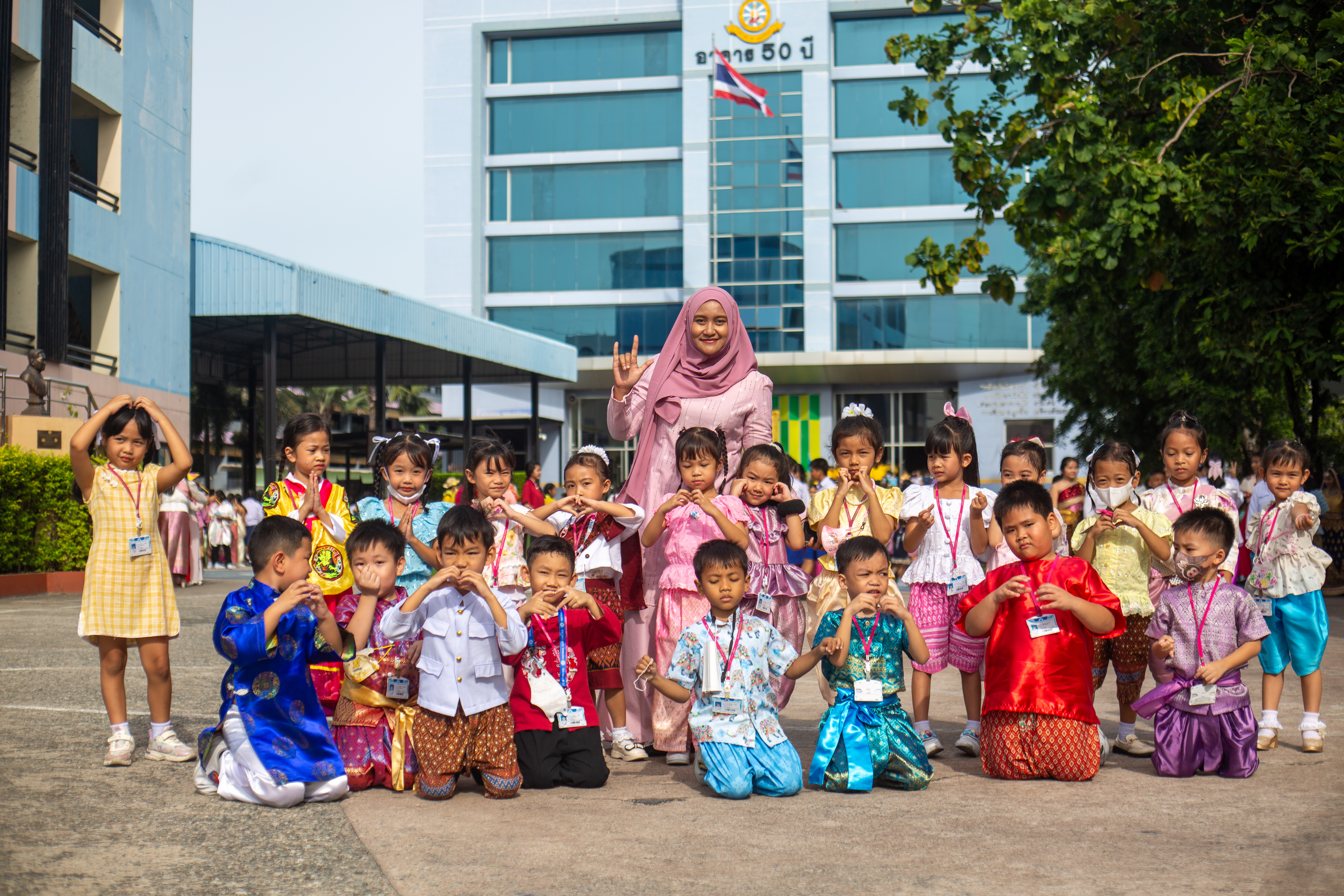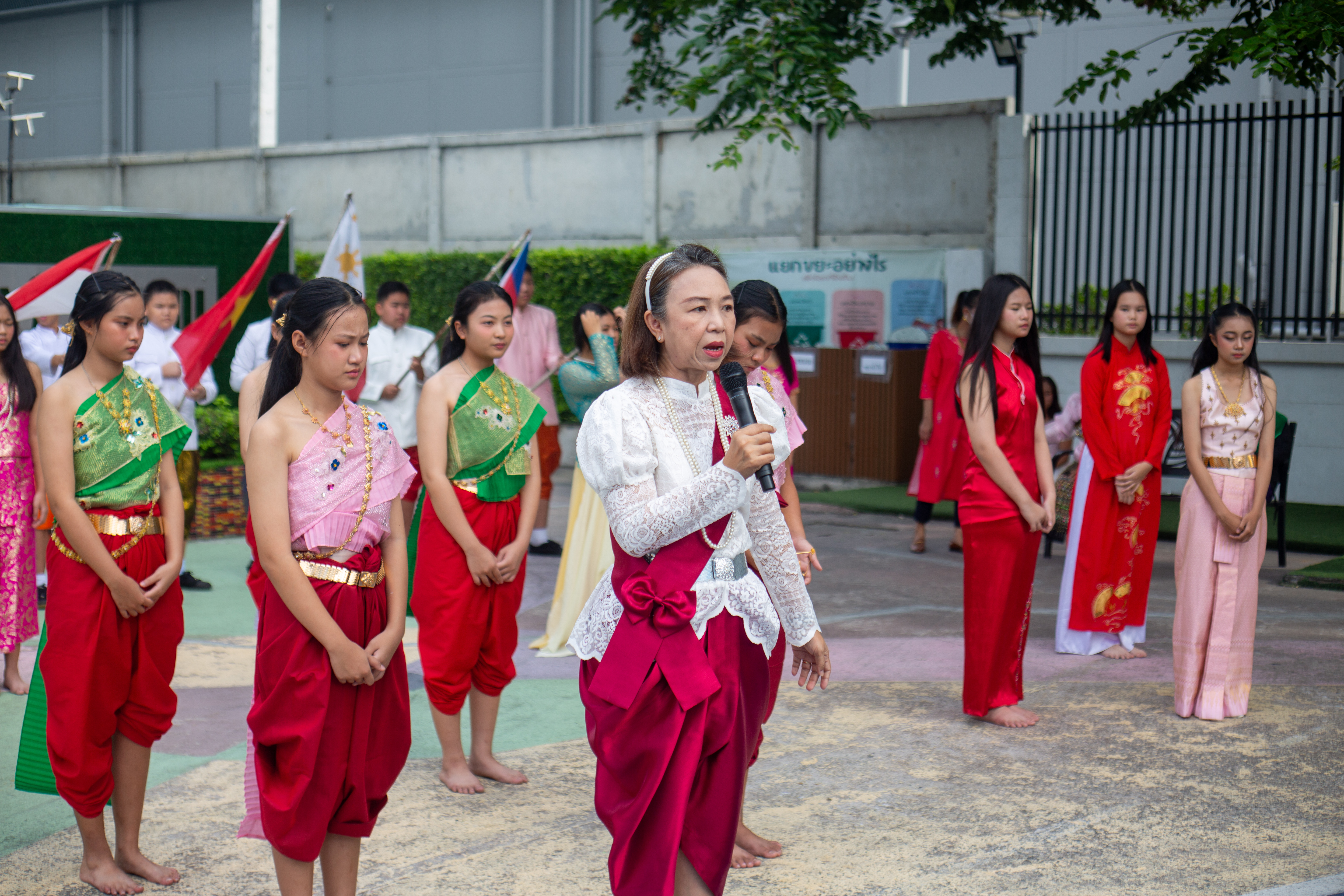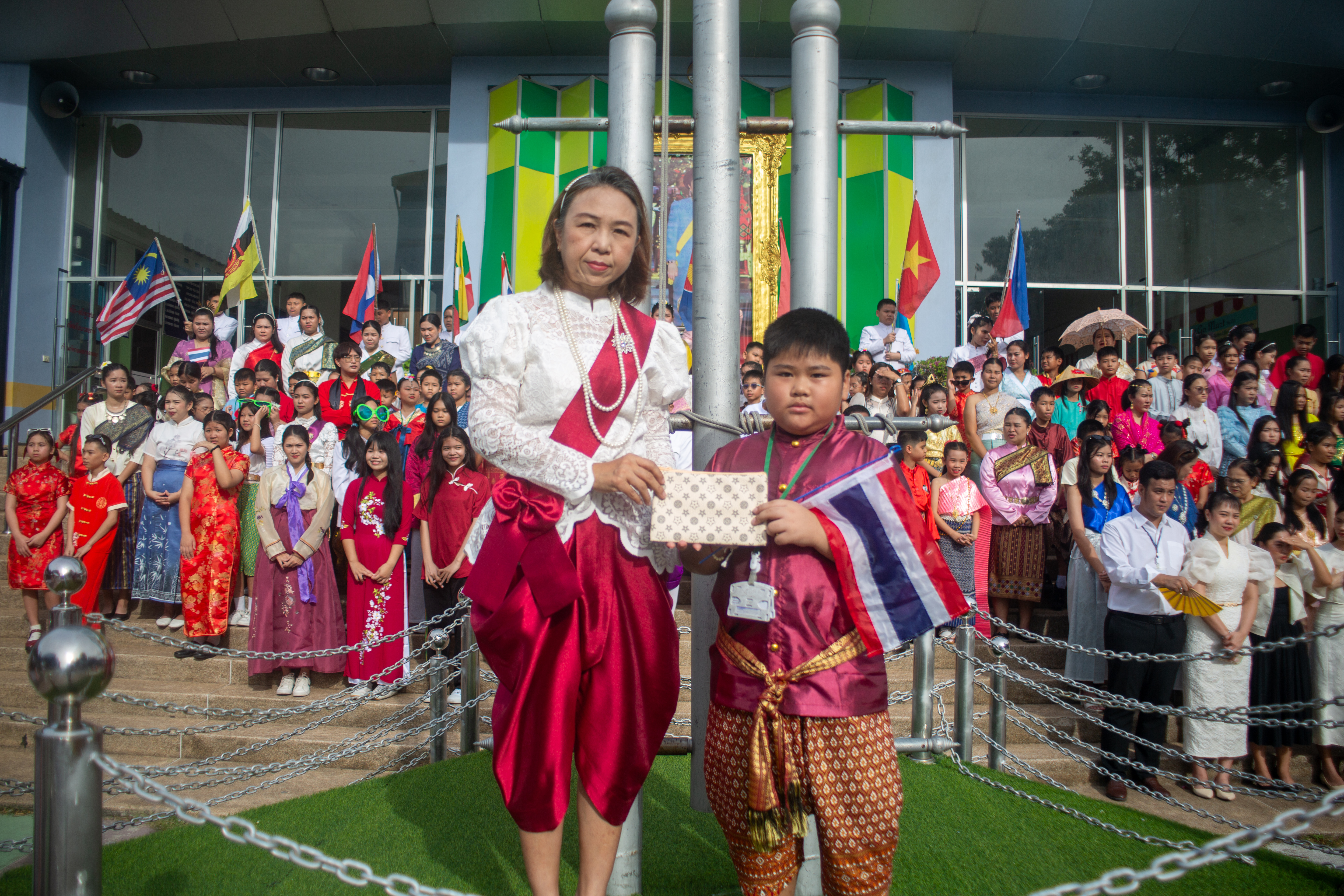 นักเรียนระดับชั้นอนุบาล 1 - ระดับชั้นมัธยมศึกษาปีที่ 3 เข้าร่วมกิจกรรมวันอาเซียนและการประกวดการแต่งกายชุดประจำชาติ ร่วมกิจกรรมตอบคำถามเกี่ยวกับวันอาเชียนและเดินประกวดชุดประจำชาติสวยงาม ในเเต่ละช่วงชั้น โดย นางชวาลา กันทอง ผู้อำนวยการโรงเรียนเป็นประธานในกิจกรรมและมอบรางวัลให้กับนักเรียนที่ชนะการประกวด ณ อาคาร 50 ปี