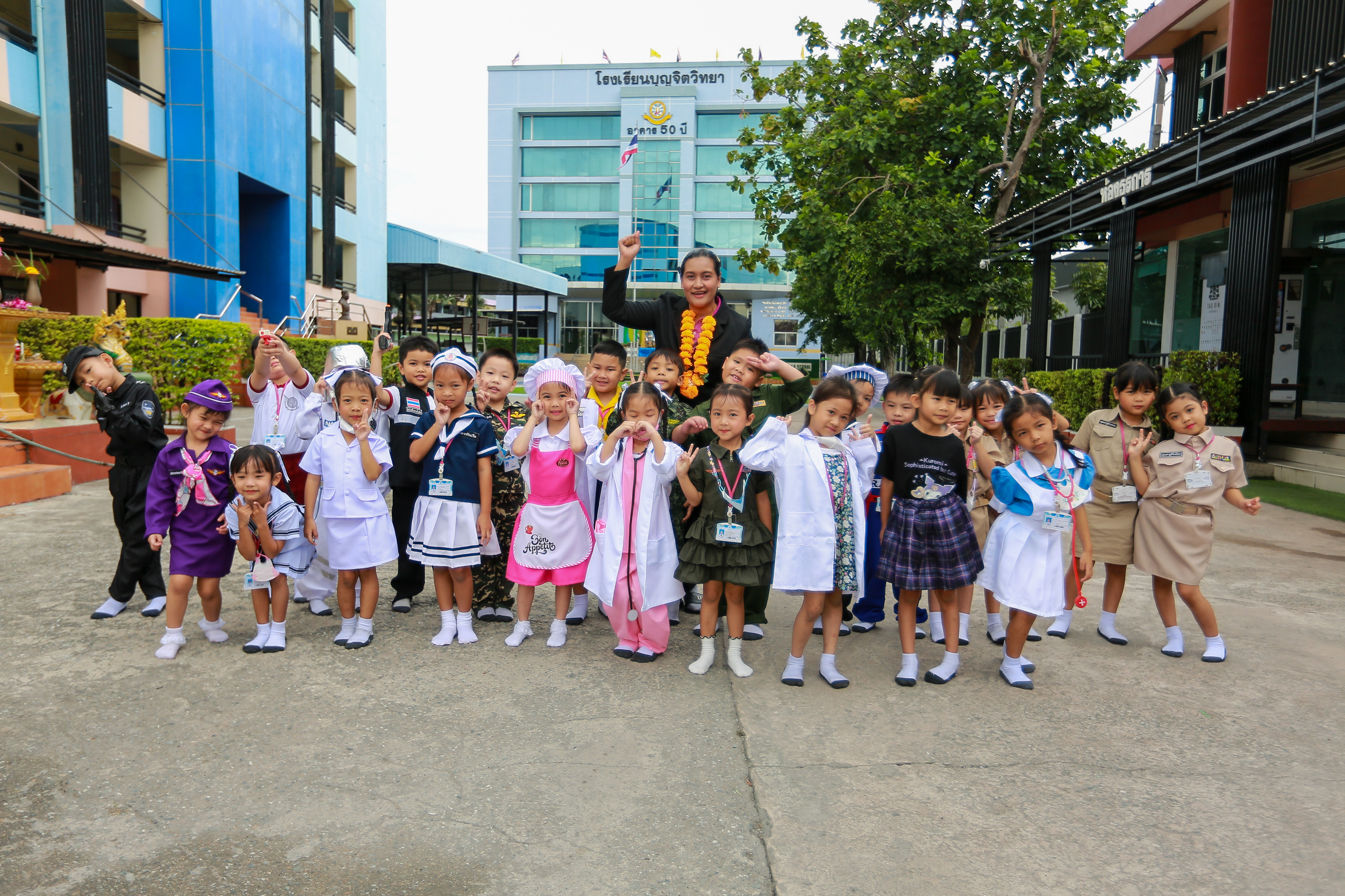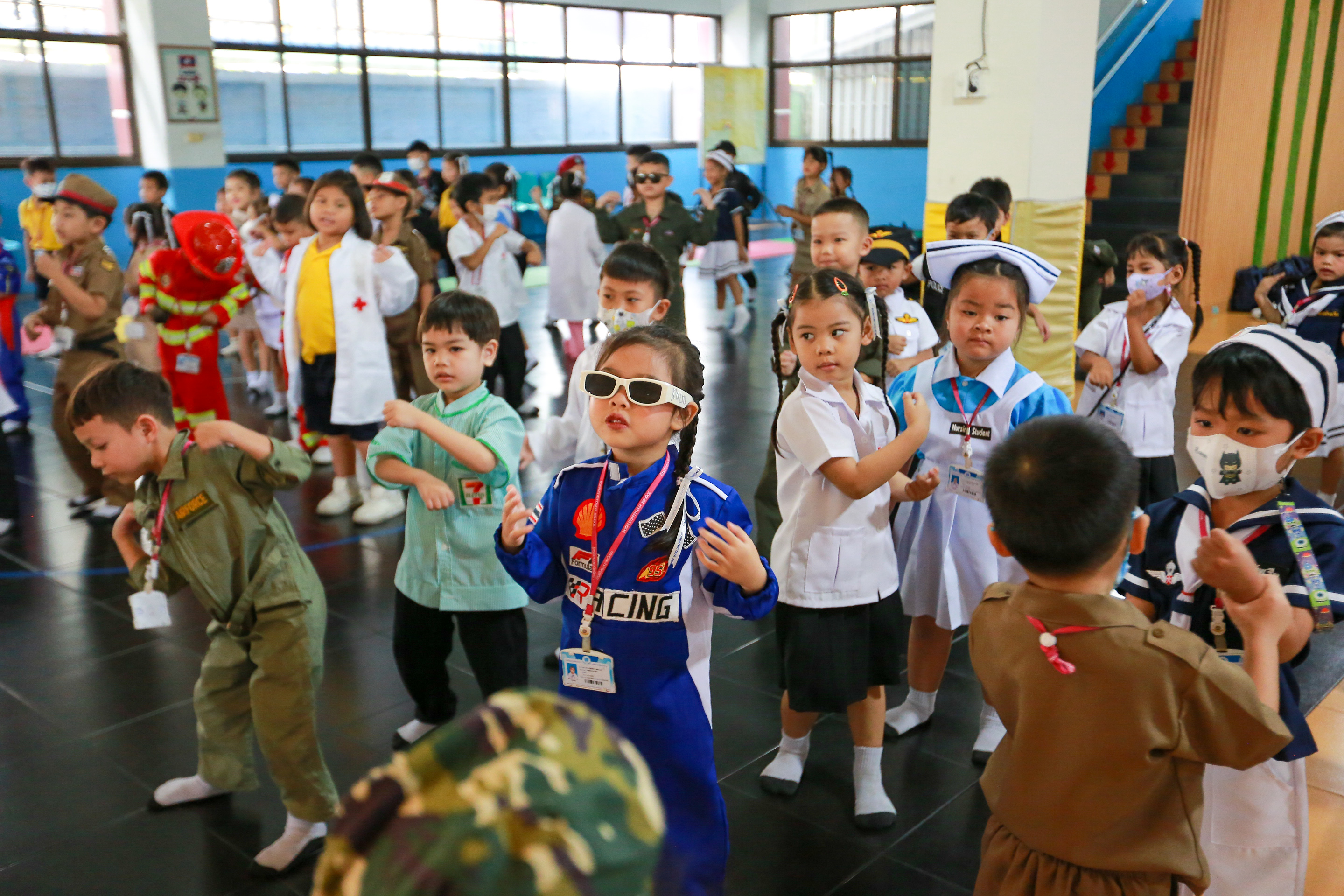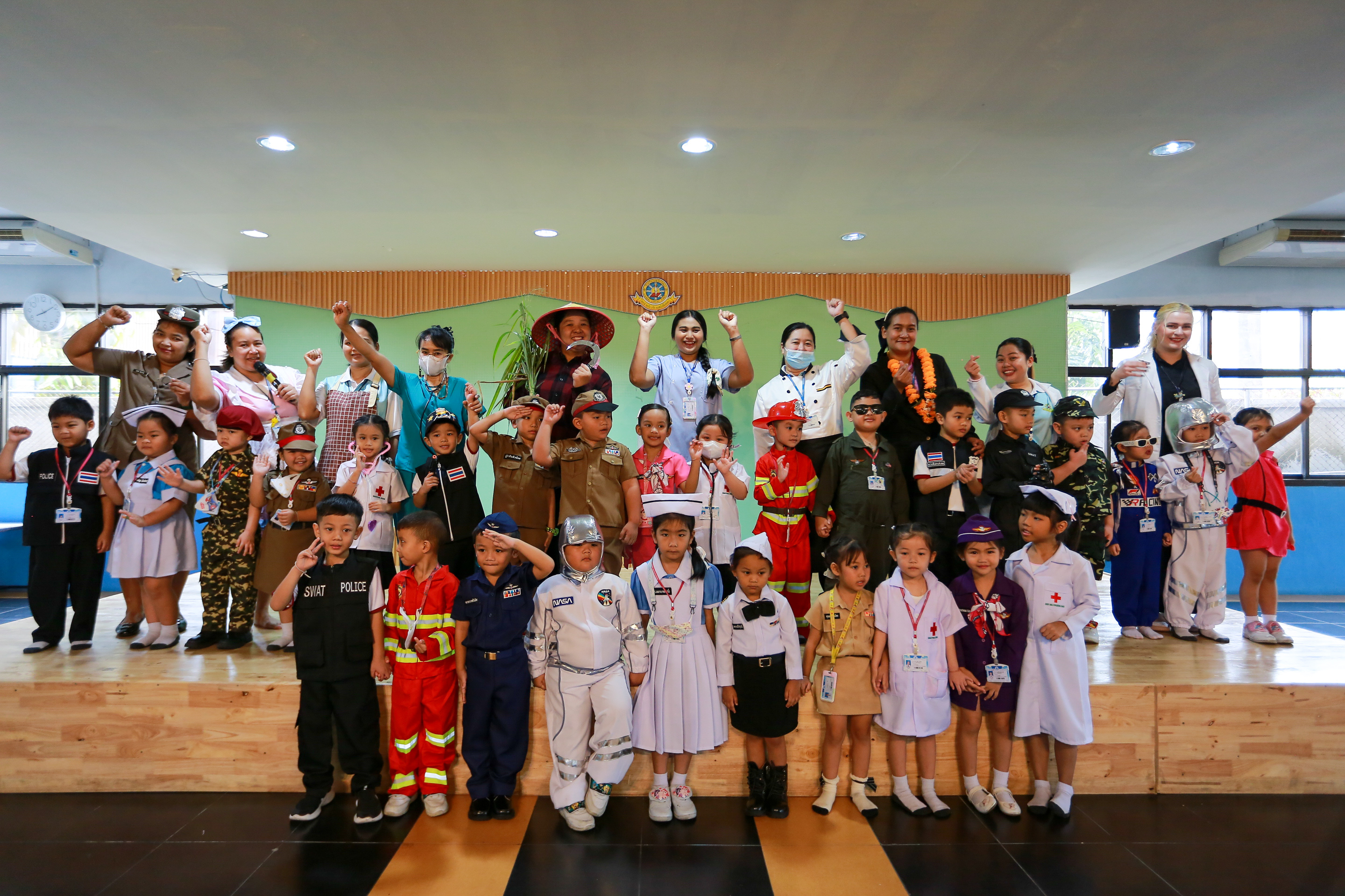 วันศุกร์ที่ 22 สิงหาคม 2568 นักเรียนระดับชั้นอนุบาล 1- 3 เข้าร่วม กิจกรรมอาชีพในฝัน โดยเเต่งกาย หลากหลายอาชีพและได้ความรู้เกี่ยวกับอาชีพที่เเต่งกายมา อีกทั้งสนุกไปกับการเต้นเเละเดินเเบบของแต่ละอาชีพ ณ อาคารเลิศปัญญา