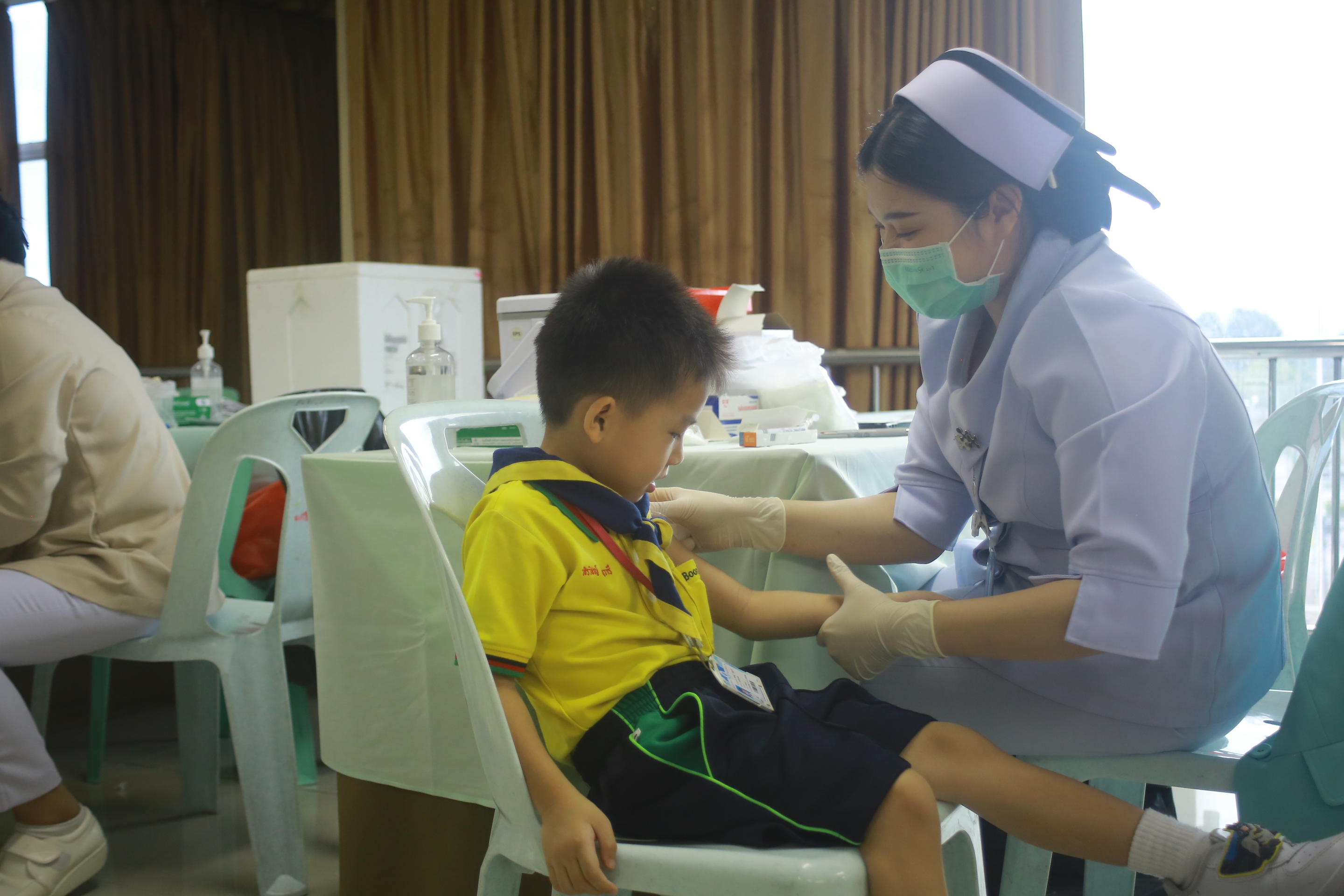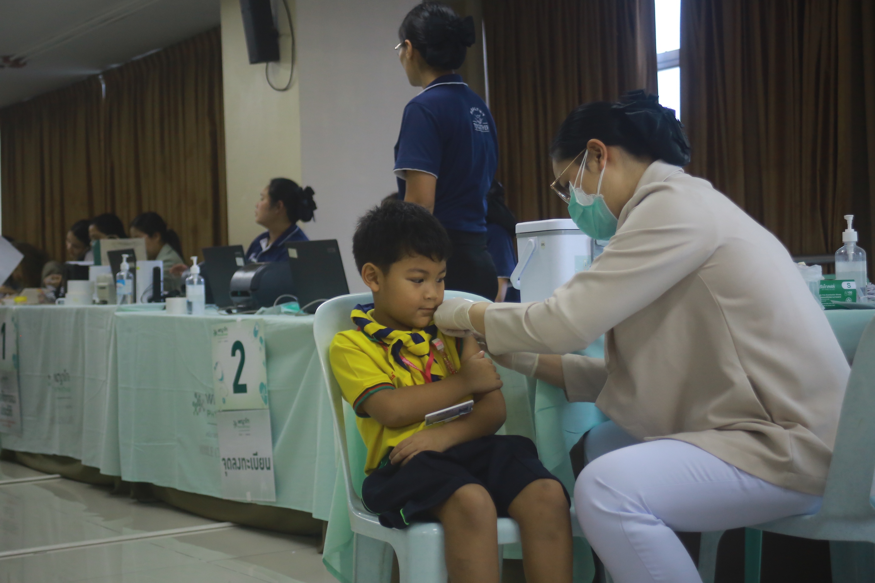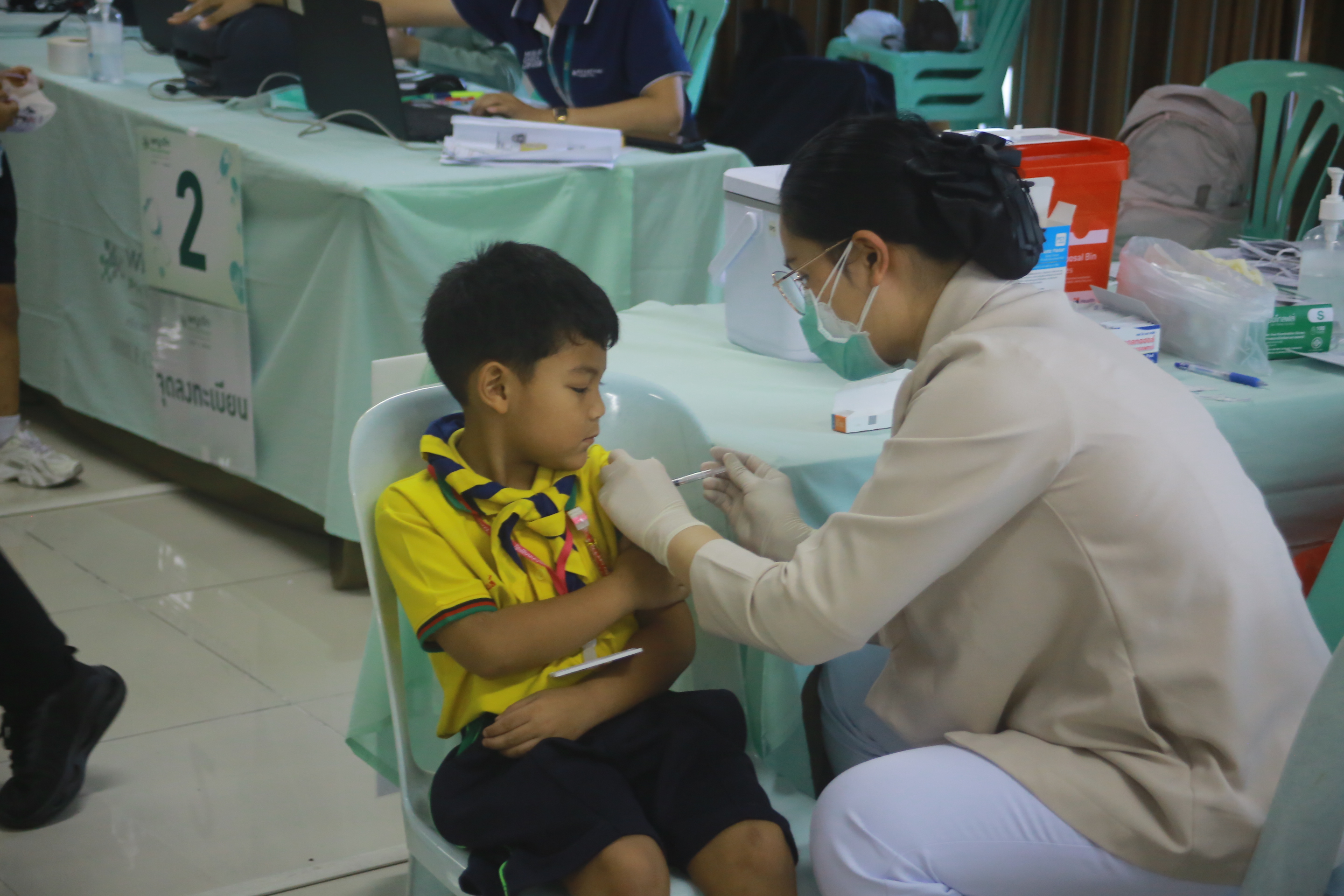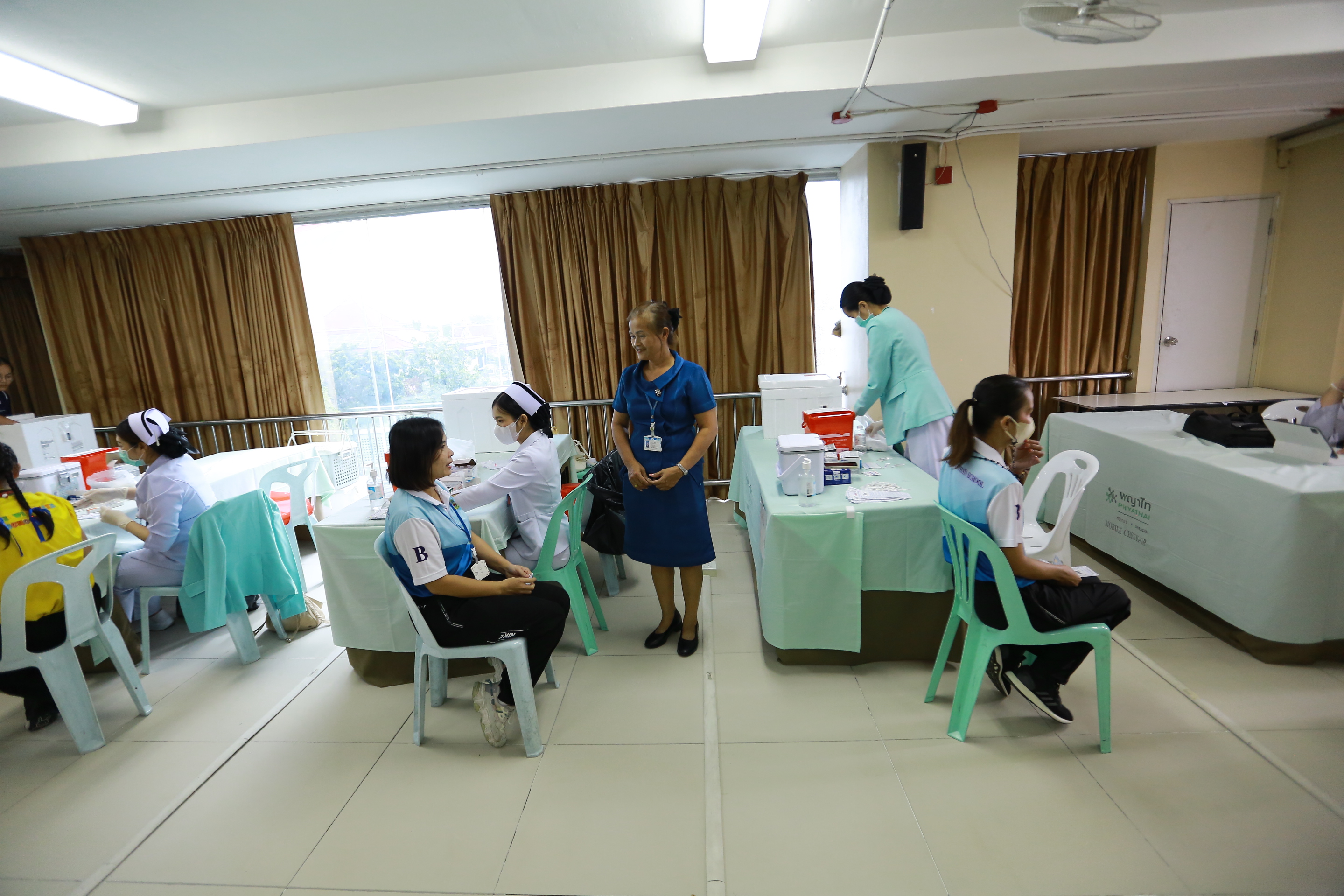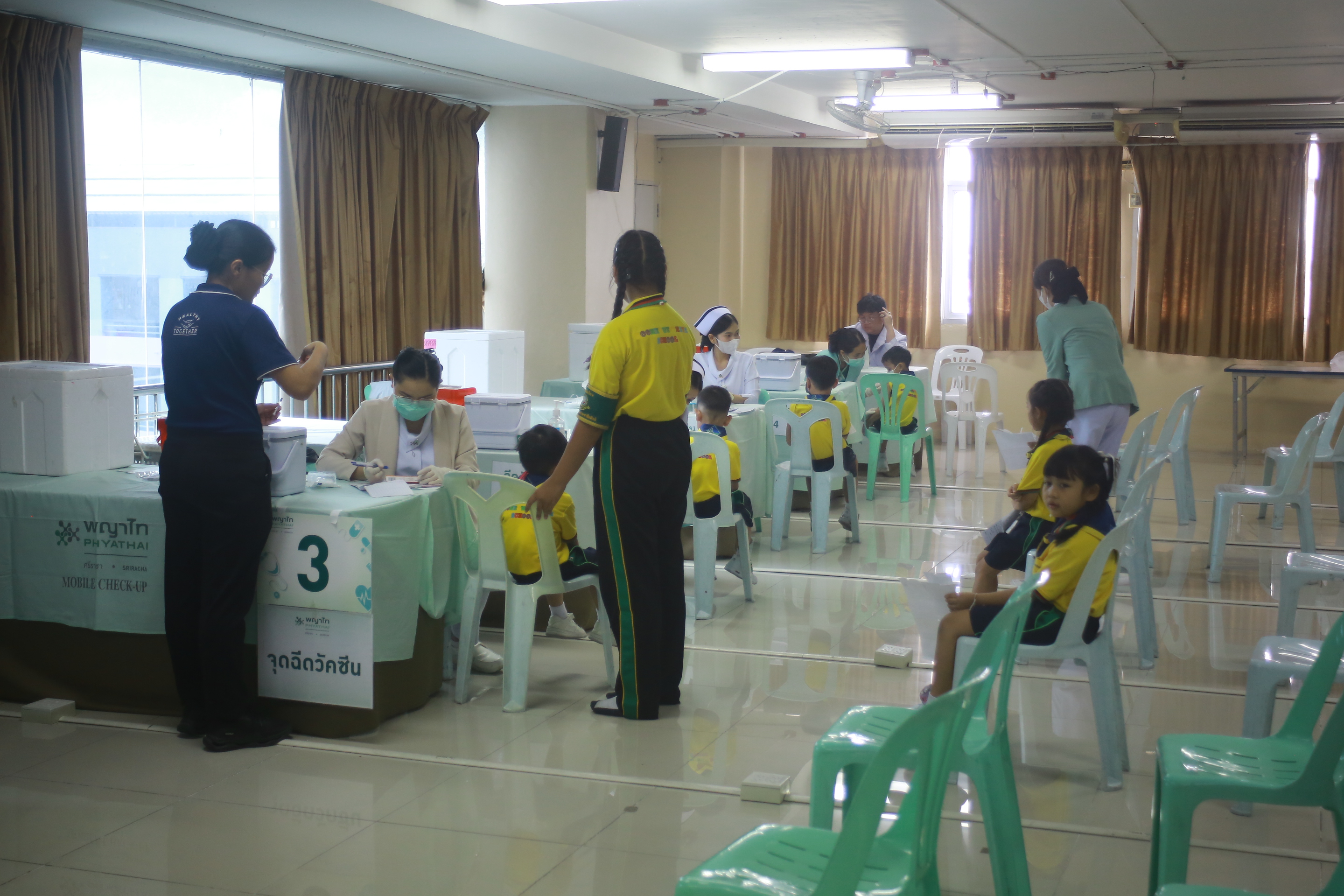 วันศุกร์ที่ 26 กันยายน 2568 นางทัศนัยา สัตยะวงค์ ผู้ช่วยผู้อำนวยการ ประสานร่วมกับ เจ้าหน้าที่พยาบาลโรงพยาบาลพญาไท ศรีราชา เปิดรับการฉีดวัคซีนป้องกันไข้หวัดใหญ่ ให้กับบุคลากรครู นักเรียนระดับชั้นอนุบาล 1- ระดับชั้นมัธยมศึกษาปีที่ 3 ผู้ปกครองและบุคคลภายนอกที่ลงทะเบียนเข้ารับการฉีดวัคซีนป้องกันไข้หวัดใหญ่ ณ ห้องประชุมชั้น 4 อาคาร 50 ปี