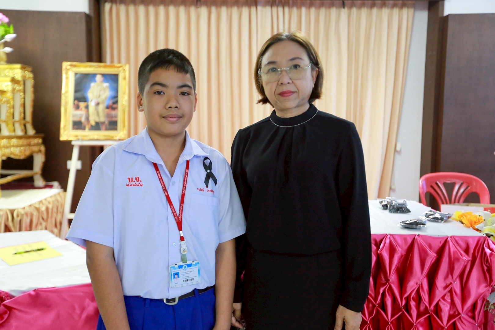 พร้อมด้วยคณะผู้บริหาร ได้จัดกิจกรรม “มอบริบบิ้นสีดำไว้อาลัย” ให้แก่นักเรียนระดับชั้นปฐมวัยถึงระดับชั้นมัธยมศึกษา เพื่อเพื่อถวายความอาลัยและรำลึกถึงการเสด็จสวรรคตของ สมเด็จพระนางเจ้าสิริกิติ์ พระบรมราชินีนาถ พระบรมราชชนนีพันปีหลวง เพื่อเป็นเครื่องหมายแสดงถึงการไว้อาลัย ณ อาคารเลิศปัญญา และ ห้องเรียนอาคาร 50 ปียถึงระดับชั้น