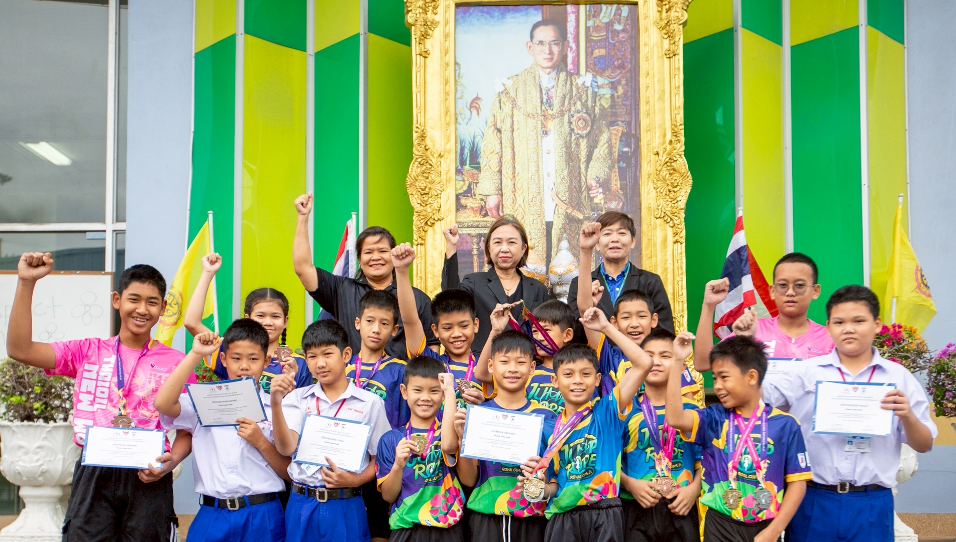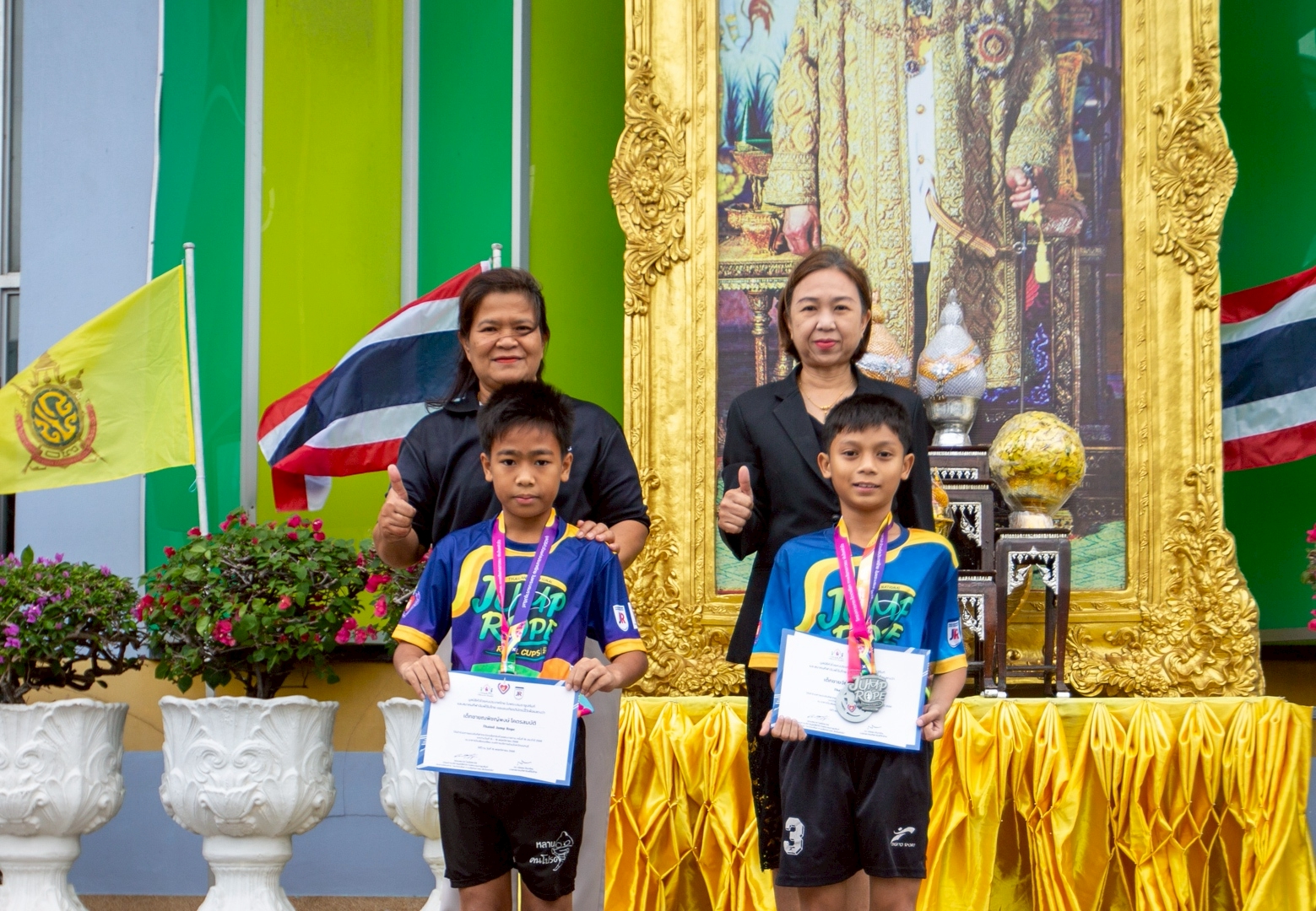 นางชวาลา กันทอง ผู้อำนวยการโรงเรียนบุญจิตวิทยา และนางพิกุลเงิน ฟักเกษ กรรมการบริหารโรงเรียน ร่วมแสดงความยินดีกับนักกีฬากระโดดเชือก พร้อมมอบเกียรติบัตรและ เหรียญรางวัล จากการแข่งขันกระโดดเชือกชิงถ้วยพระราชทาน ครั้งที่ 16 รายการ Queen's Cup Jump Rope Thailand Open 2025 (ประเภทมืออาชีพ)ชิงแชมป์ประเทศไทย และร่วมถ่ายภาพกับนักกีฬาที่สร้างชื่อเสียงให้กับโรงเรียน ณ บริเวณหน้าอาคาร 50 ปี