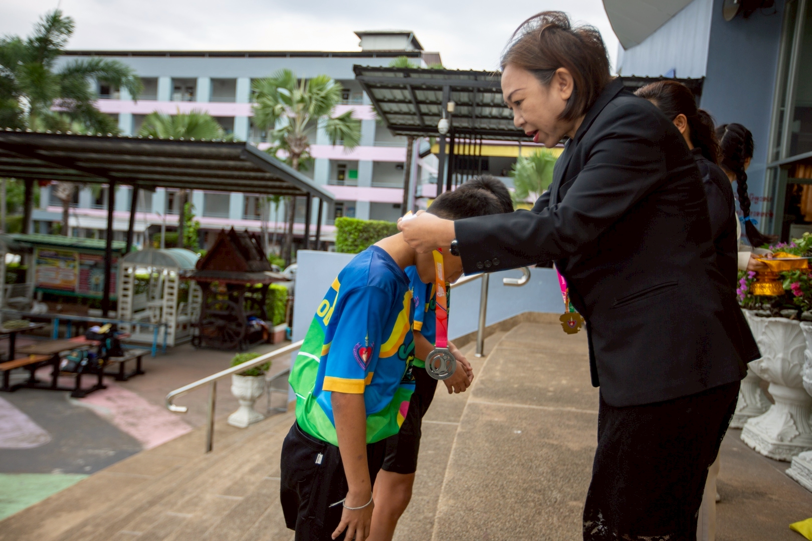 ร่วมแสดงความยินดีนักกีฬากระโดดเชือก