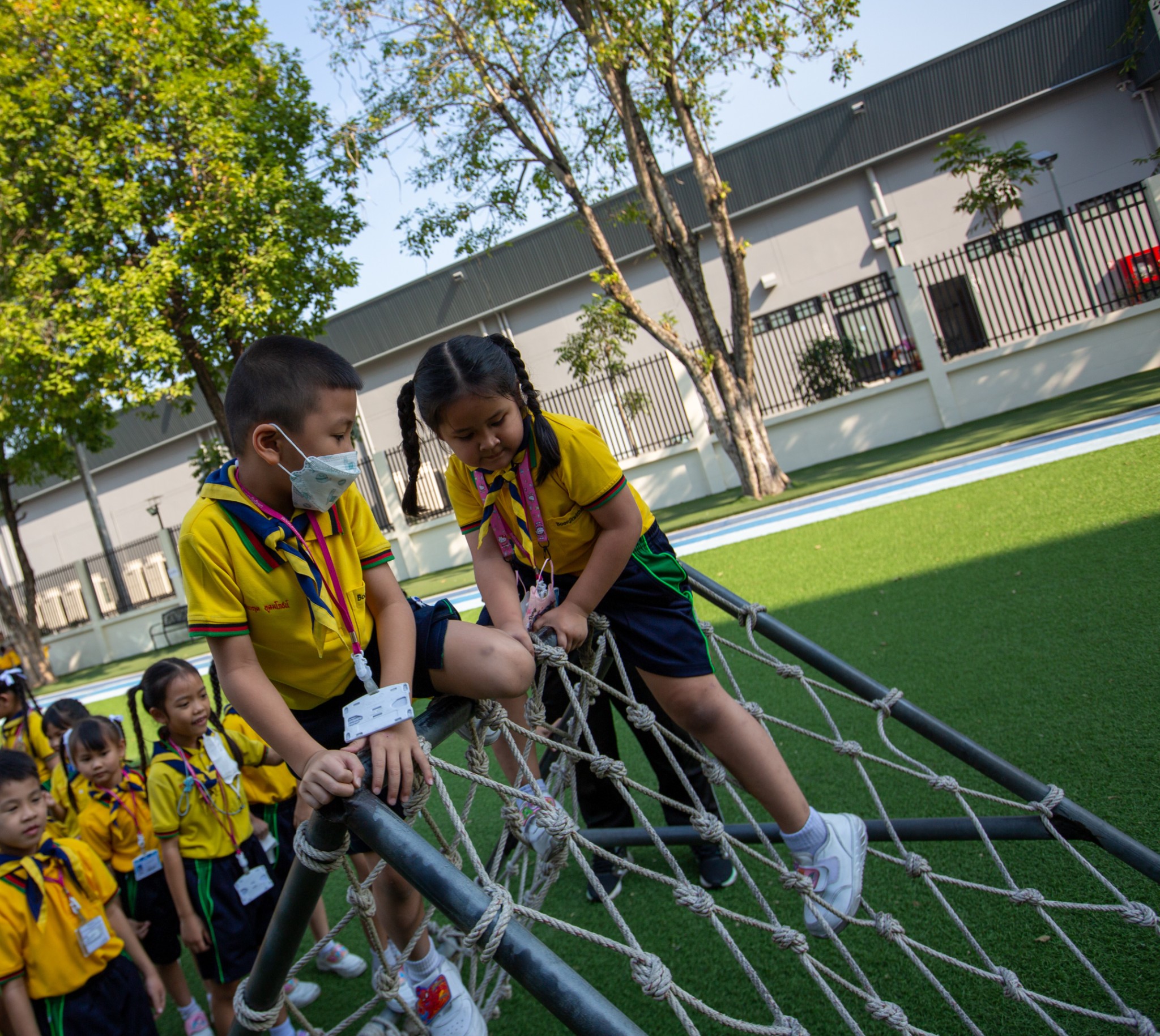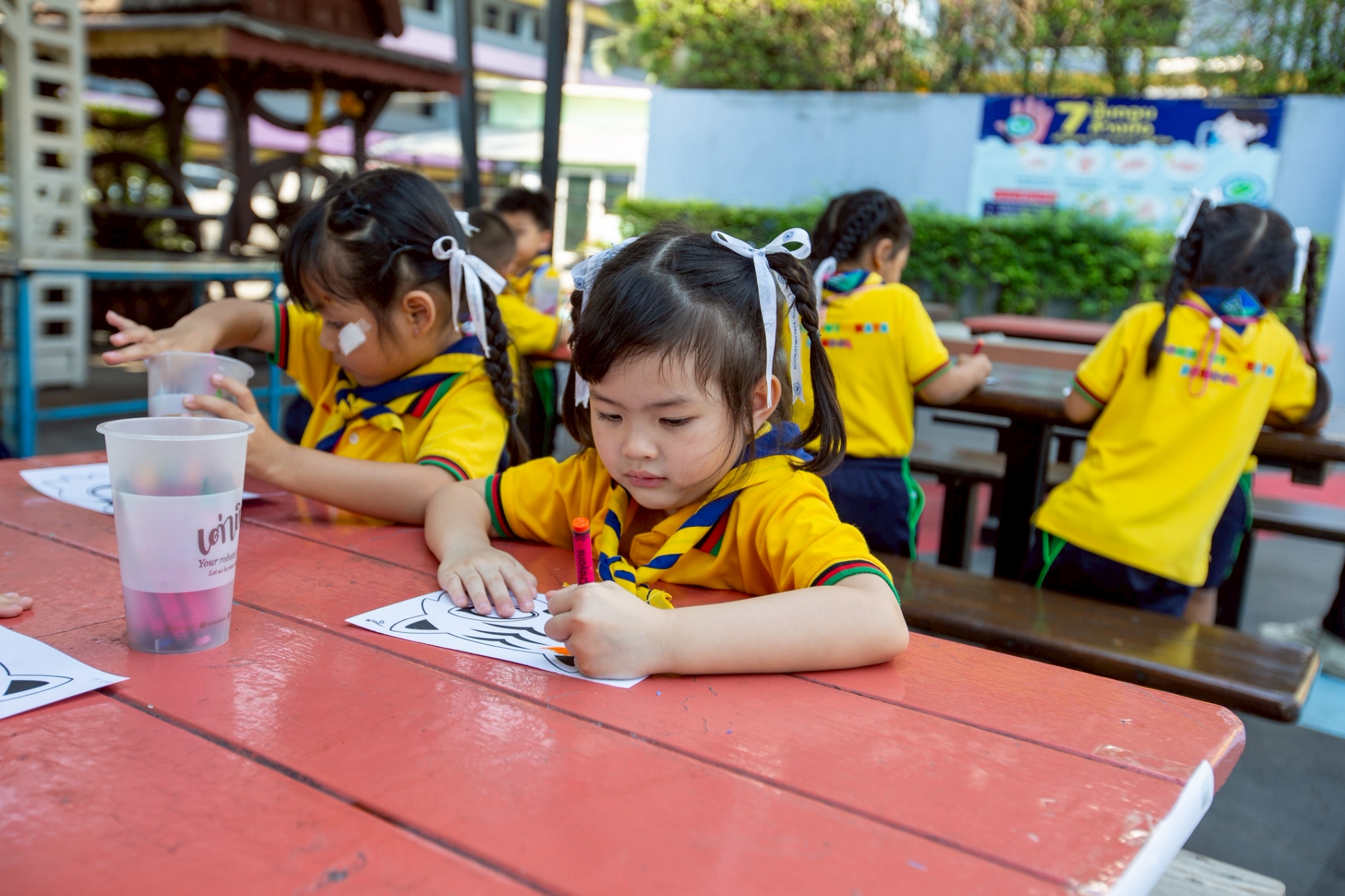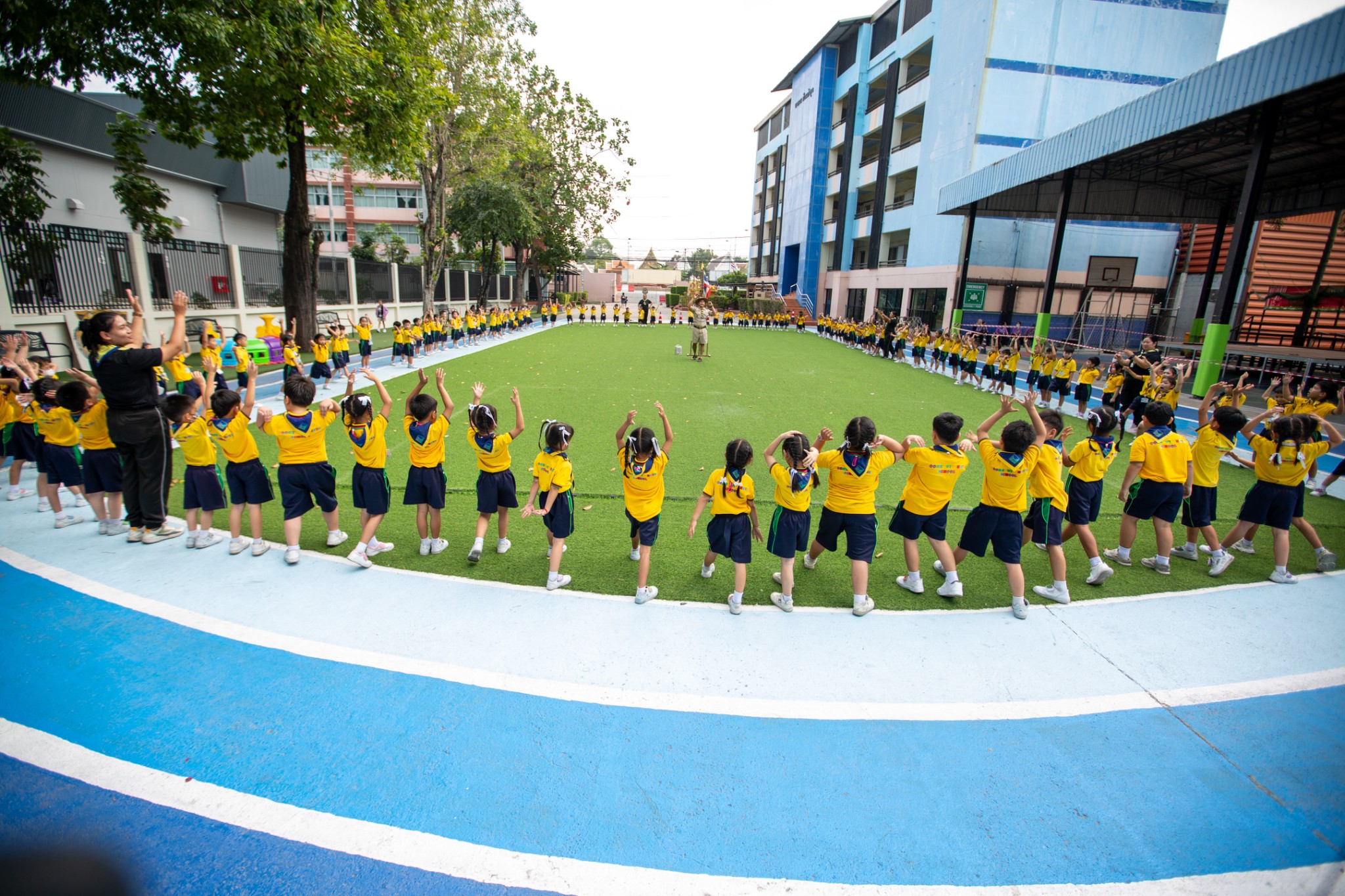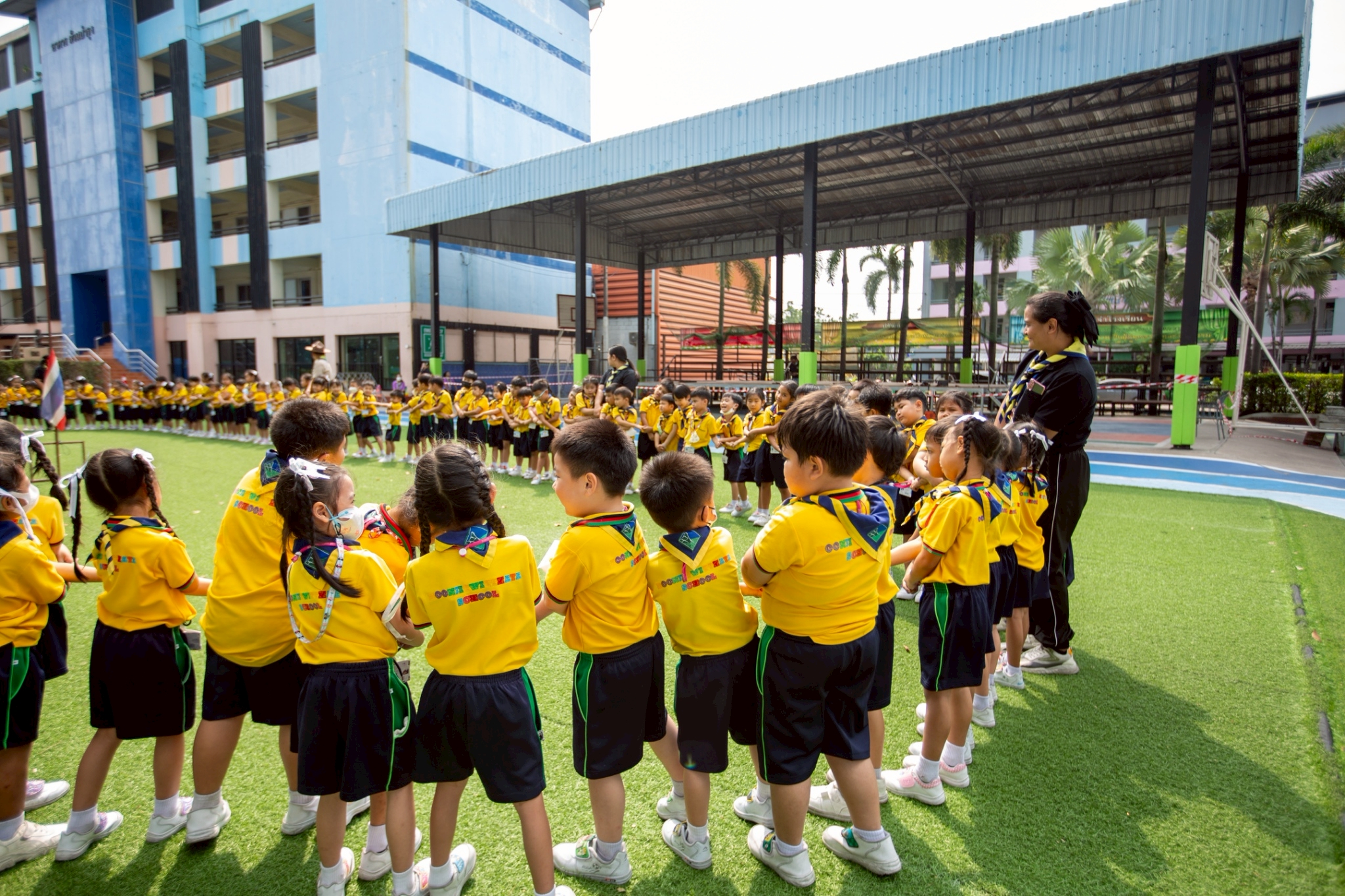 นักเรียนระดับชั้นอนุบาล 1 – นักเรียนระดับชั้นอนุบาล 3 เปิดกองลูกเสือและการเข้าฐานกิจกรรมผจญภัย ณ สนามหน้าอาคาร 50 ปี