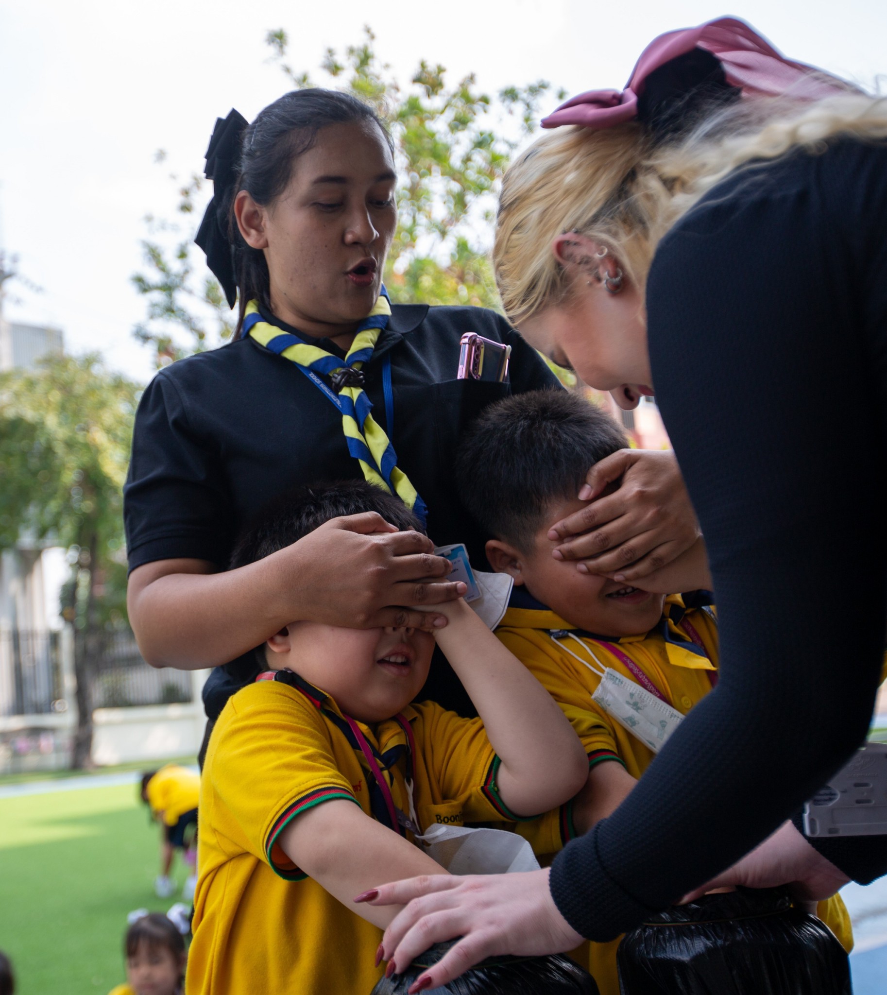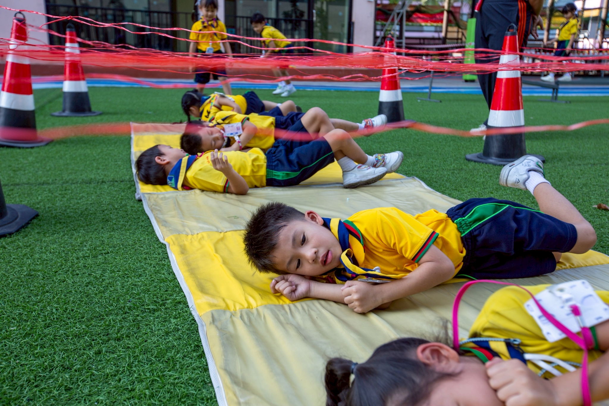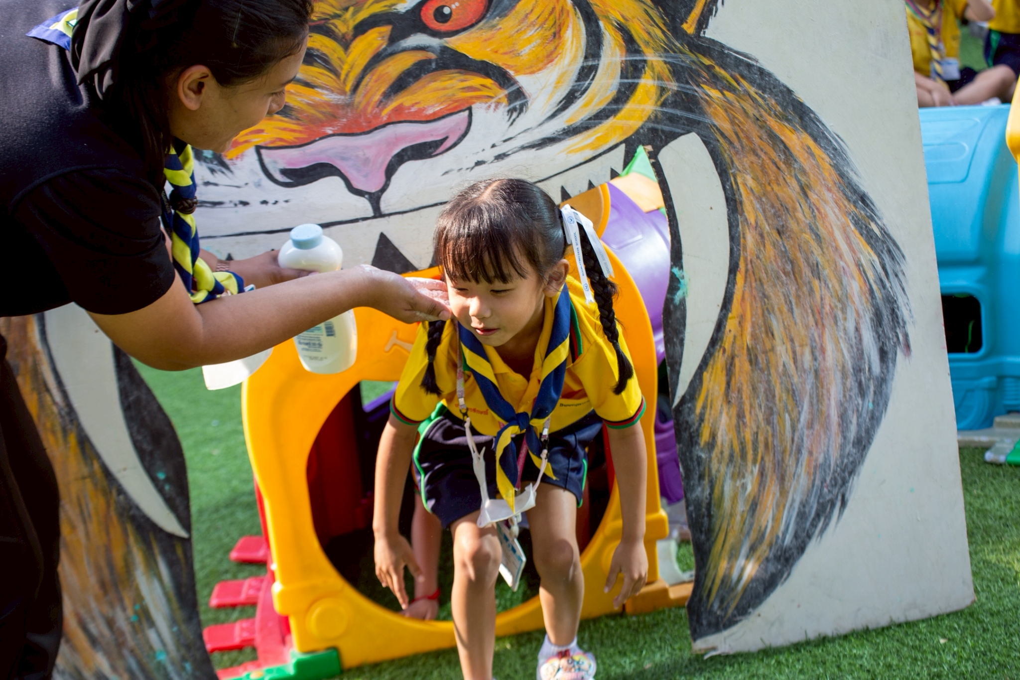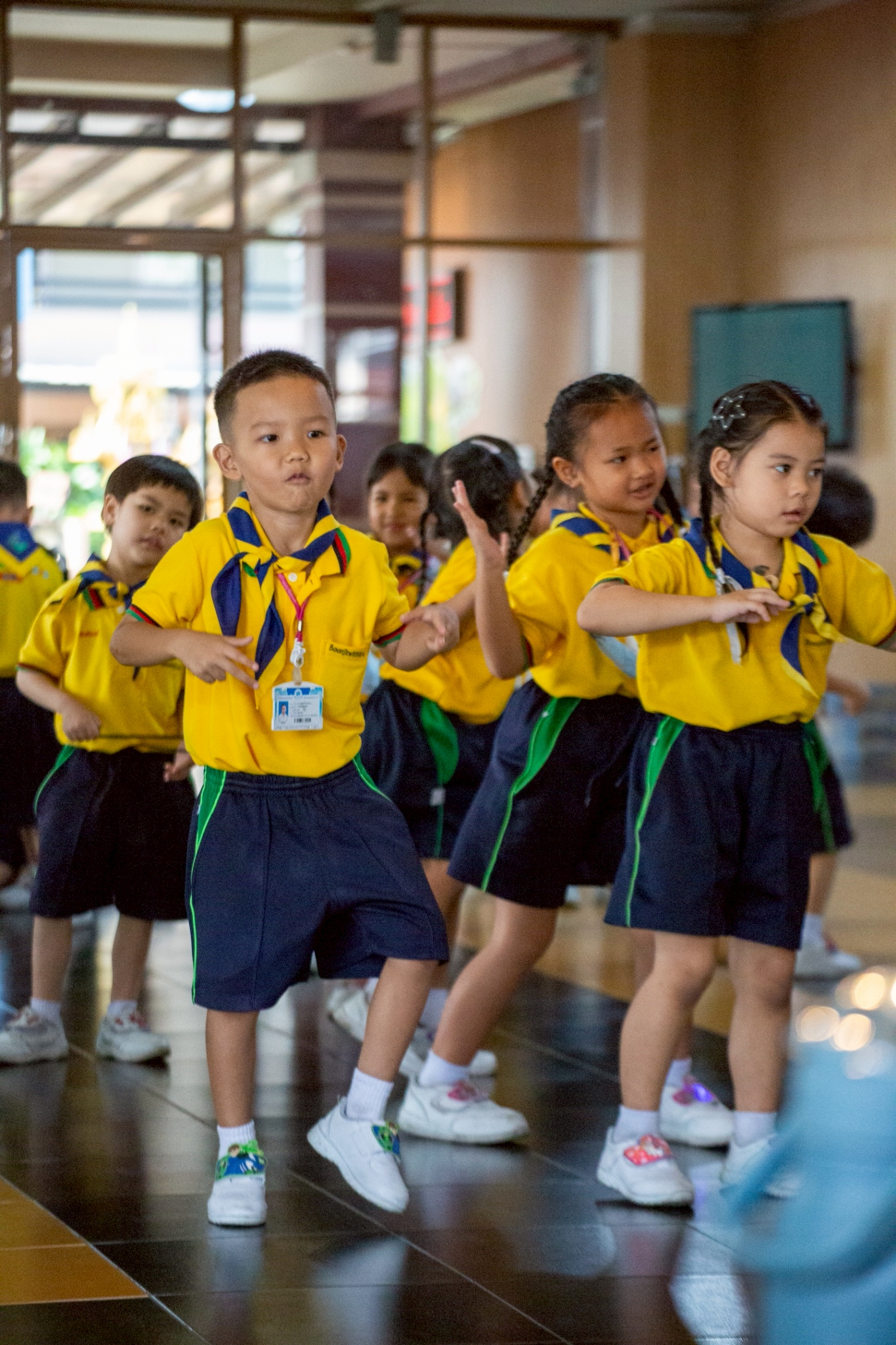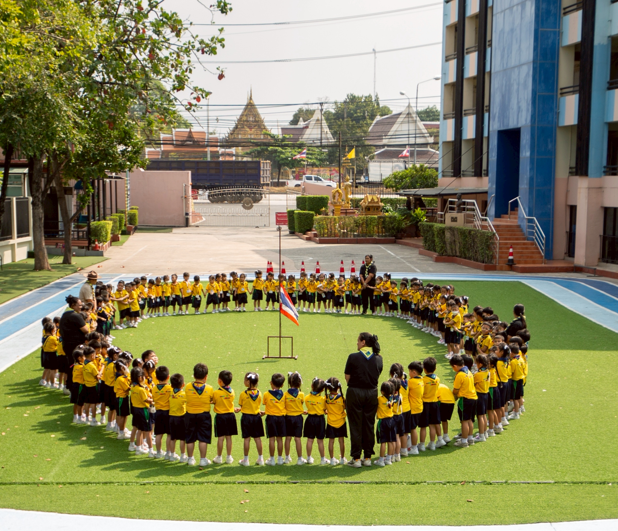 นักเรียนระดับชั้นอนุบาล 1 – นักเรียนระดับชั้นอนุบาล 3 เปิดกองลูกเสือและการเข้าฐานกิจกรรมผจญภัย ณ สนามหน้าอาคาร 50 ปี