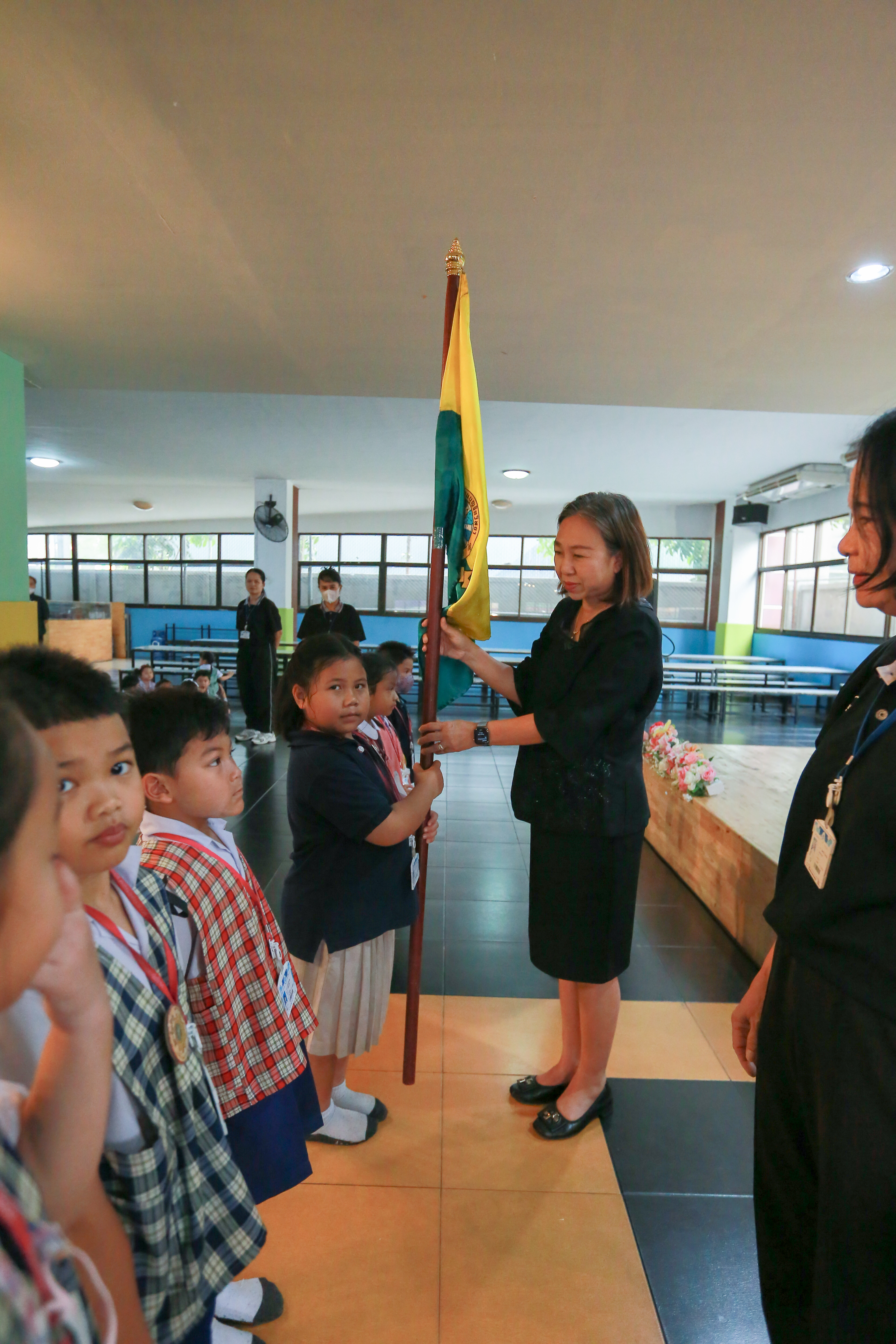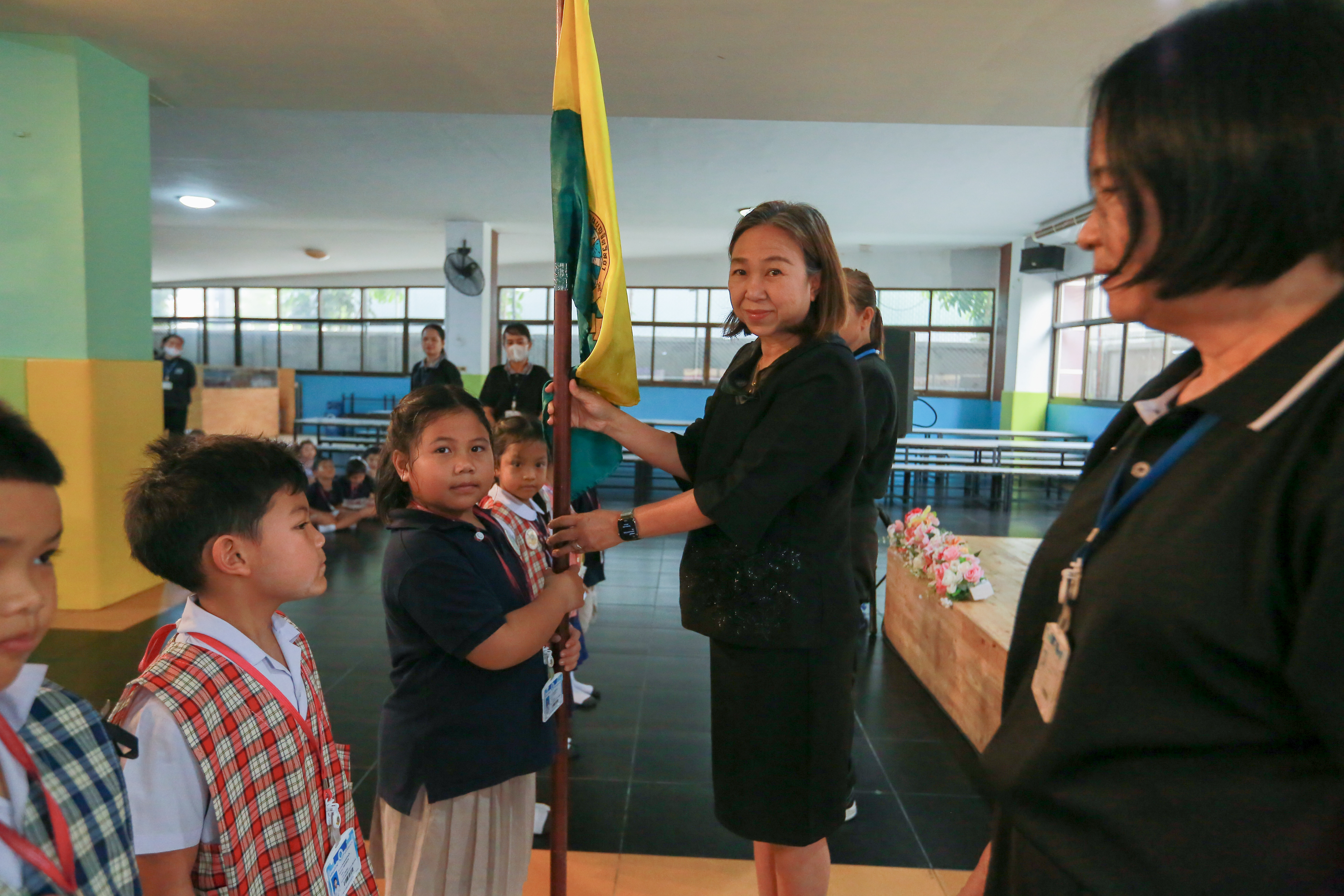 รับมอบธงจากด.ญ.พรปวีณ์ คำเมือง ประธานสภานักเรียน