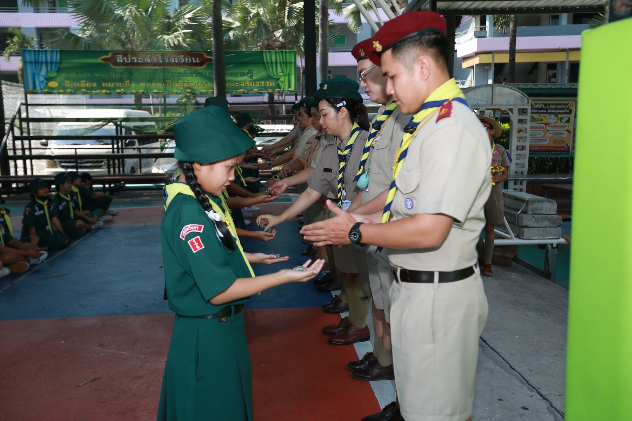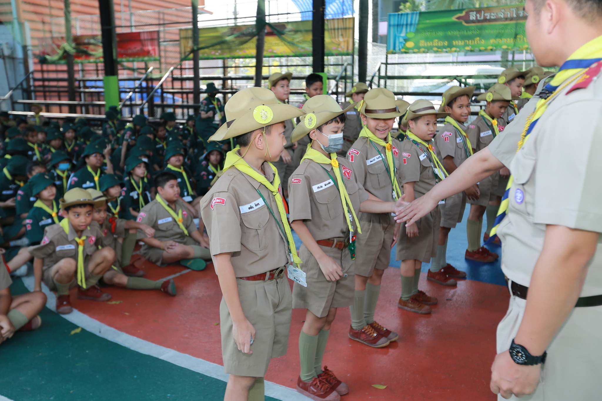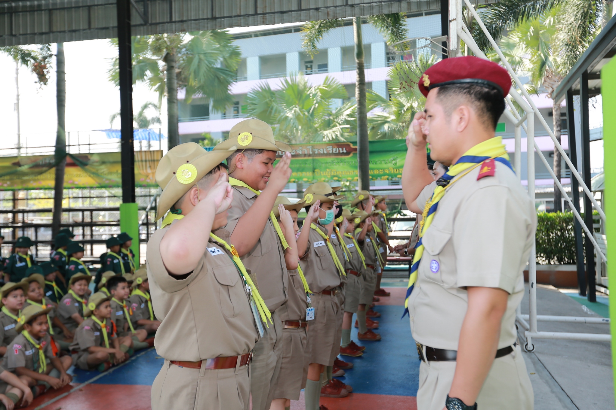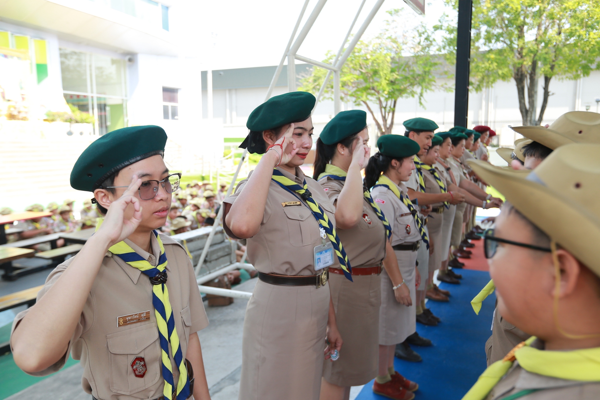ณ หน้าอาคาร 50 ปี คณะผู้กำกับลูกเสือ ร่วมประดับเครื่องหมายวิชาพิเศษ