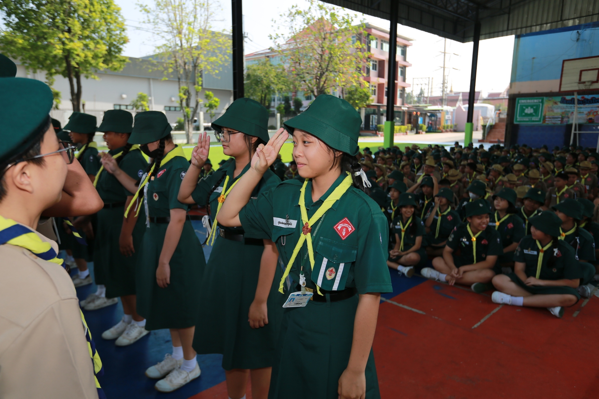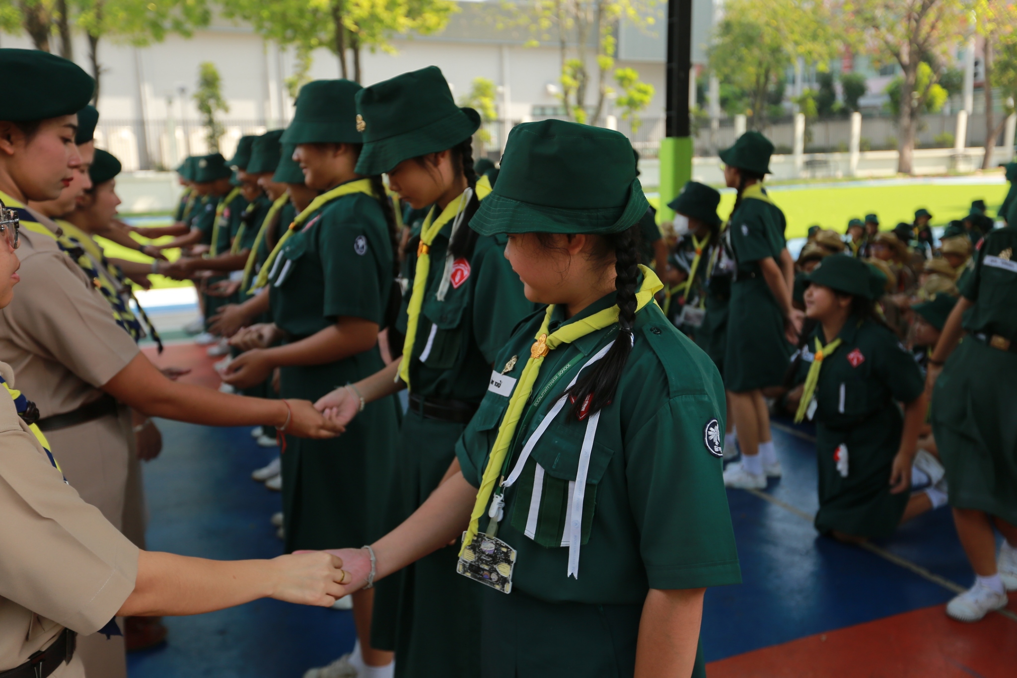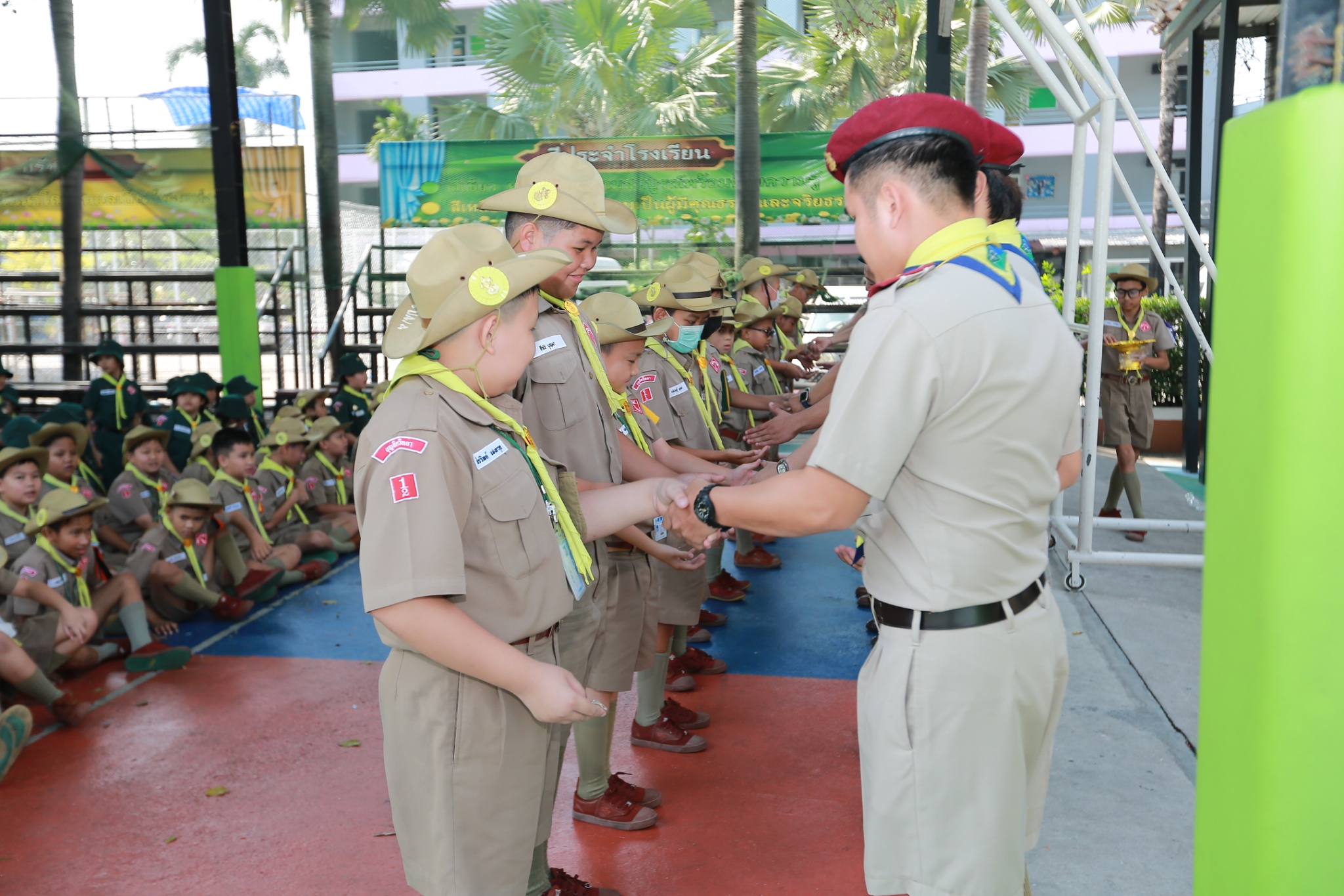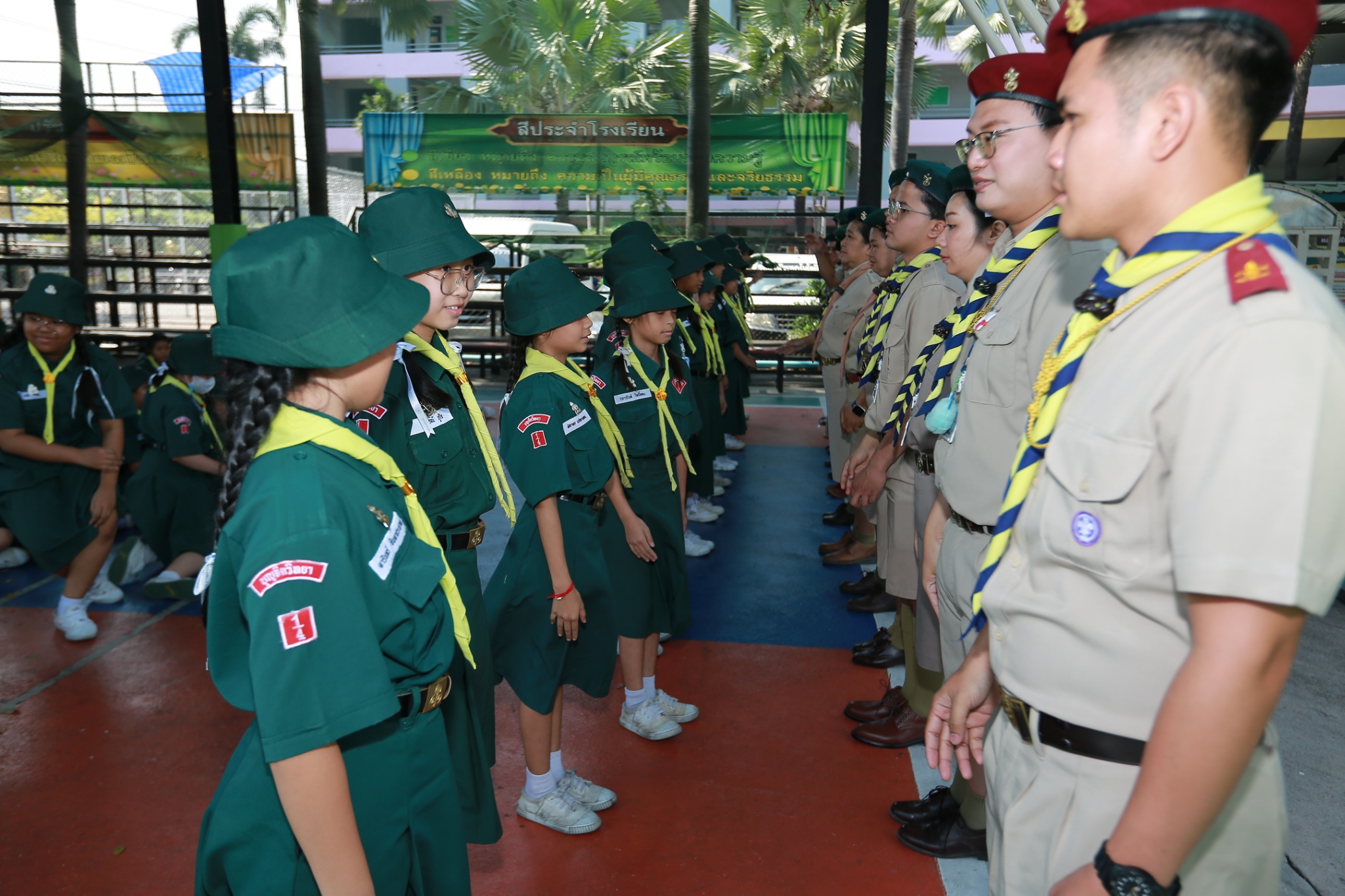 ณ หน้าอาคาร 50 ปี คณะผู้กำกับลูกเสือ ร่วมประดับเครื่องหมายวิชาพิเศษ