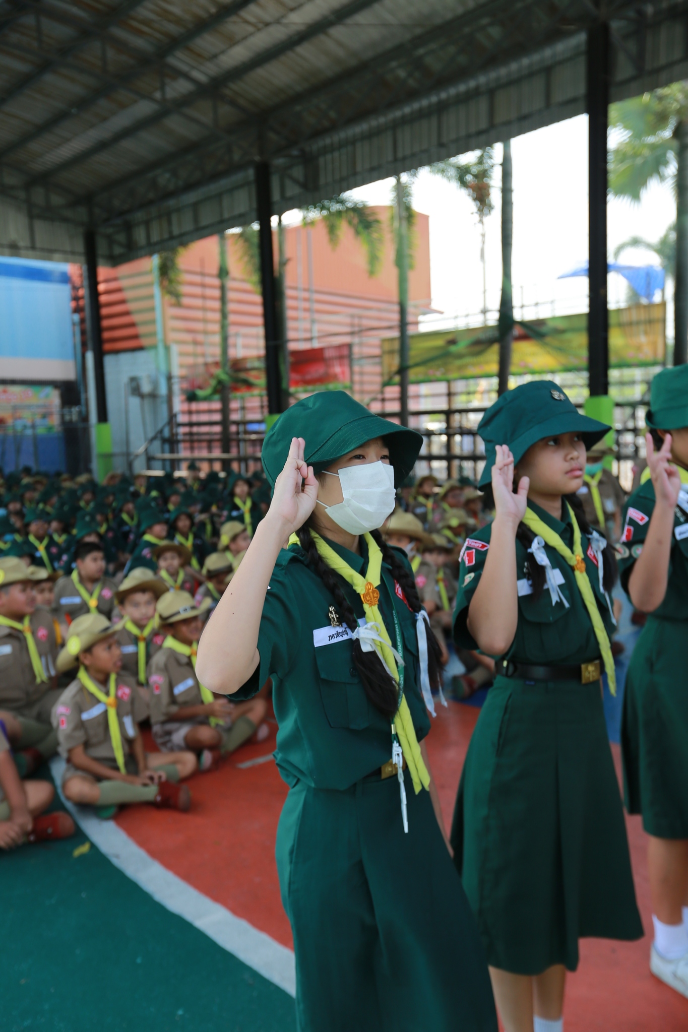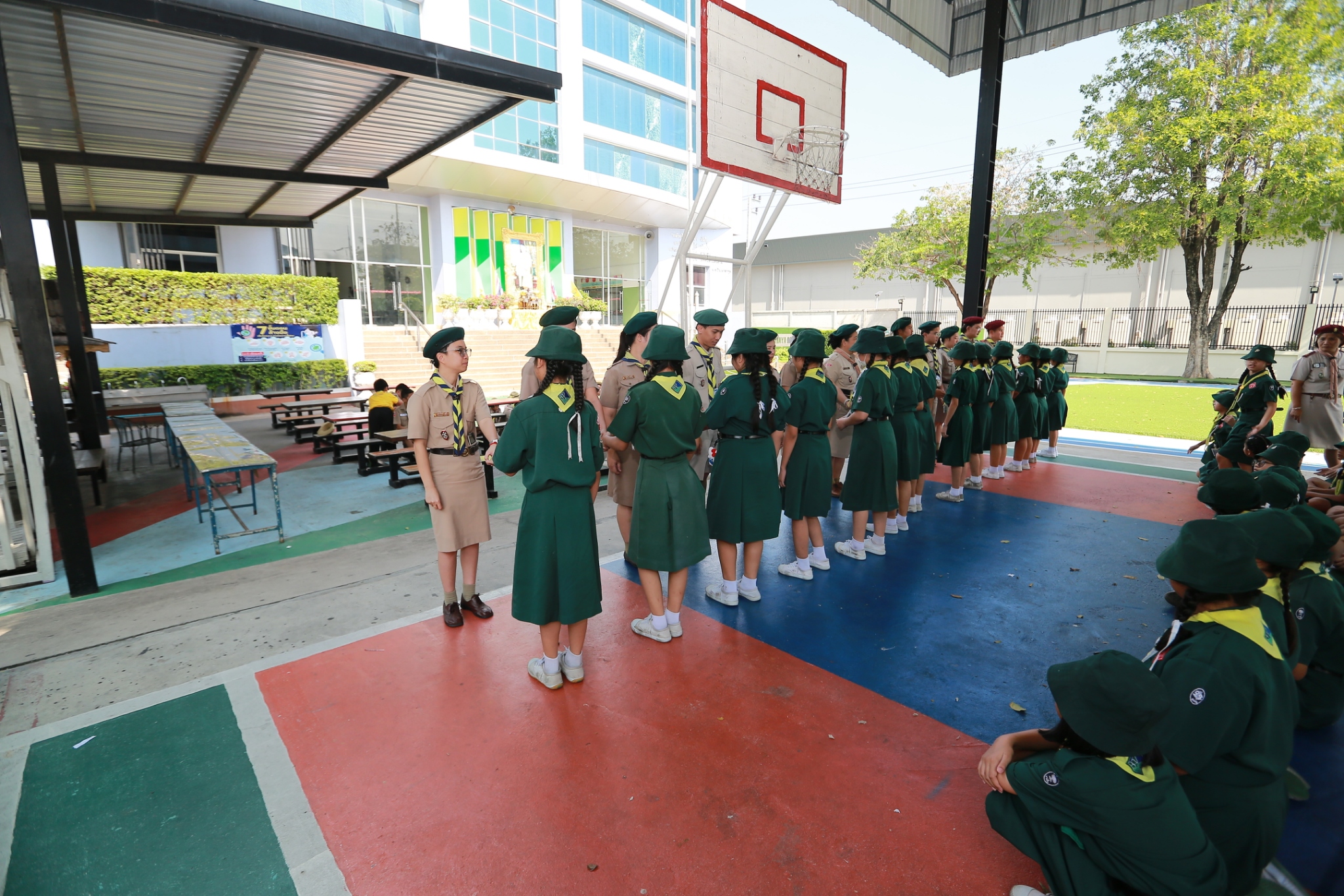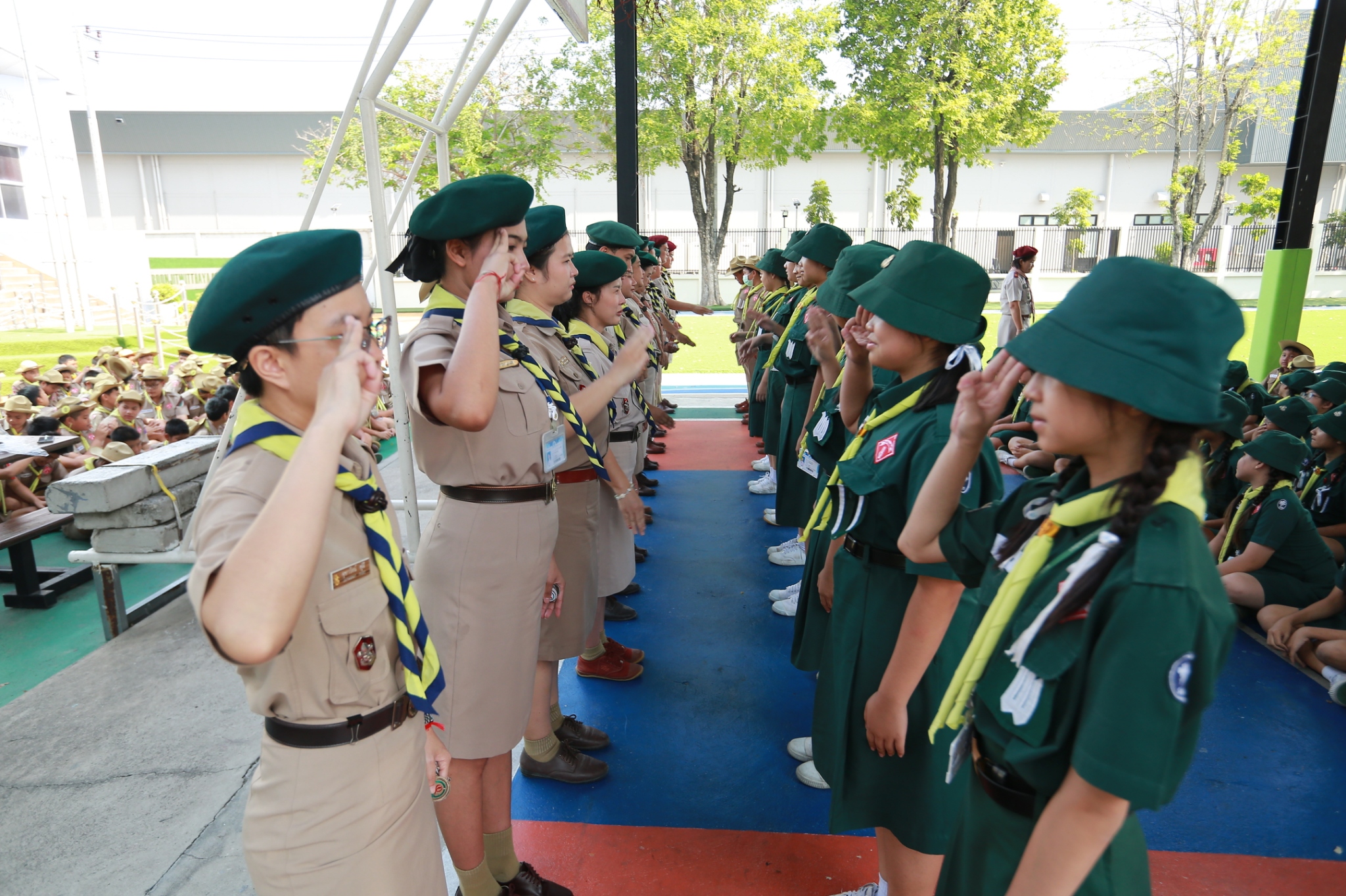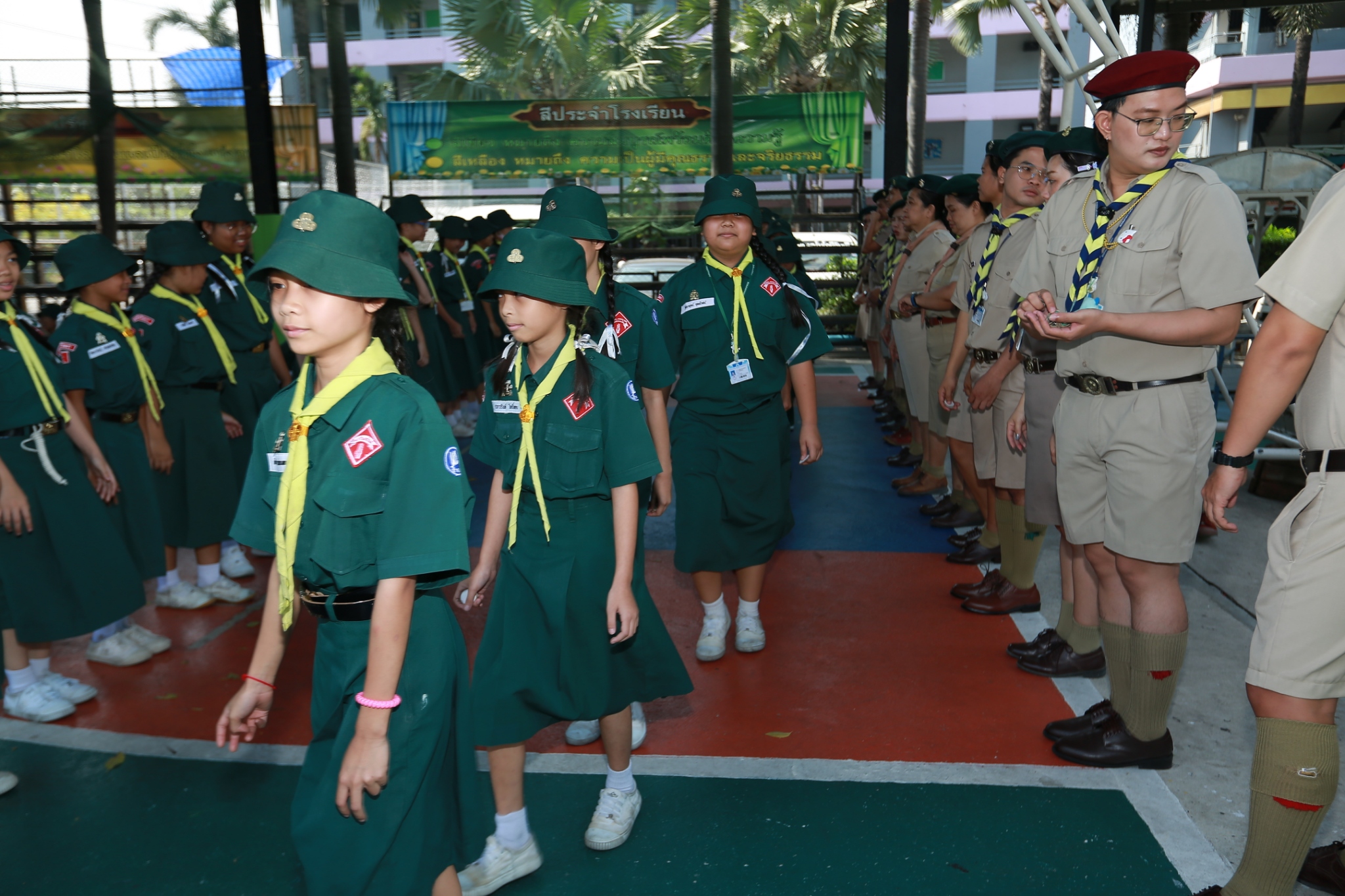 ณ หน้าอาคาร 50 ปี คณะผู้กำกับลูกเสือ ร่วมประดับเครื่องหมายวิชาพิเศษ