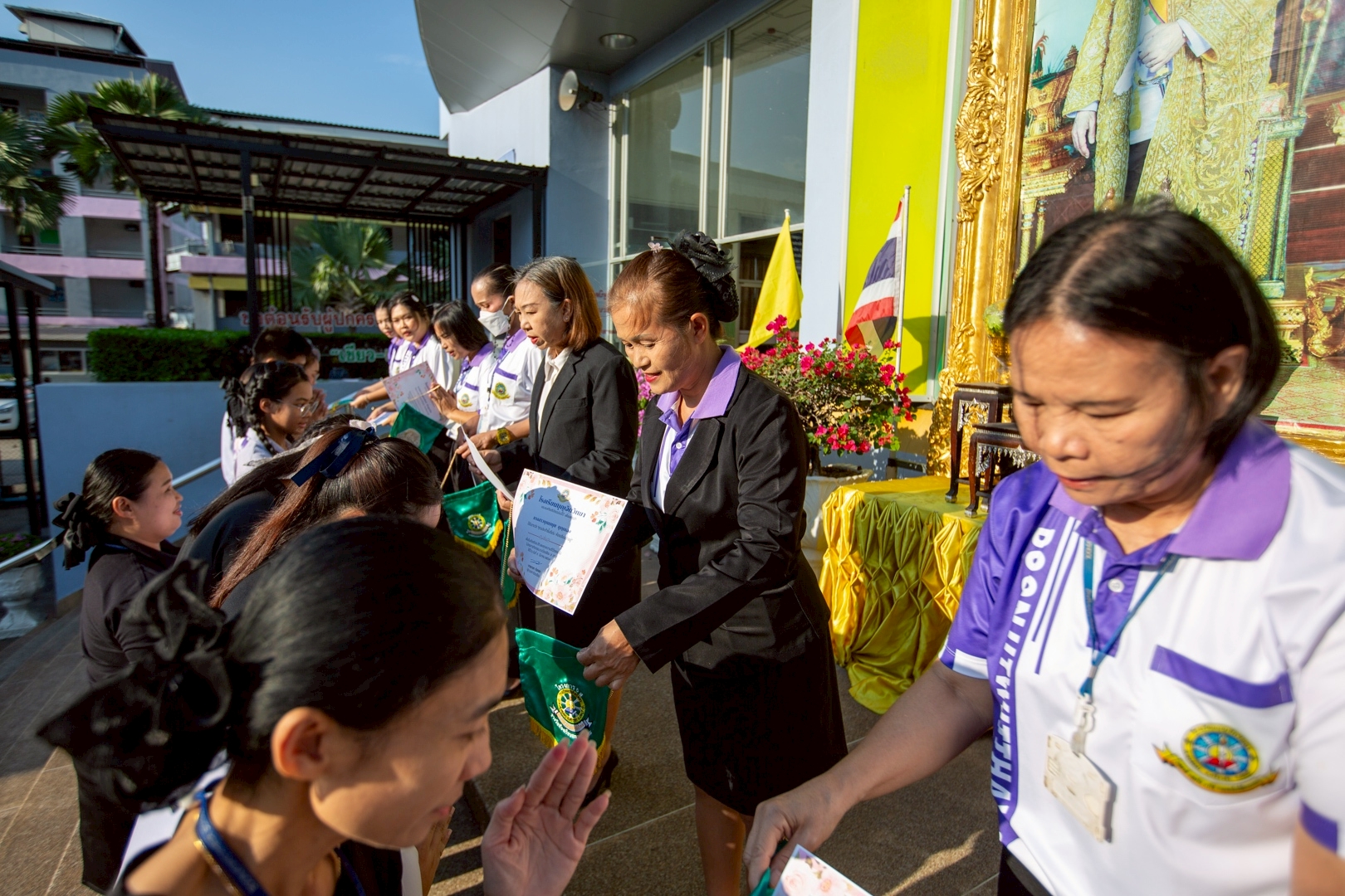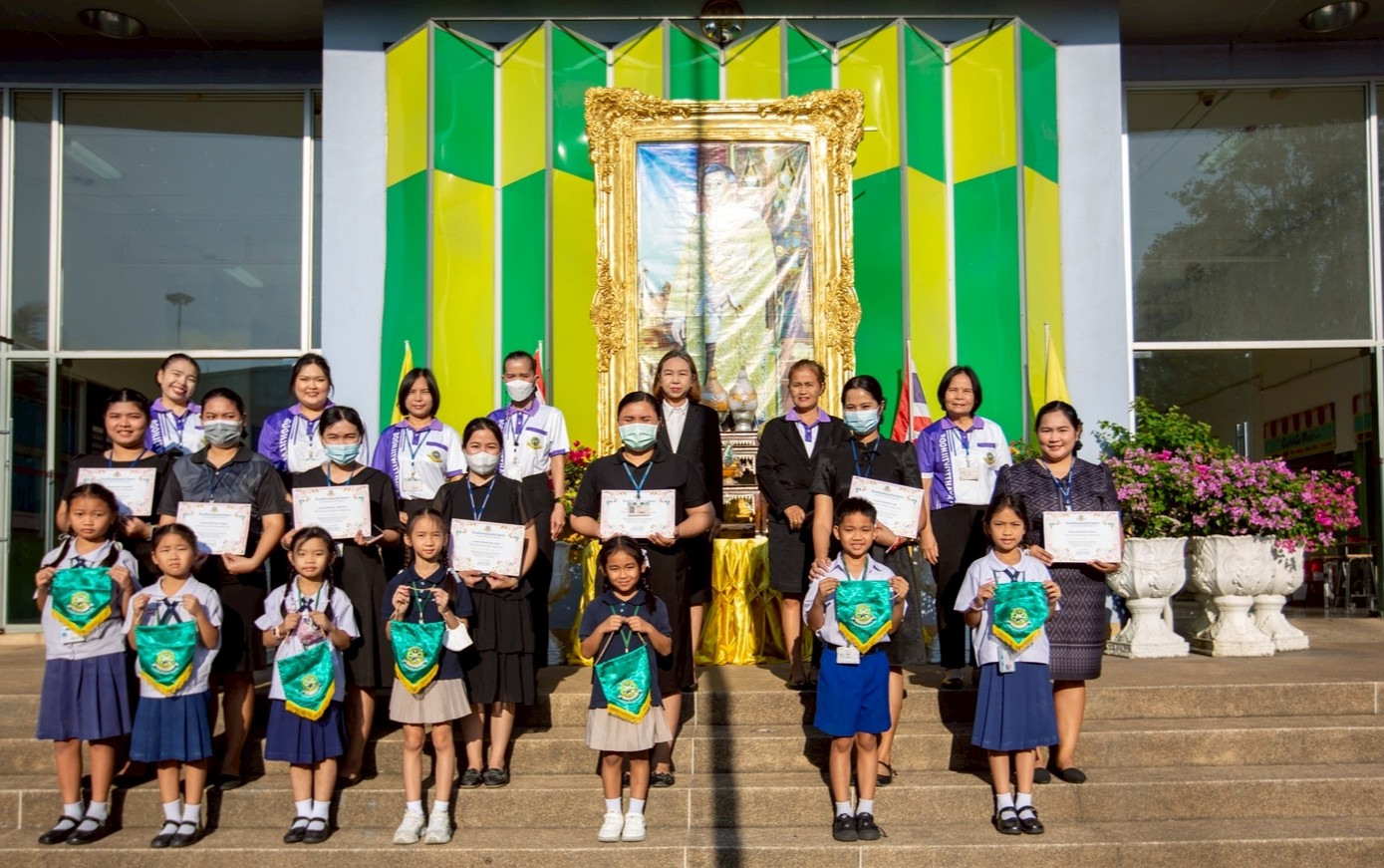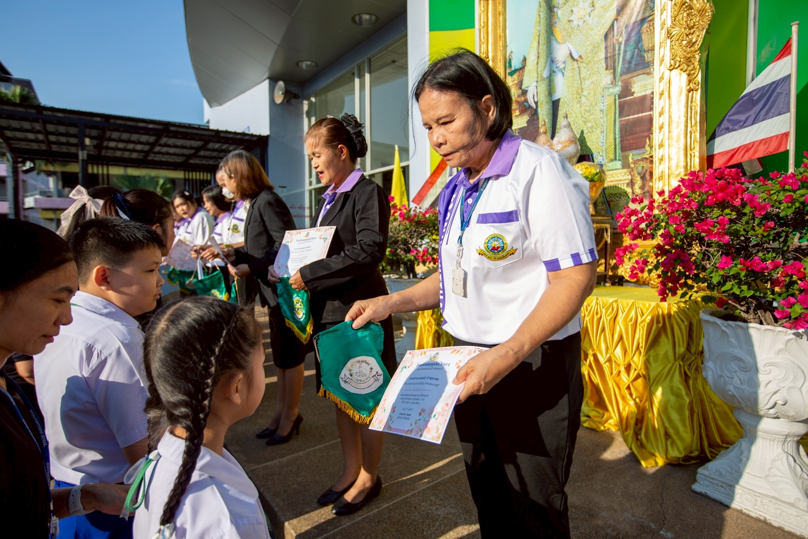 ร่วมมอบเกียรติบัตรและธงให้แก่ห้องเรียนที่ผ่านการประเมิน