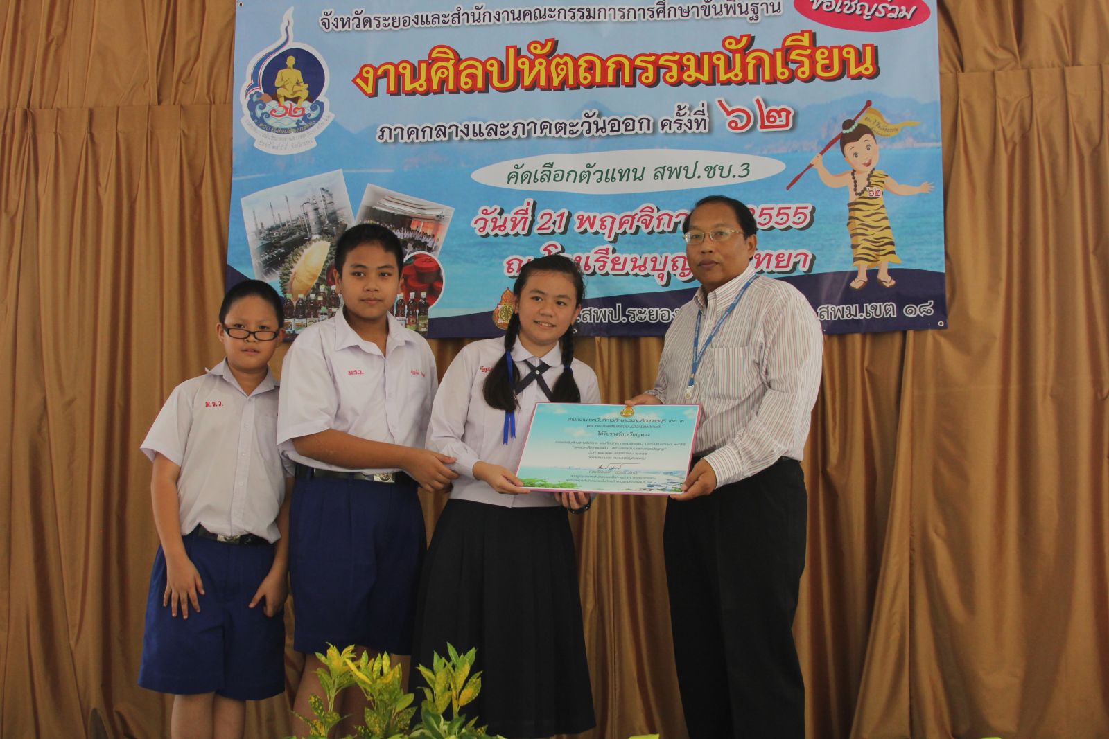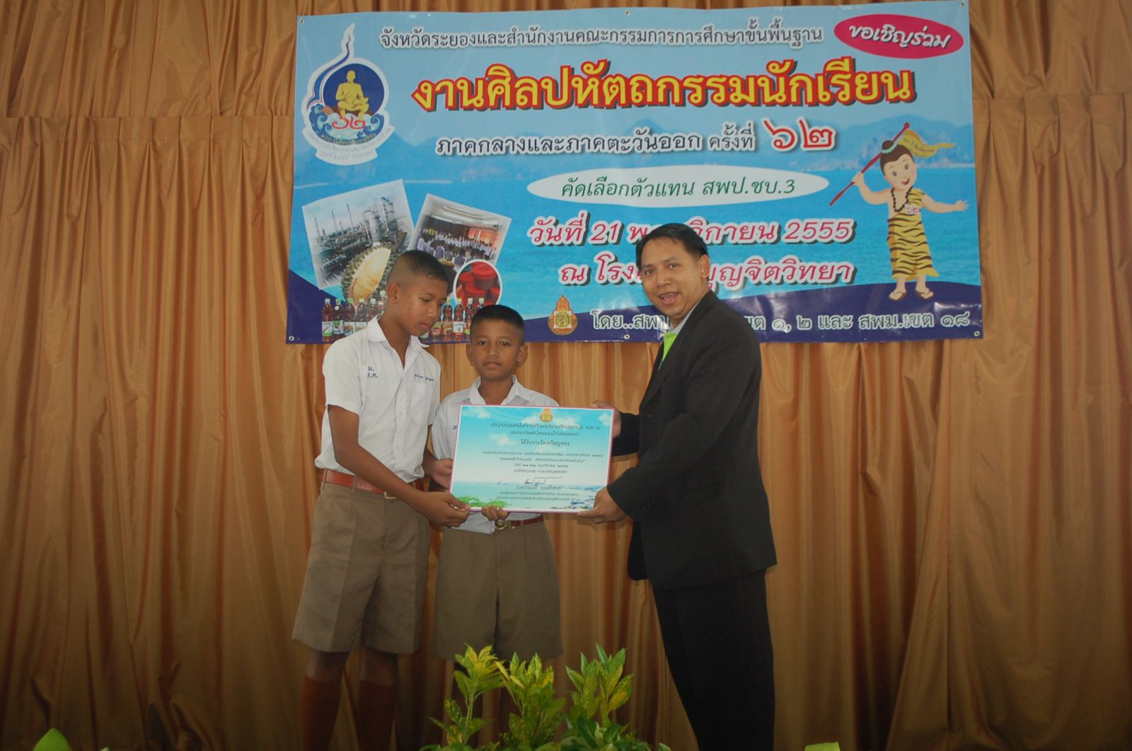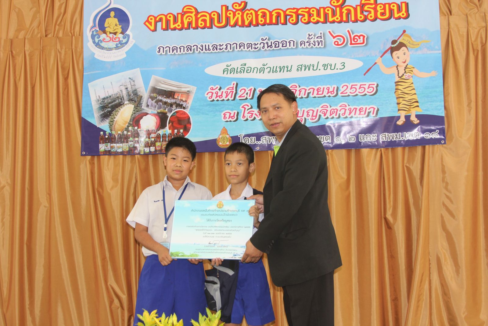 21 พ.ย. 55 โรงเรียนบุญจิตวิทยา เป็นศุนย์การแข่งขันศิลปหัตถกรรมนักเรียน กลุ่มสาระการเรียนรู้วิทยาศาสตร์ ระดับประถมศึกษา และ ม.1-3 ขยายโอกาส คัดเลือกตัวแทนของ สพป.ชบ.3 เข้าแข่งขันระดับภาคกลางและภาคตะวันออก ประจำปี 2555 โรงเรียนที่ได้เป็นตัวแทน สพป.ชบ.3 มีดังนี้