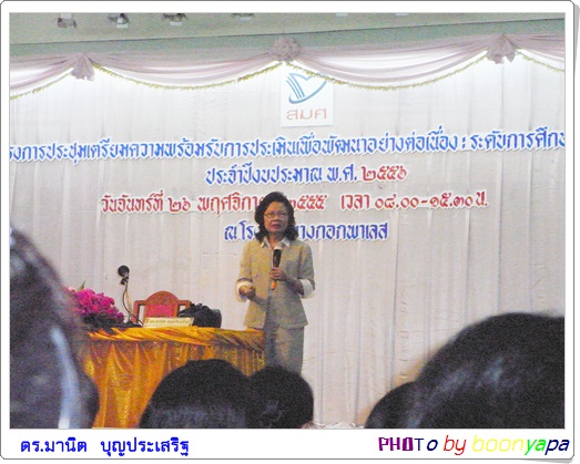เมื่อวันที่ 26 พ.ย. 55 คุณครูบุญาภา ปาลกะวงศ์ รอง ผอ.ฝ่ายบริหารงานวิชาการและ คุณครูวันทนา โกกิม รอง ผอ.ฝ่ายบริหารงบประมาณ เข้าร่วมอบรมเตรียมความพร้อมรับการประเมินเพื่อพัฒนาอย่างต่อเนื่อง ระดับการศึกษาขั้นพื้นฐาน ณ ห้องพาเลช บอลรูม โรงแรมบางกอกพาเลช กรุงเทพมหานคร...ภาพ/ข่าวโดยสนธยา