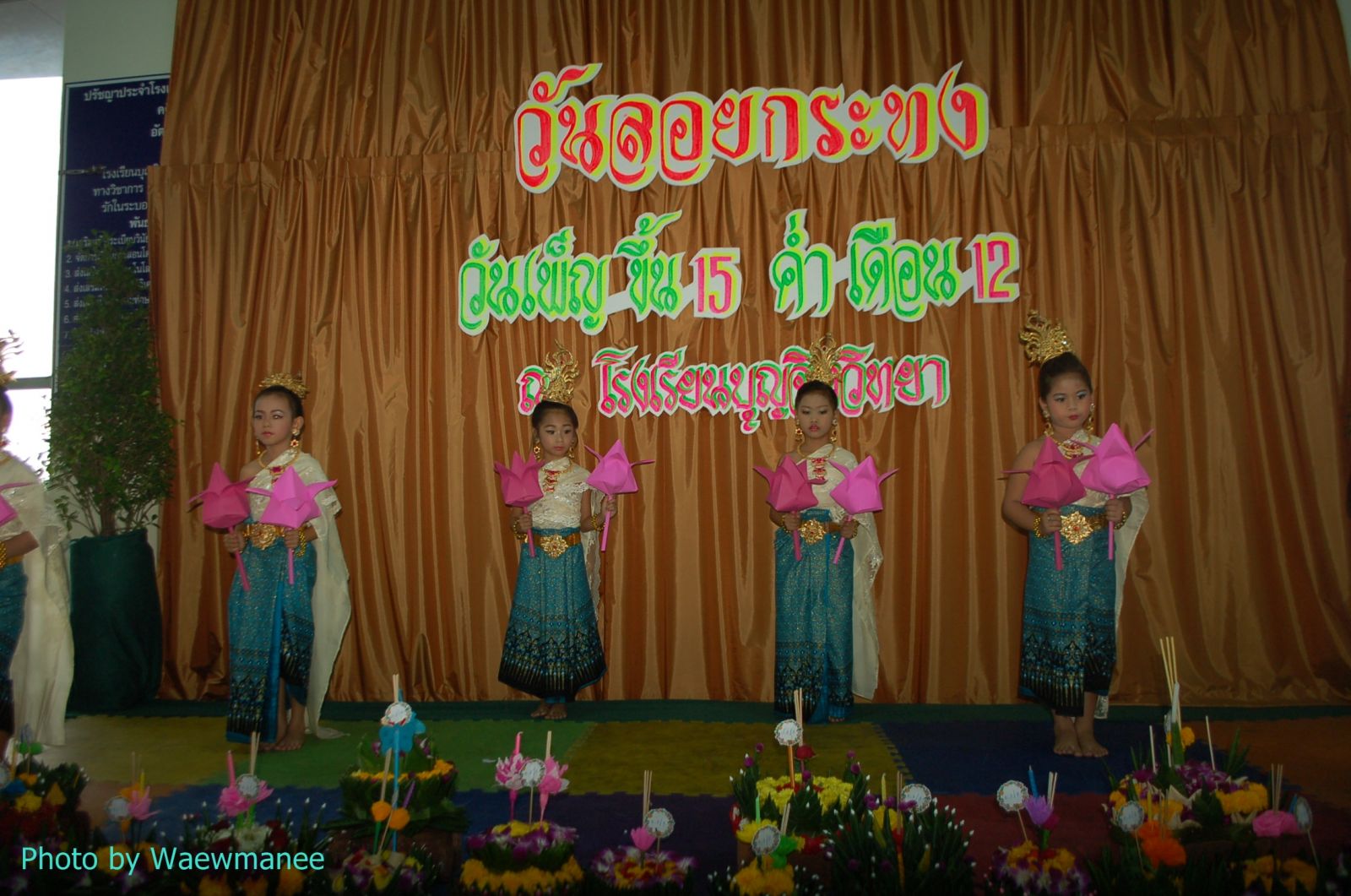เมื่อวันที่ 28 พ.ย. 55 ฝ่ายบริหารทั่วไป โดยฝ่ายงาน กิจกรรมนักเรียน คุณครูวัชรา เชษตราช (รอง ผอ.ฝ่าย) คุณครูสุรัสวรินทร์ มะโนวรณ์ (หน.ฝ่าย) และคุณครูชมพู สีสดใส ร่วมจัดกิจกรรมวันลอยกระทง โดยมีการประกวดประดิษฐ์กระทง การประกวดรำวงเพลงลอยกระทง และการประกวดหนูน้อยนพมาศ ซึ่งเป็นที่สนุกสนาน ทั้งนักเรียน คุณครู และผู้ปกครอง อีกทั้งเป็นการสืบทอดประเพณีที่ดีงามของไทยอีกด้วย... ภาพ/ข่าวโดยสนธยา