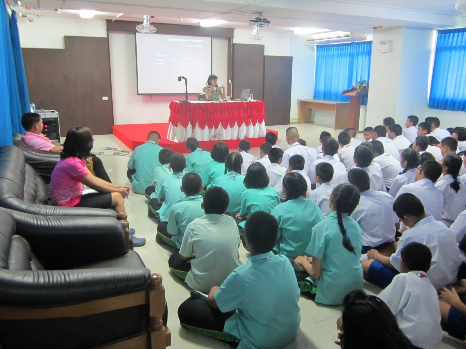 เมื่อวันที่ 28 พ.ค. 56 ฝ่ายวิชาการ จัดกิจกรรมบริการงานวิชาการ แก่นักเรยนในเรื่องเทคโนโลยีด้านวัสดุศาสตร์ โดยได้รับความอนุเคราะ์ห์จาก ดร.สุจารณี คชวัฒน์ อาจารย์ประจำภาควิชาวัสดุศาสตร์ จุฬาลงกรณ์มหาวิทยาลัย เป็นวิทยากร...ภาพ/ข่าวโดยสนธยา