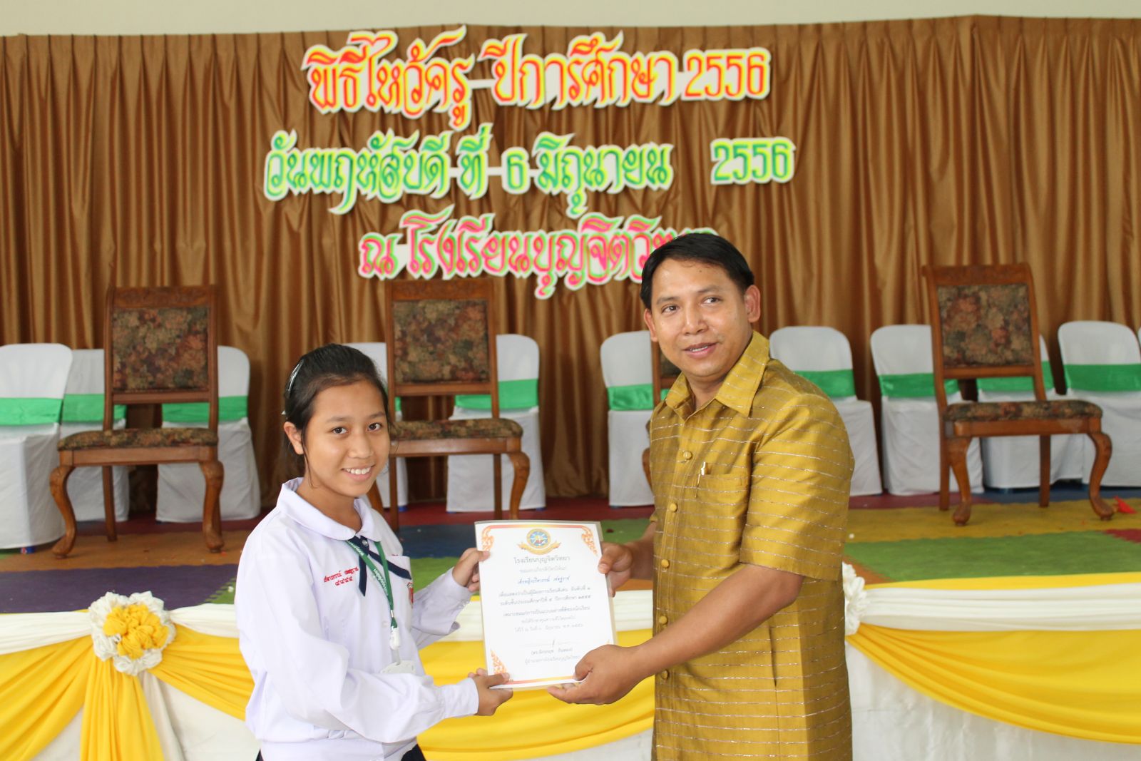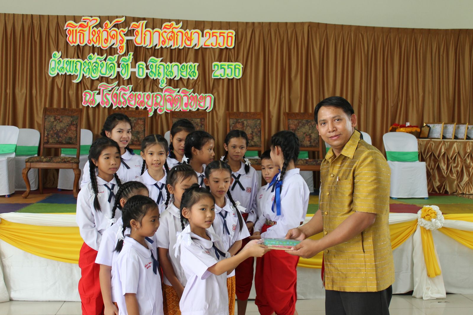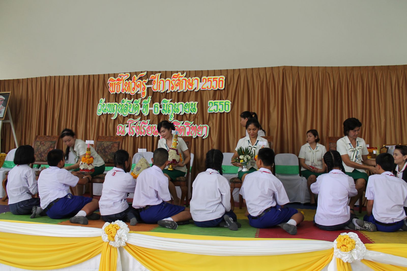เมื่อวันที่ 6 มิ.ย. 56 โณงเรียนจัดให้มีการไหว้ครูประจำีการศึกษา 2556 ในการนี้มีศิษย์ปัจจุบัน และศิษย์เก่าร่วมกิจกรรมเป็นจำนวนมาก อีกทั้งได้มีการมอบรางวัลเชิดชูเกียรติแก่คณะครูในด้านต่างๆ...ภาพ/ข่าวโดยสนธยา