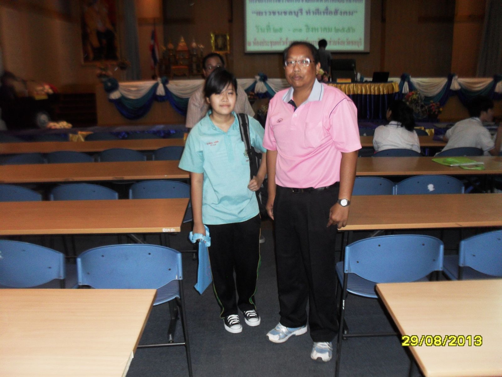 29-31 ส.ค. 56 ด.ญ.พิมนิภา มาณีคำ นักเรียนชั้น ม.๓/๑ สภากรรมการสมัชชาเด็กและเยาวชน อ.ศรีราชา เข้าร่วมกิจกรรม โครงการสร้างแกนนำต้านภัยยาเสพติด เยาวชนชลบุรี ทำดีเพื่อสังคม ณ อบจ.ชลบุรี และ โรงเรียนนายร้อย จปร. จ.นครนายก...ภาพ/ข่าวโดยสนธยา