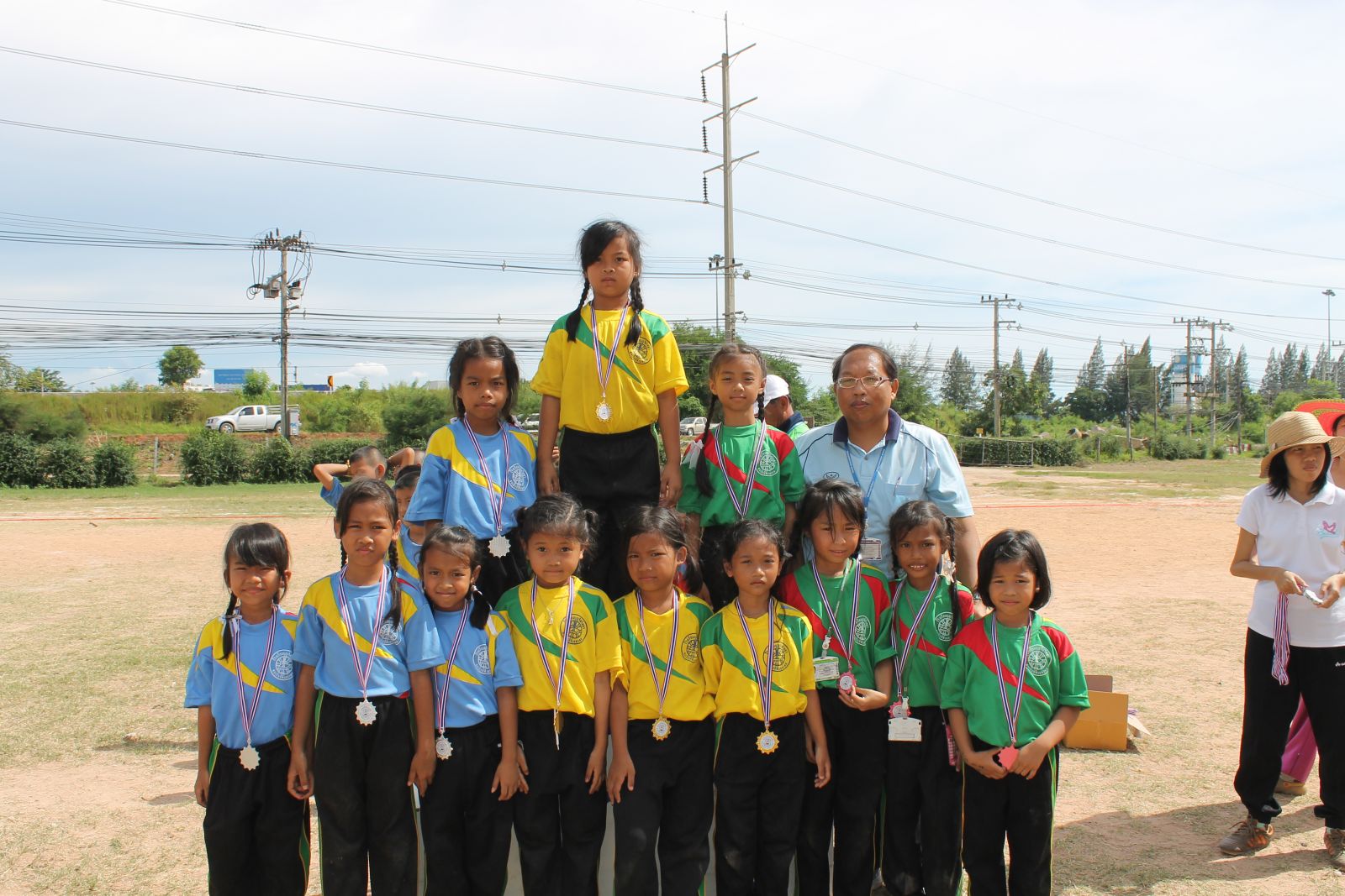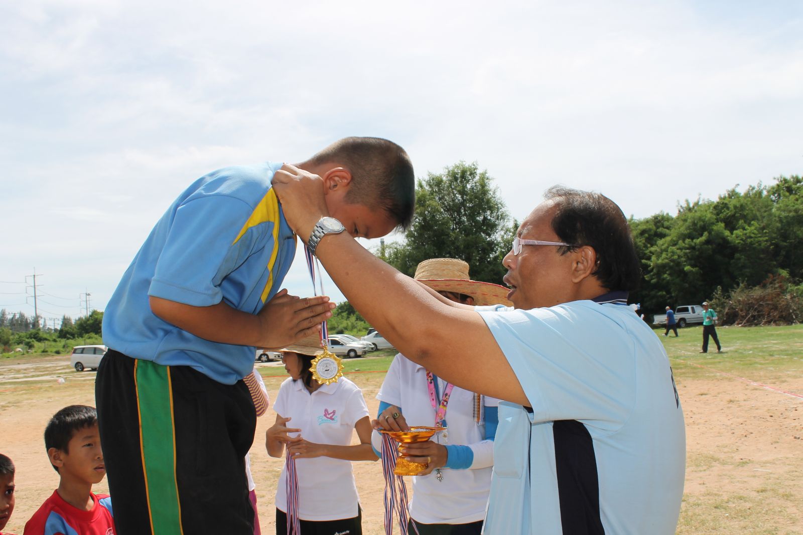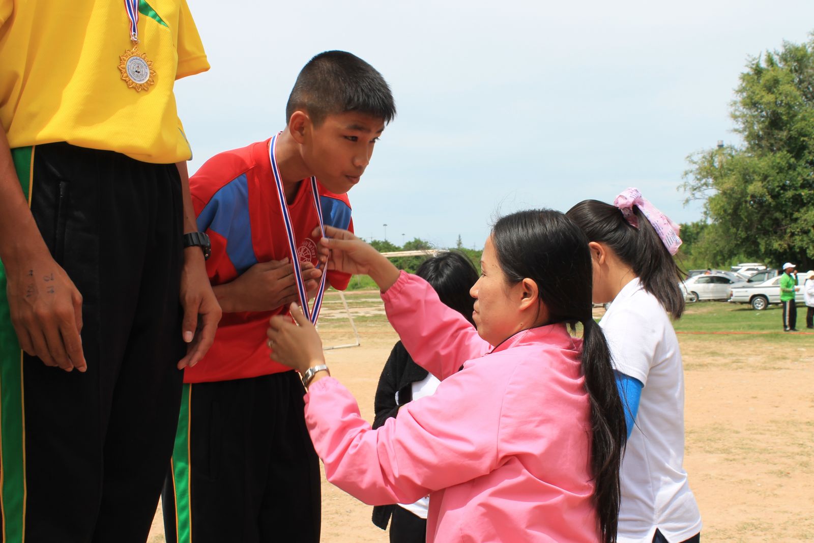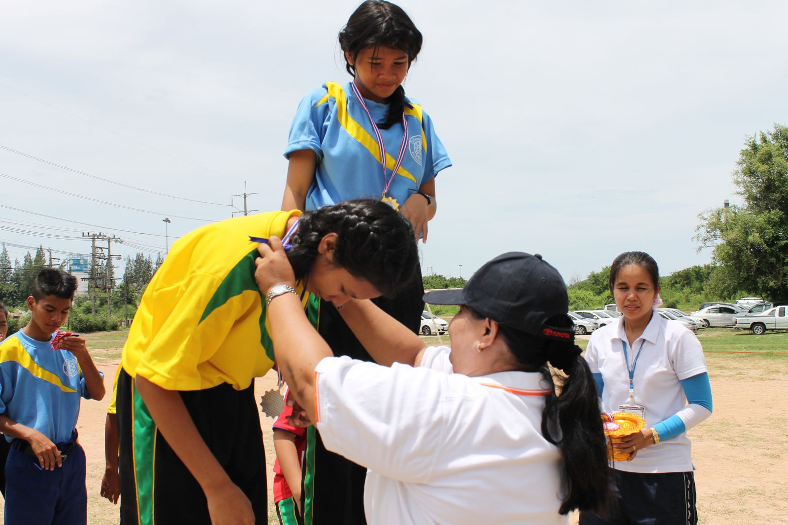 พิธีการมอบเหรียญรางวัล กร๊ฑา การแข่งขันกรีฑานักเรียน เขียว เหลือง เกมส์ ประจำปี 2556