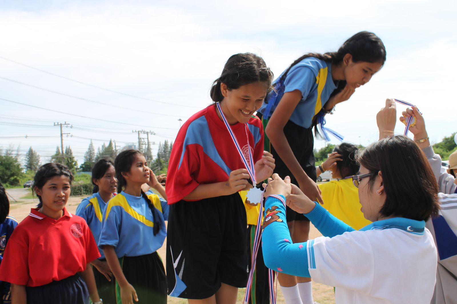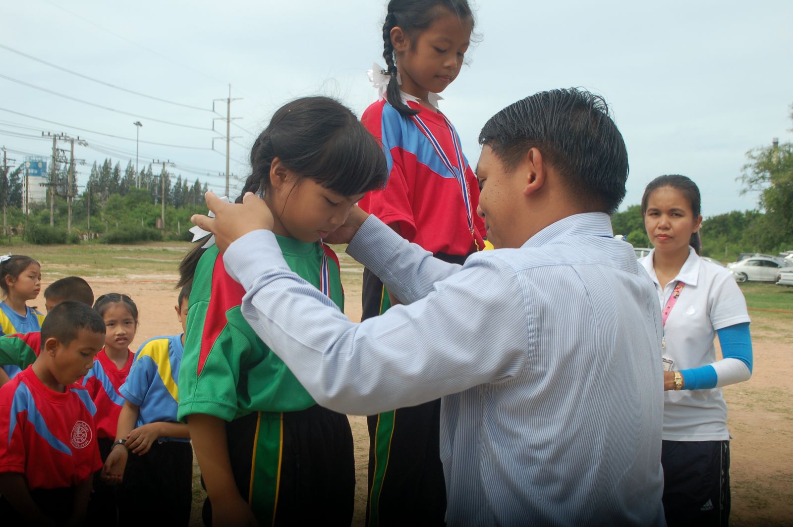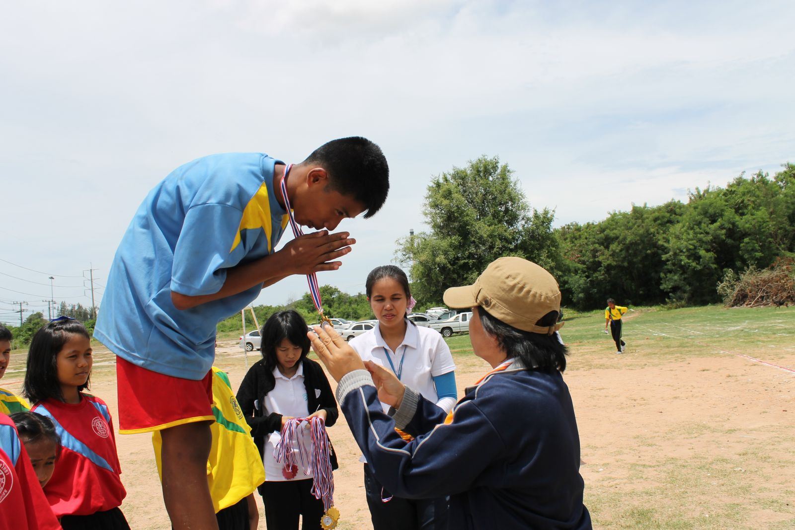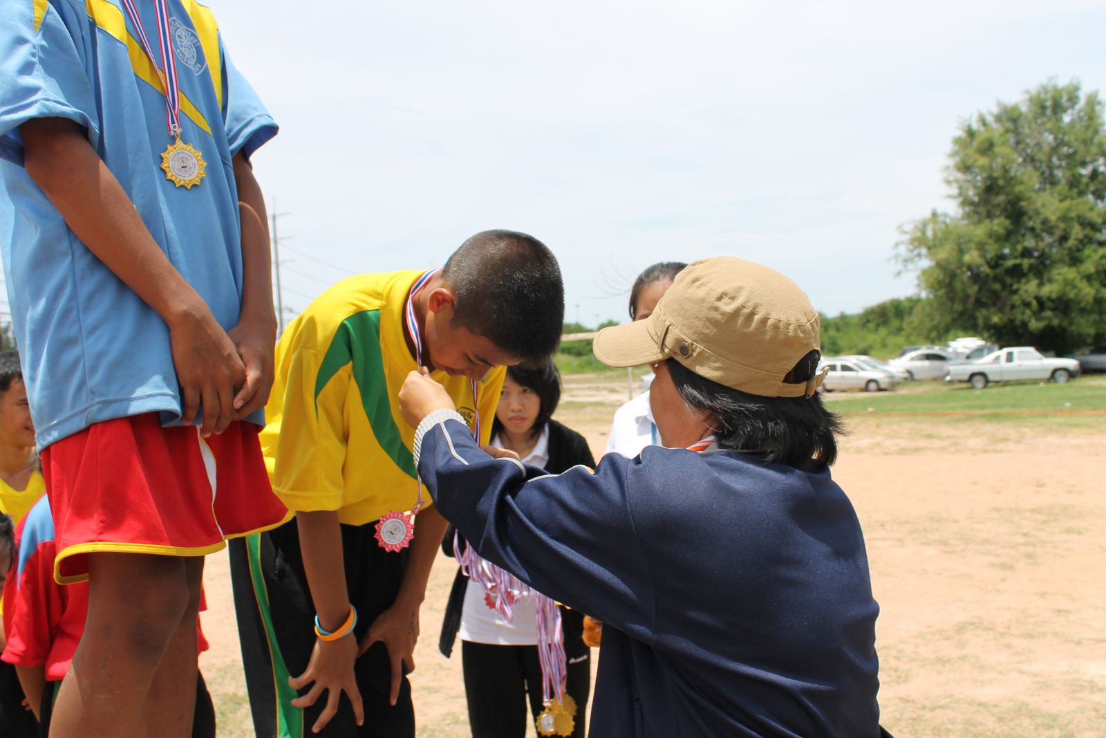 พิธีการมอบเหรียญรางวัล กร๊ฑา การแข่งขันกรีฑานักเรียน เขียว เหลือง เกมส์ ประจำปี 2556