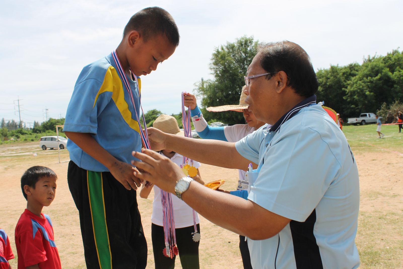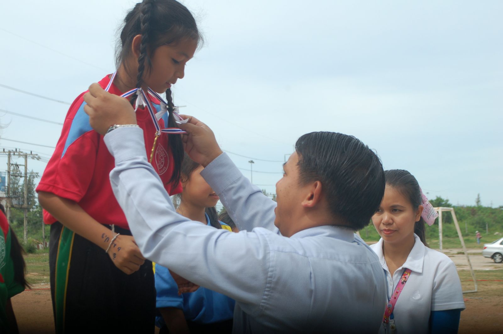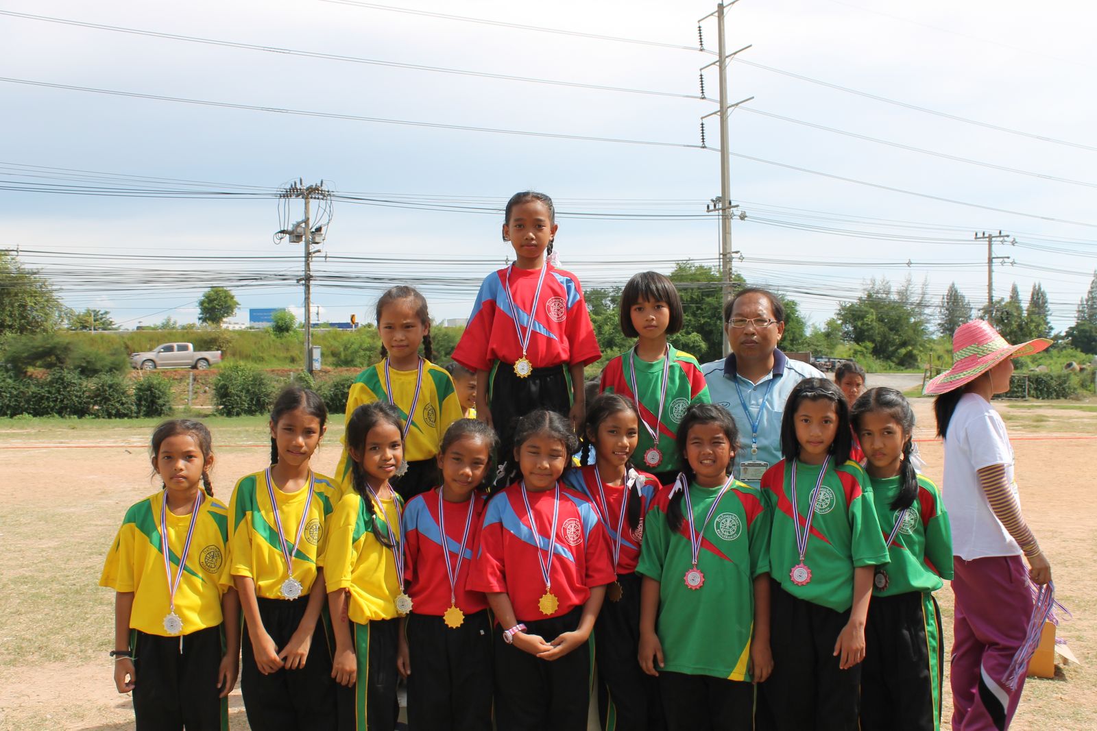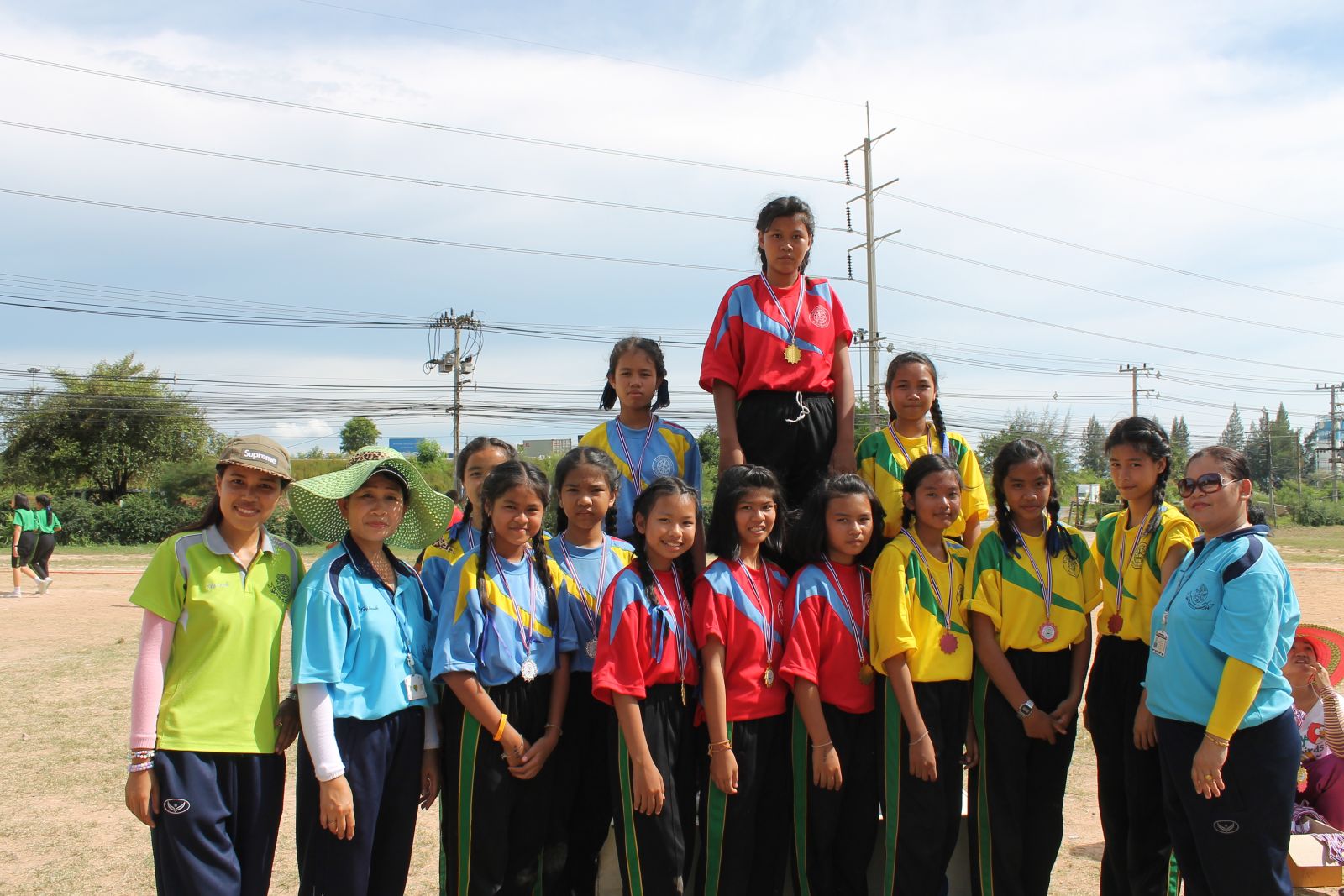 พิธีการมอบเหรียญรางวัล กร๊ฑา การแข่งขันกรีฑานักเรียน เขียว เหลือง เกมส์ ประจำปี 2556