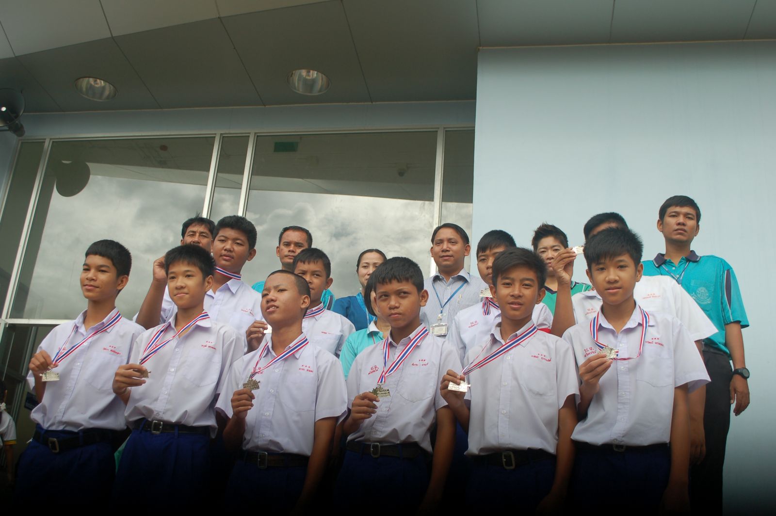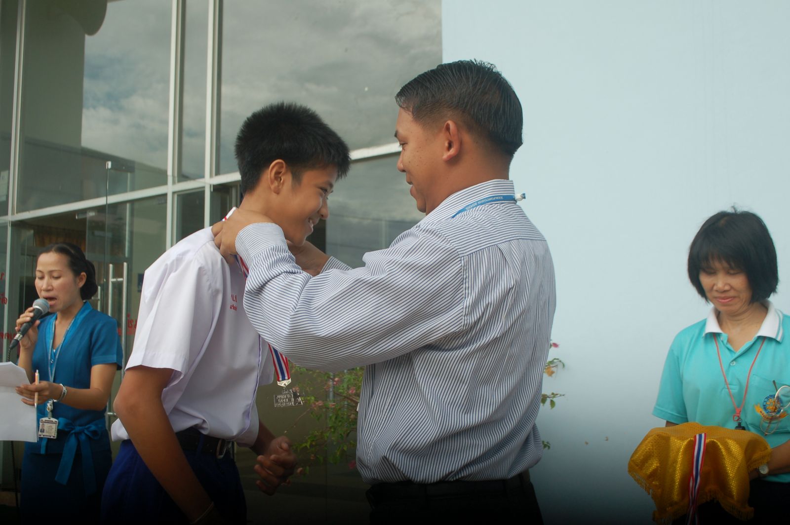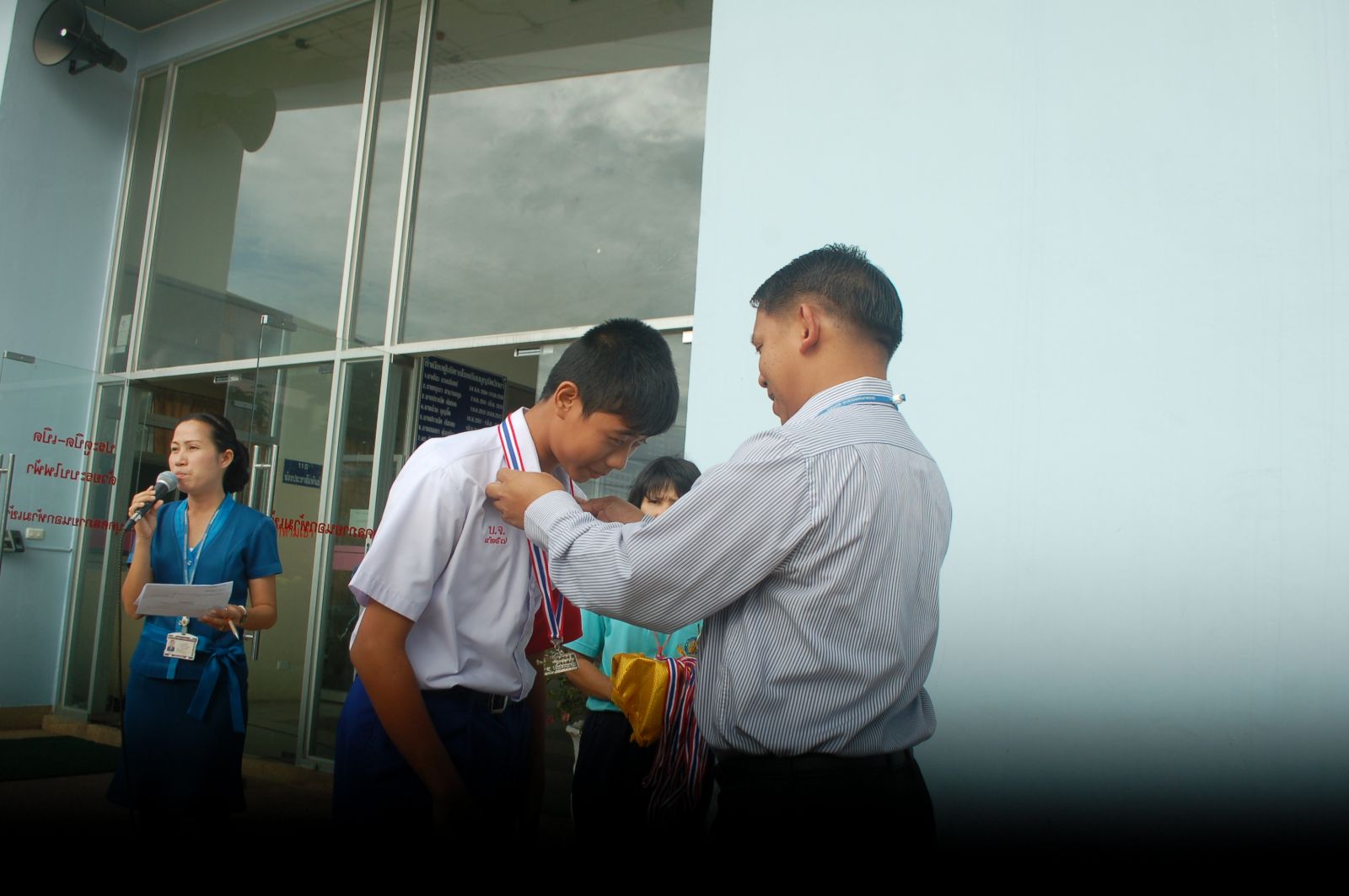 23 ก.ย. 56 ดร.จักรกฤช กันทอง ผู้อำนวยการ มอบเหรียญรางวัลให้นักกีฬากระโดดเชือก