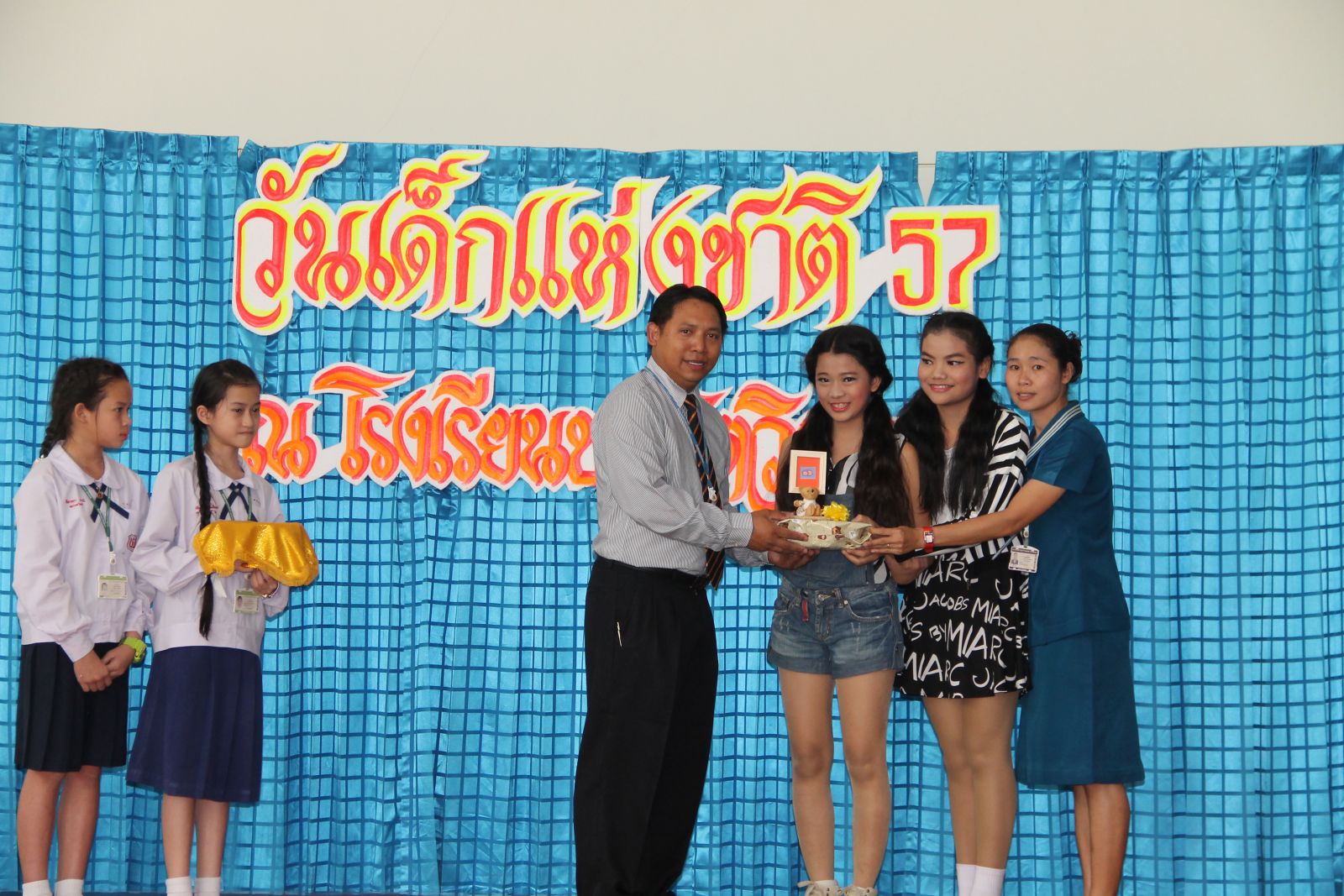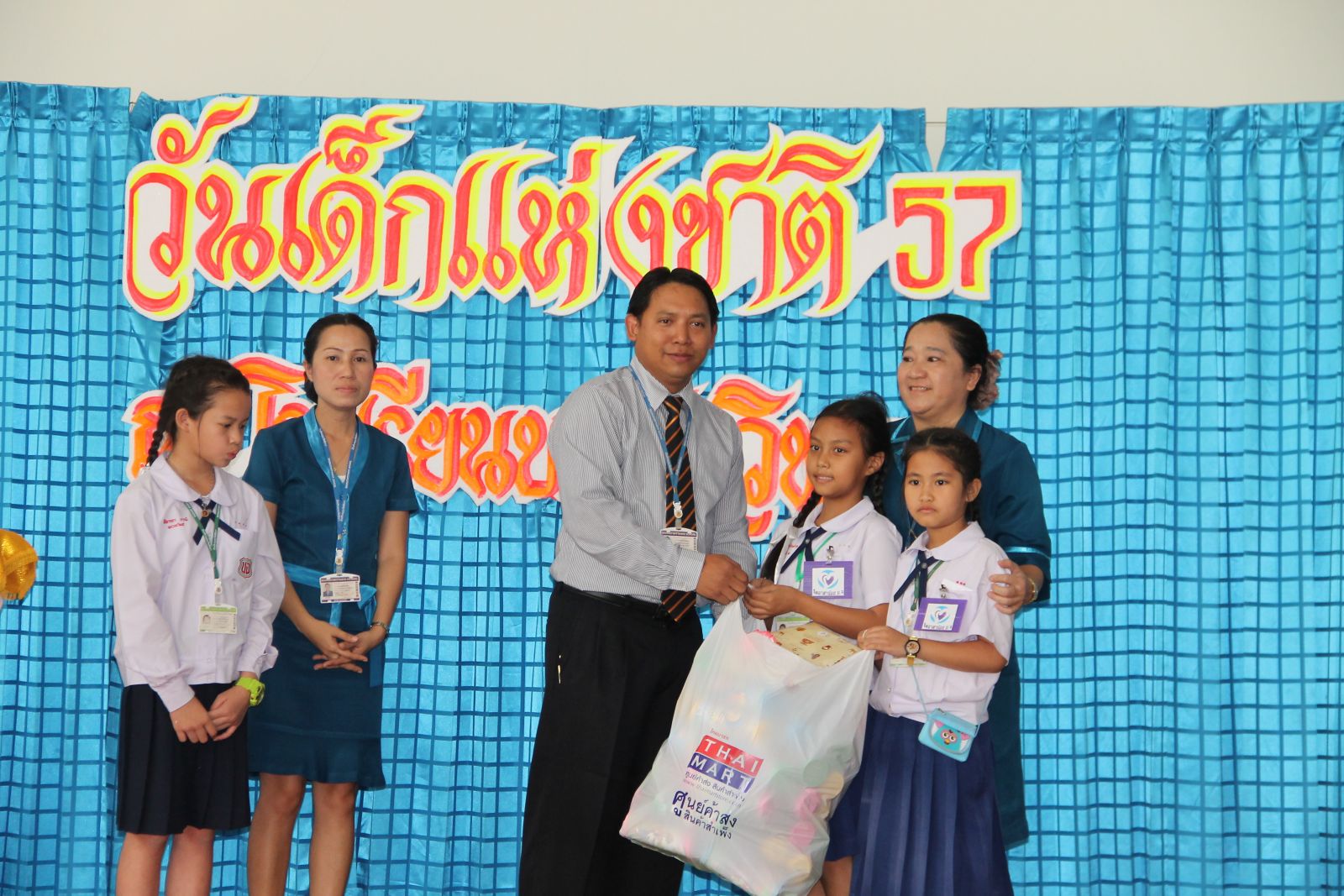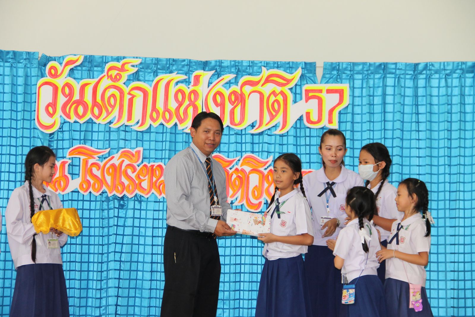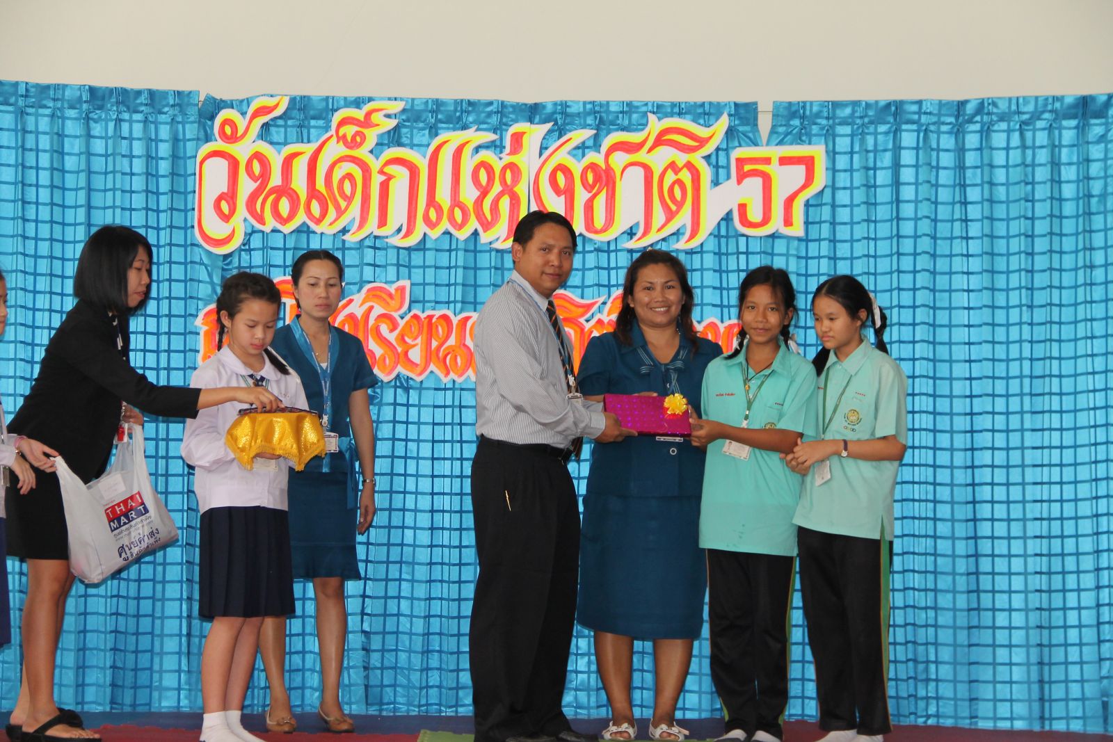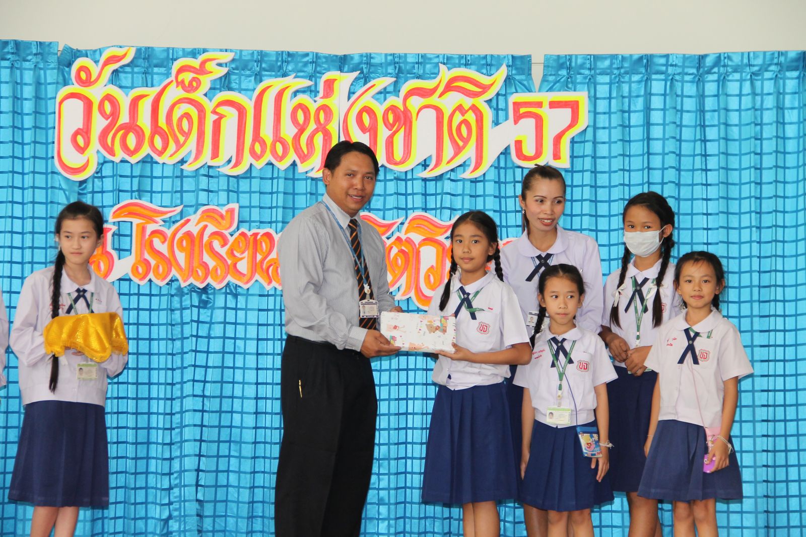 10 ม.ค. 57 ครูรวินันท์ ด้วงกูล ผู้รับผิดชอบกิจกรรมวันเด็กแห่งชาติ ดำเนินการจัดกิจกรรมการจัดเลี้ยงอาหารแก่นักเรียน กิจกรรมนันทนาการ และมอบของขวัญแก่เด็กๆ นักเรียนทุกคน โดยมี ดร.จักรกฤช กันทอง ผู้อำนวยการ เป็นประธานเปิดงาน