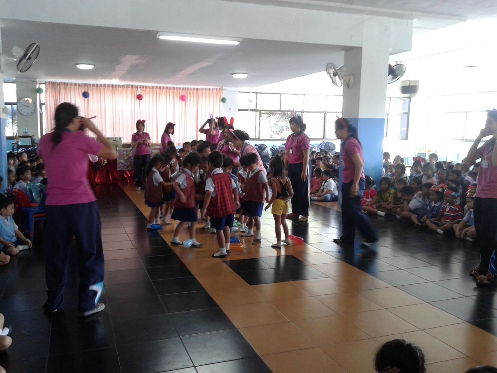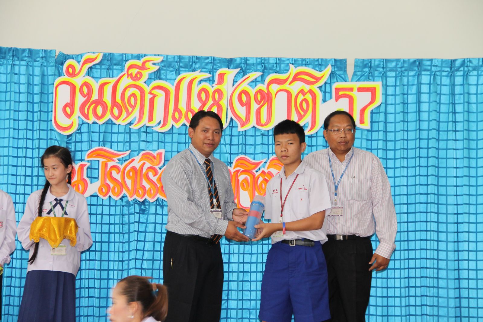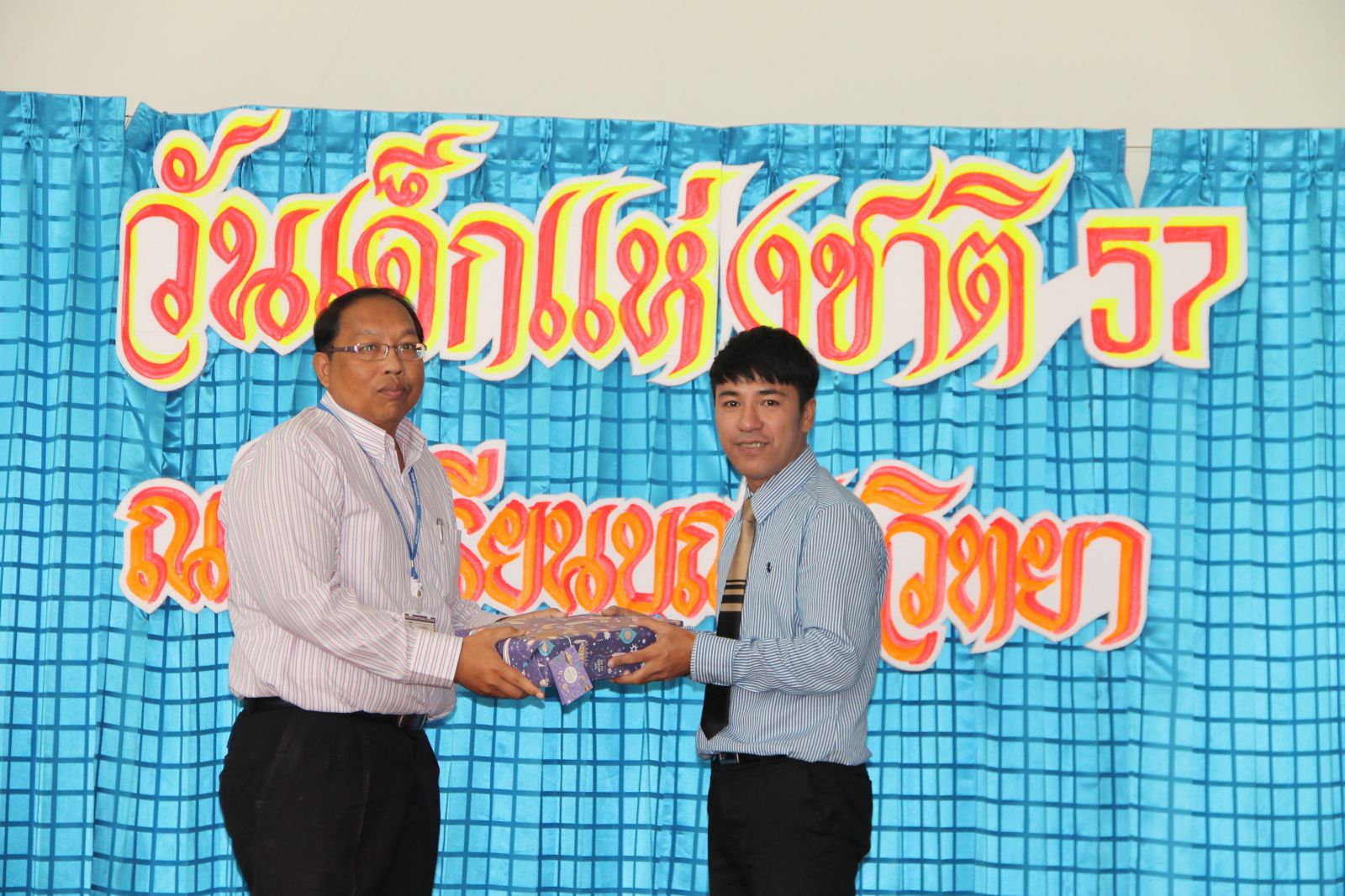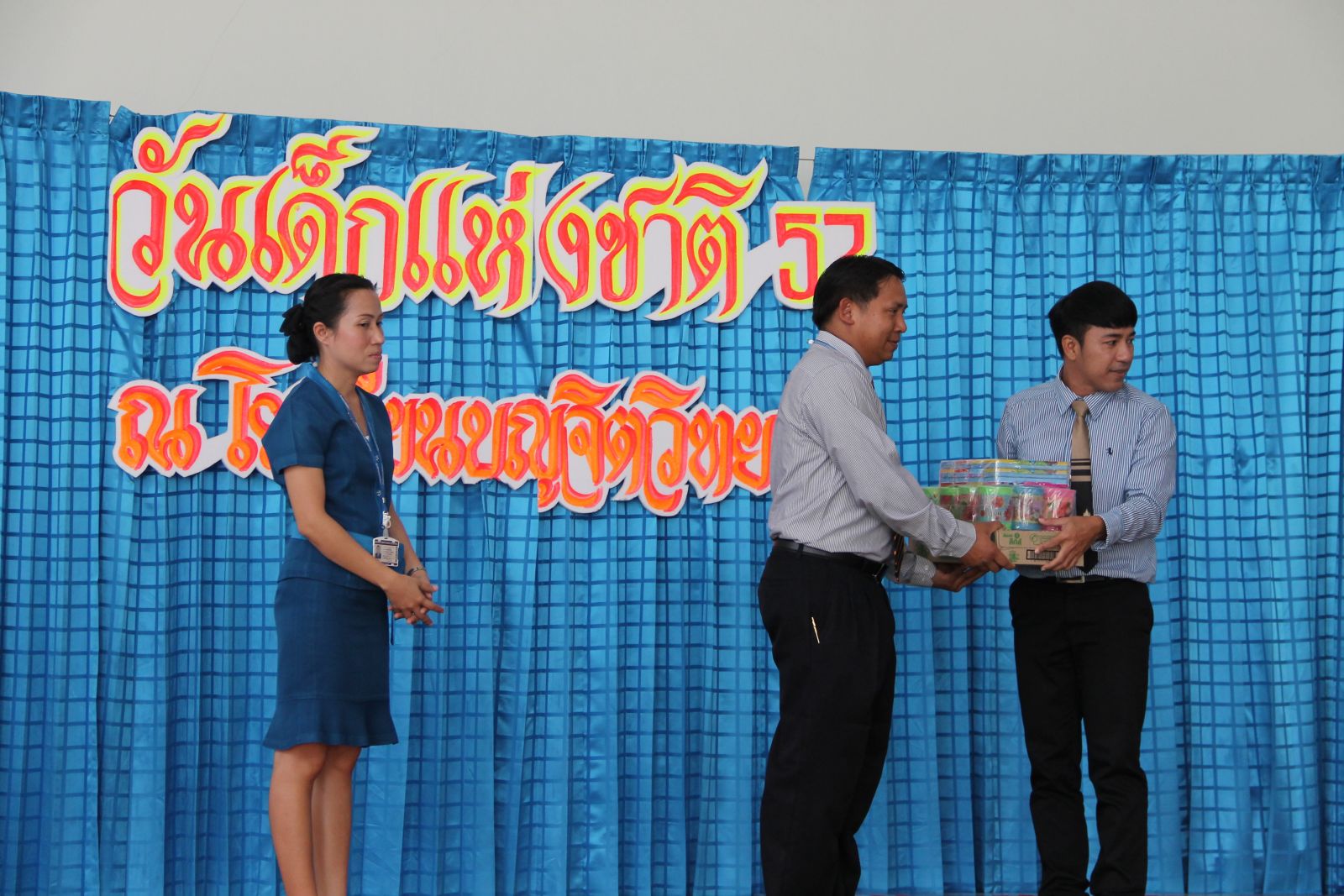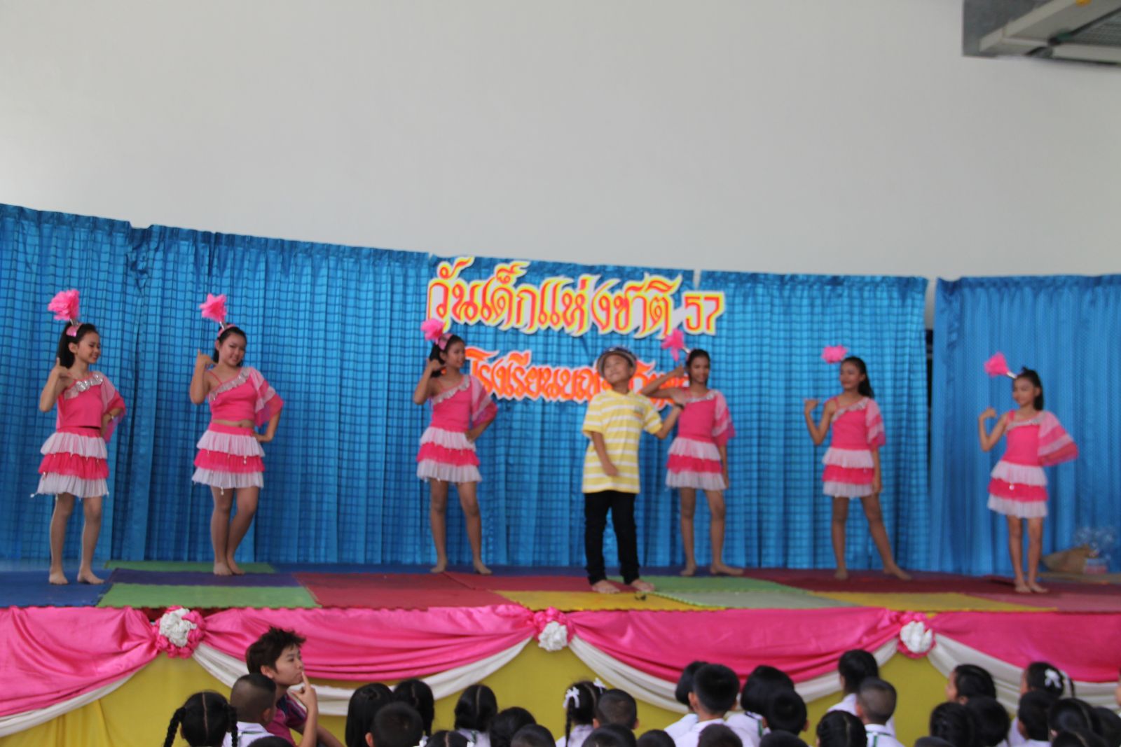 10 ม.ค. 57 ครูรวินันท์ ด้วงกูล ผู้รับผิดชอบกิจกรรมวันเด็กแห่งชาติ ดำเนินการจัดกิจกรรมการจัดเลี้ยงอาหารแก่นักเรียน กิจกรรมนันทนาการ และมอบของขวัญแก่เด็กๆ นักเรียนทุกคน โดยมี ดร.จักรกฤช กันทอง ผู้อำนวยการ เป็นประธานเปิดงาน