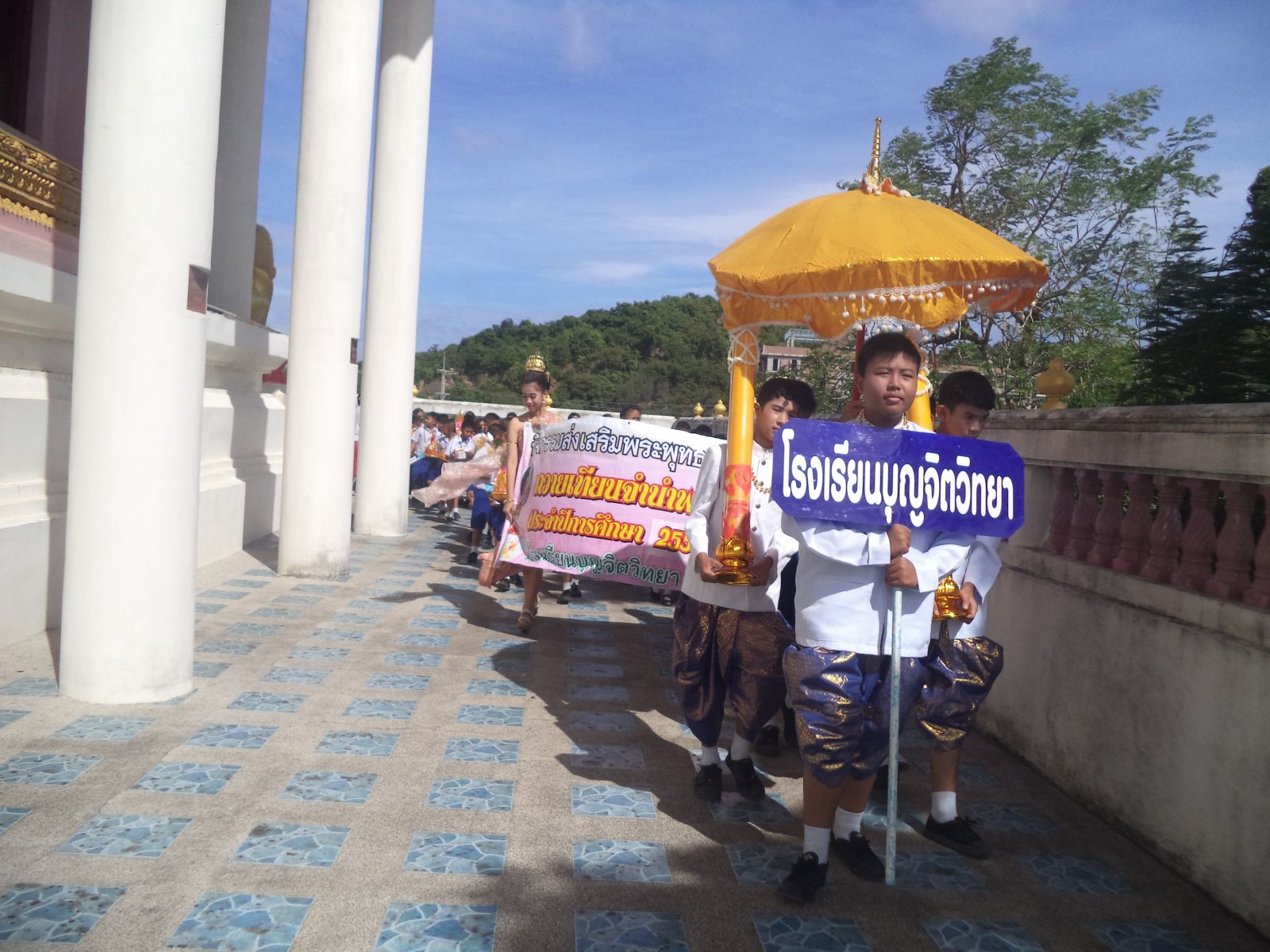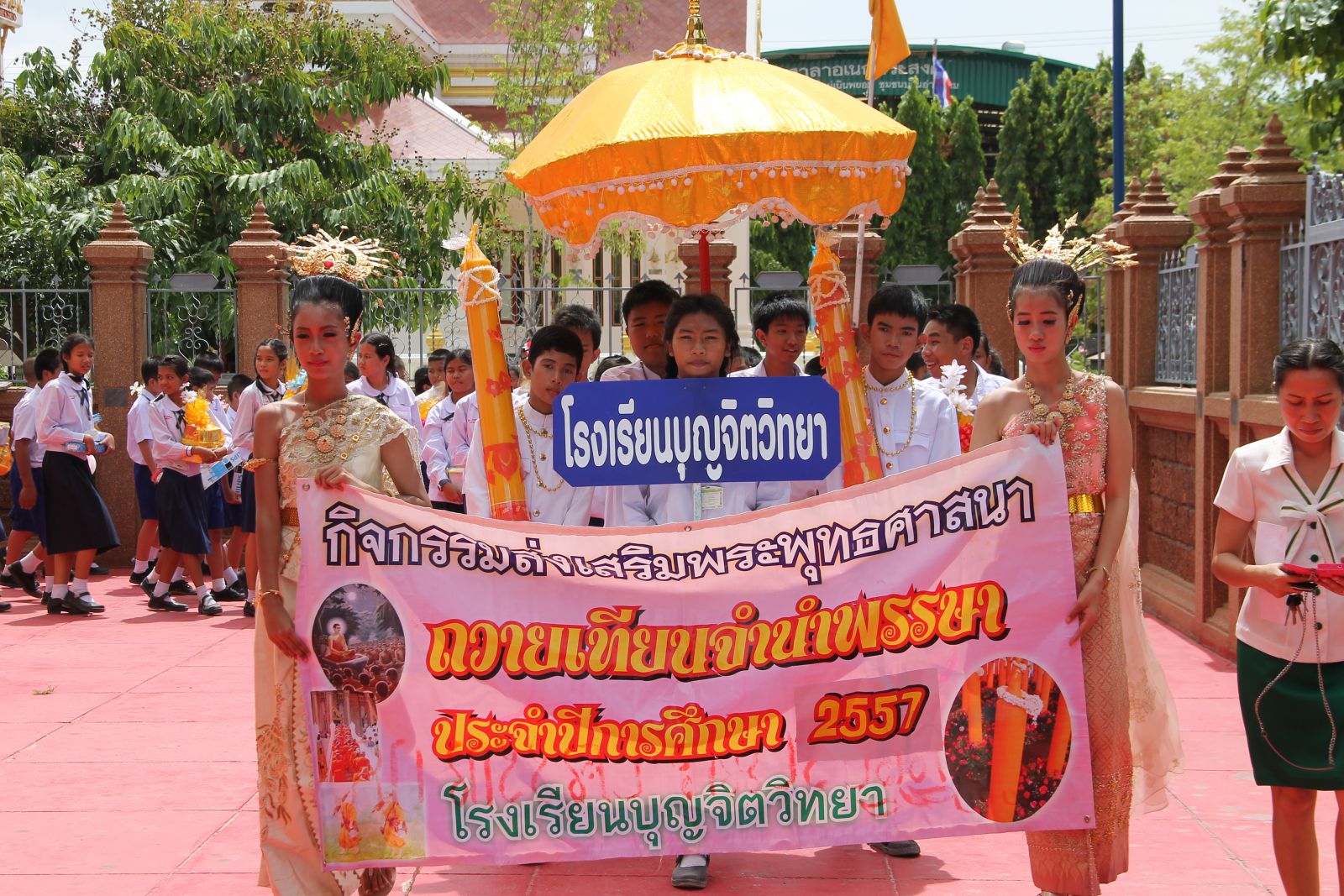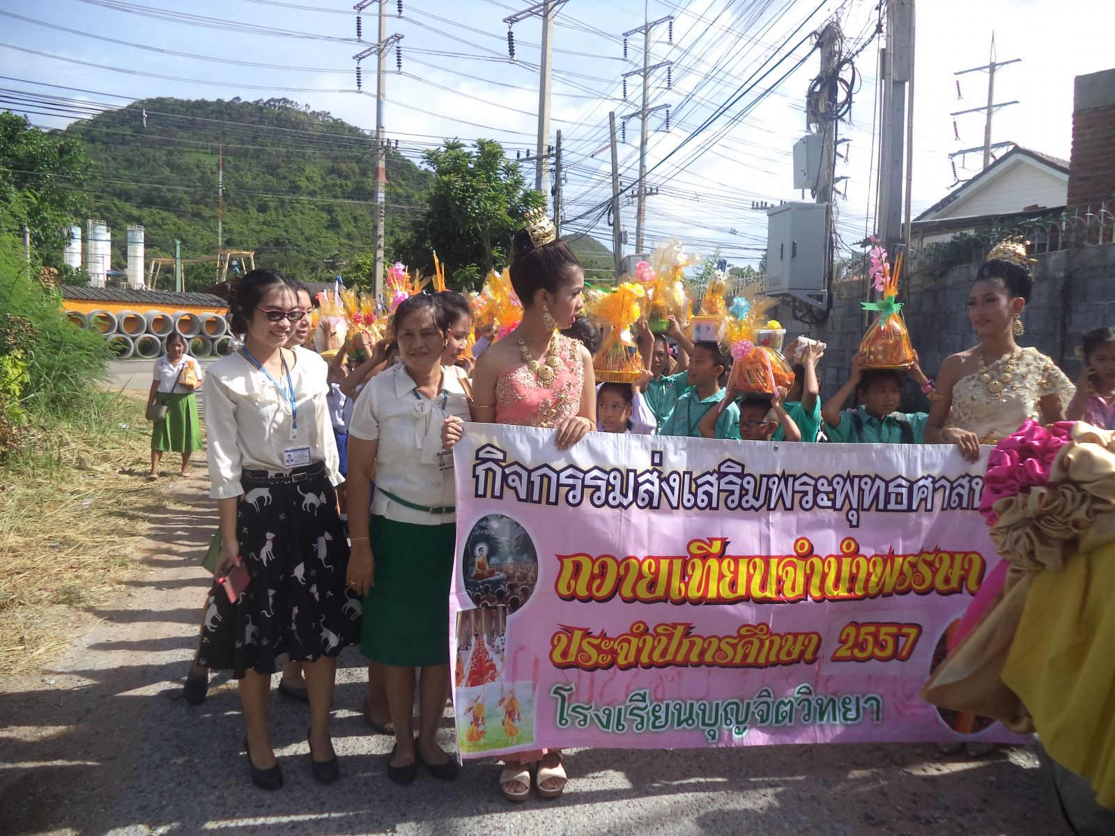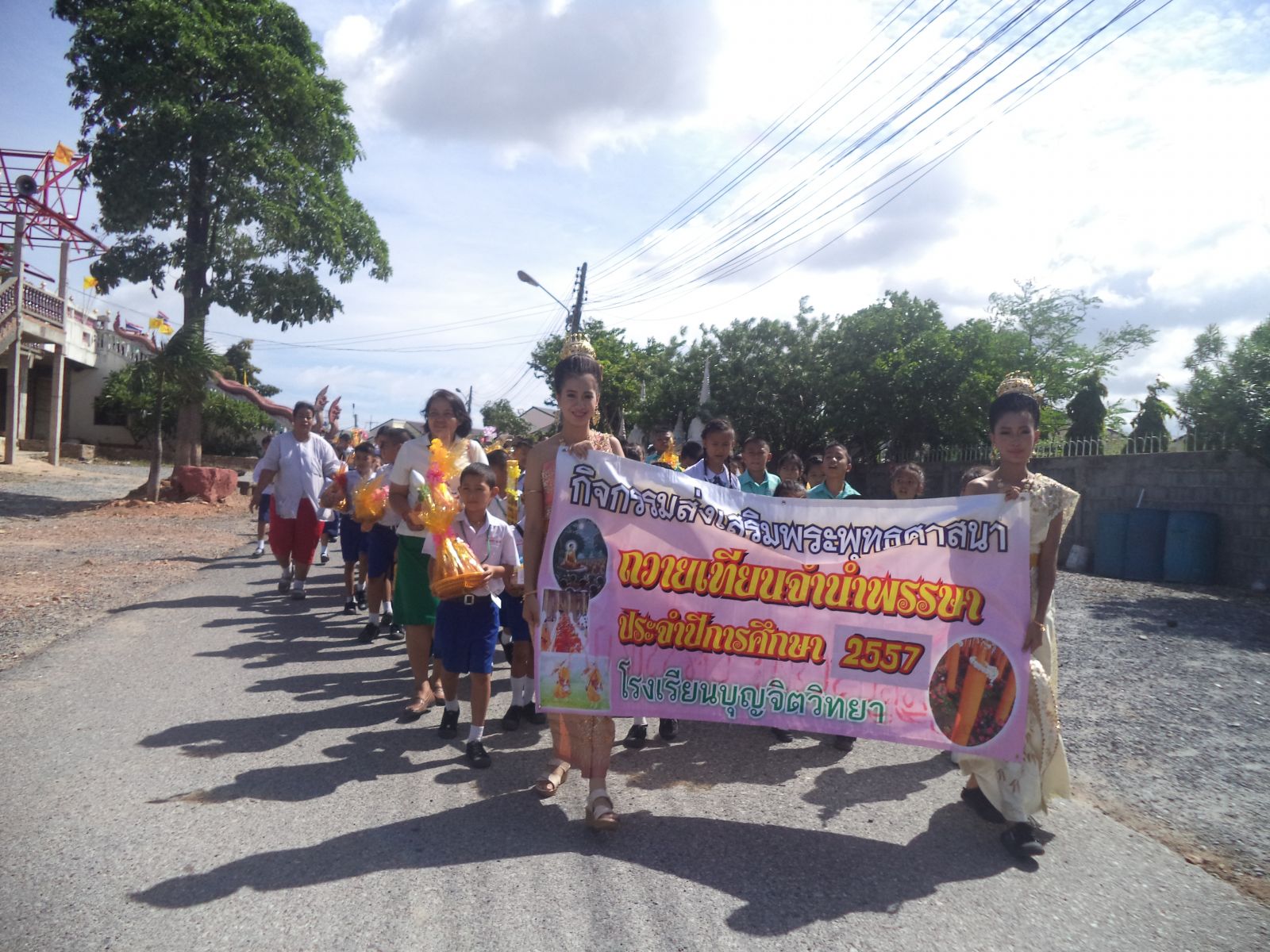 จัดกิจกรรมส่งเสริมพระพุทธศาสนา ถวายเทียนจำนำพรรษา ปีการศึกษา 2557
