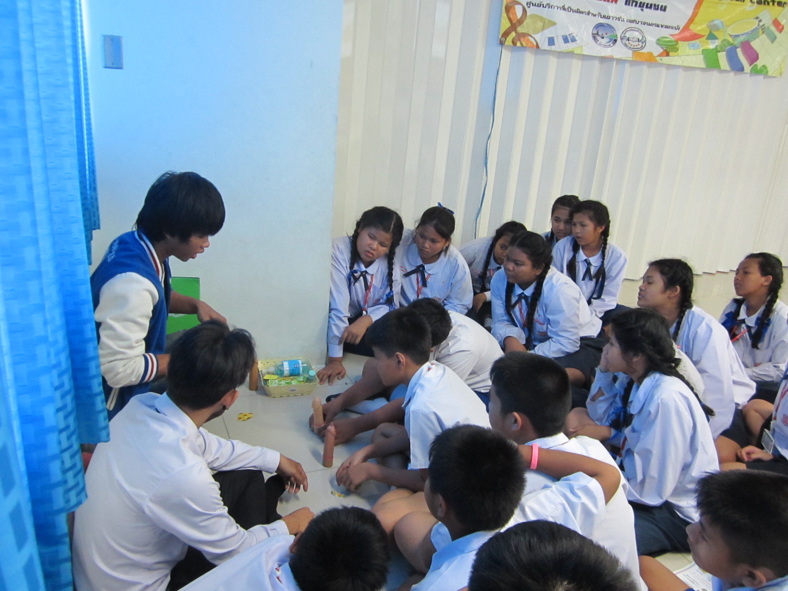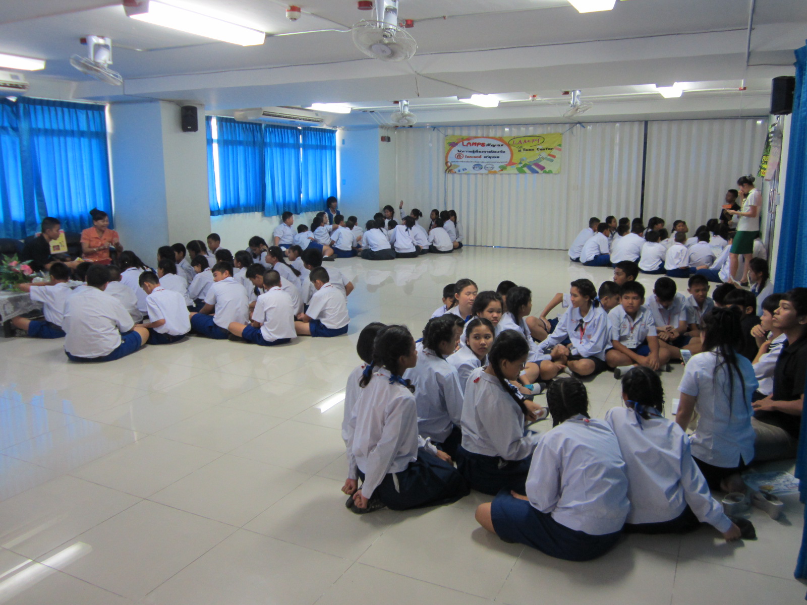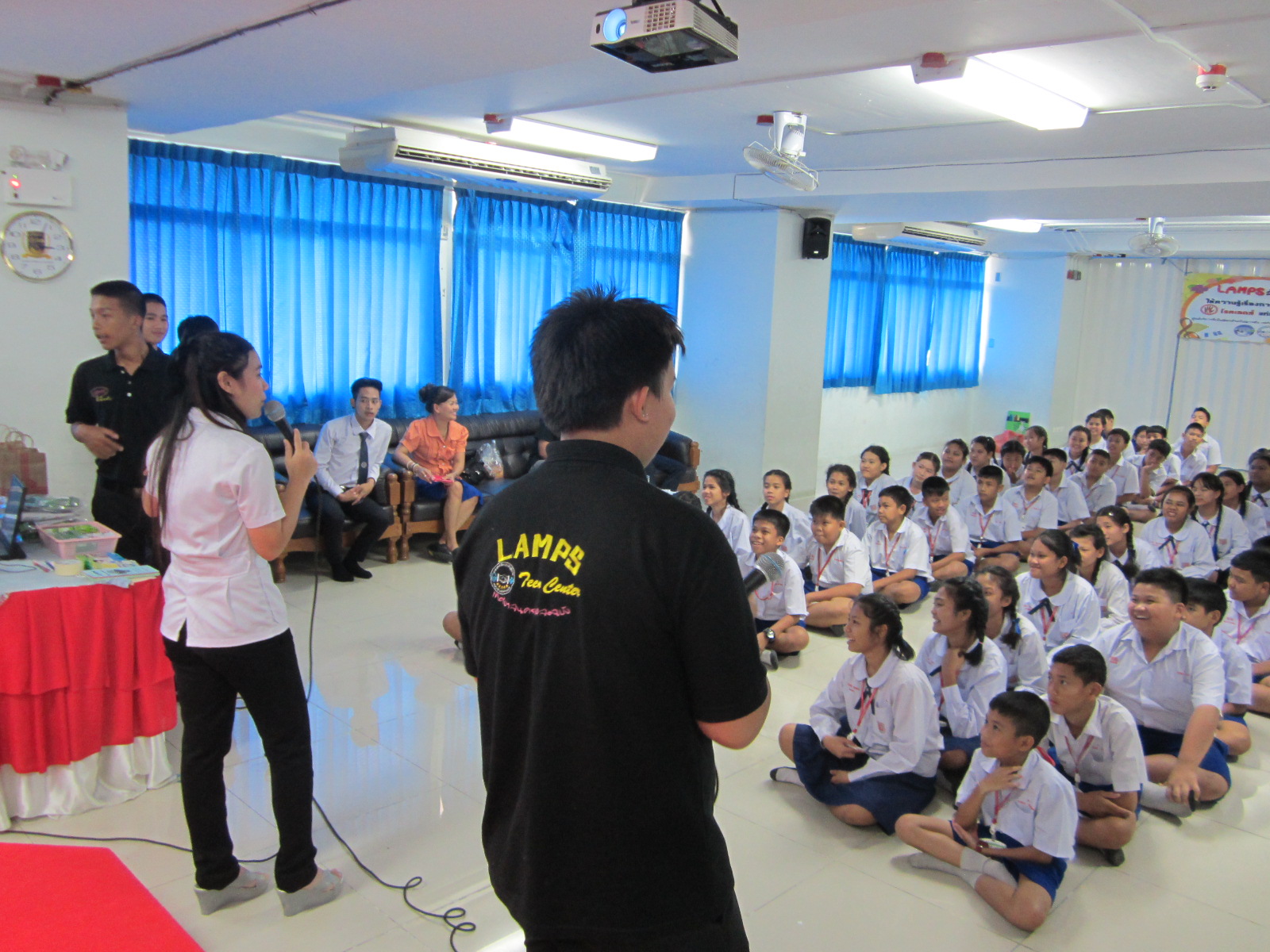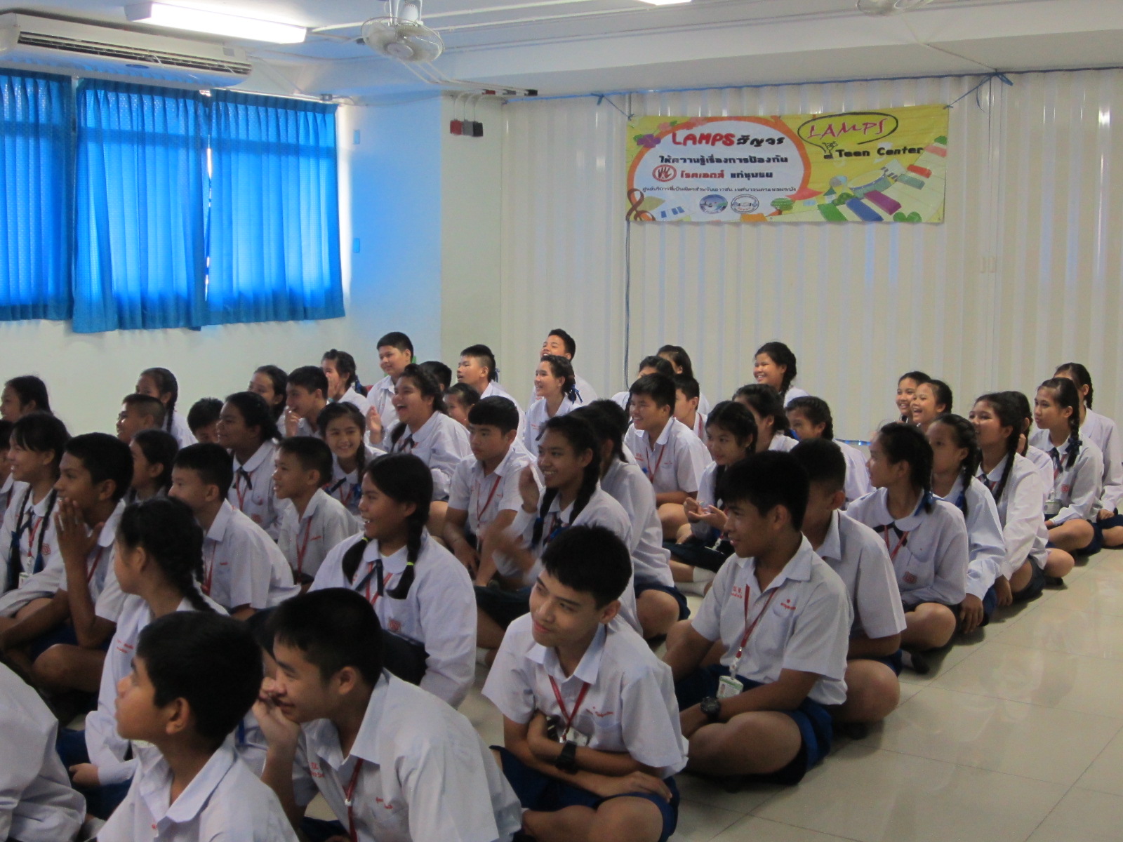 1 สิงหาคม 2557 LAMPS Teen Center สัญจรให้ความรู้โรคเอดส์ และโรคติดต่อทางเพศสัมพันธ์ ที่โรงเรียนบุญจิตวิทยา ณ ห้องประชุมชั้น 2 อาคาร 50 ปี