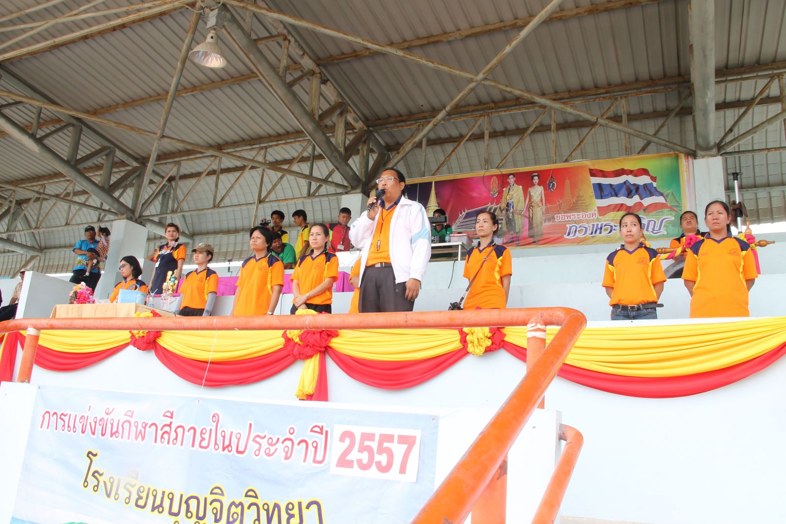 5 กันยายน 2557 โรงเรียนบุญจิตวิทยาจัดกิจกรรมการแข่งขันกีฬาสี เขียวเหลืองเกมส์ ปีการศึกษา 2557 ณ สนามกีฬาเทศบาลนครแหลมฉบัง โดยมี ดร.จักรกฤช กันทอง ผู้อำนวยการ เป็นประธานในพิธี นายสนธยา ตุ๋นเจริญ รองผู้อำนวยการเป็นผู้กล่าวรายงาน นายวีระศักดิ์ เกิดวิริยะสกุล นักกีฬาอาวุโส นำกล่าวคำปฏิญาณตน ตัวแทนนักกีฬานักเรียน ดช.ปฐมพร สัตยะวงค์ วิ่งถือคบเพลิงลงสู้สนามและจุดคบเพลิง เป็นสัญญาณเริ่มการแข่งขันกีฬา โดยมีการเดิมพาเหรด การแข่งขันกีฑา การประกวดกองเชียร์ และการแข่งขันกีฬาพื้นบ้านตามลำดับ ภาพข่าว