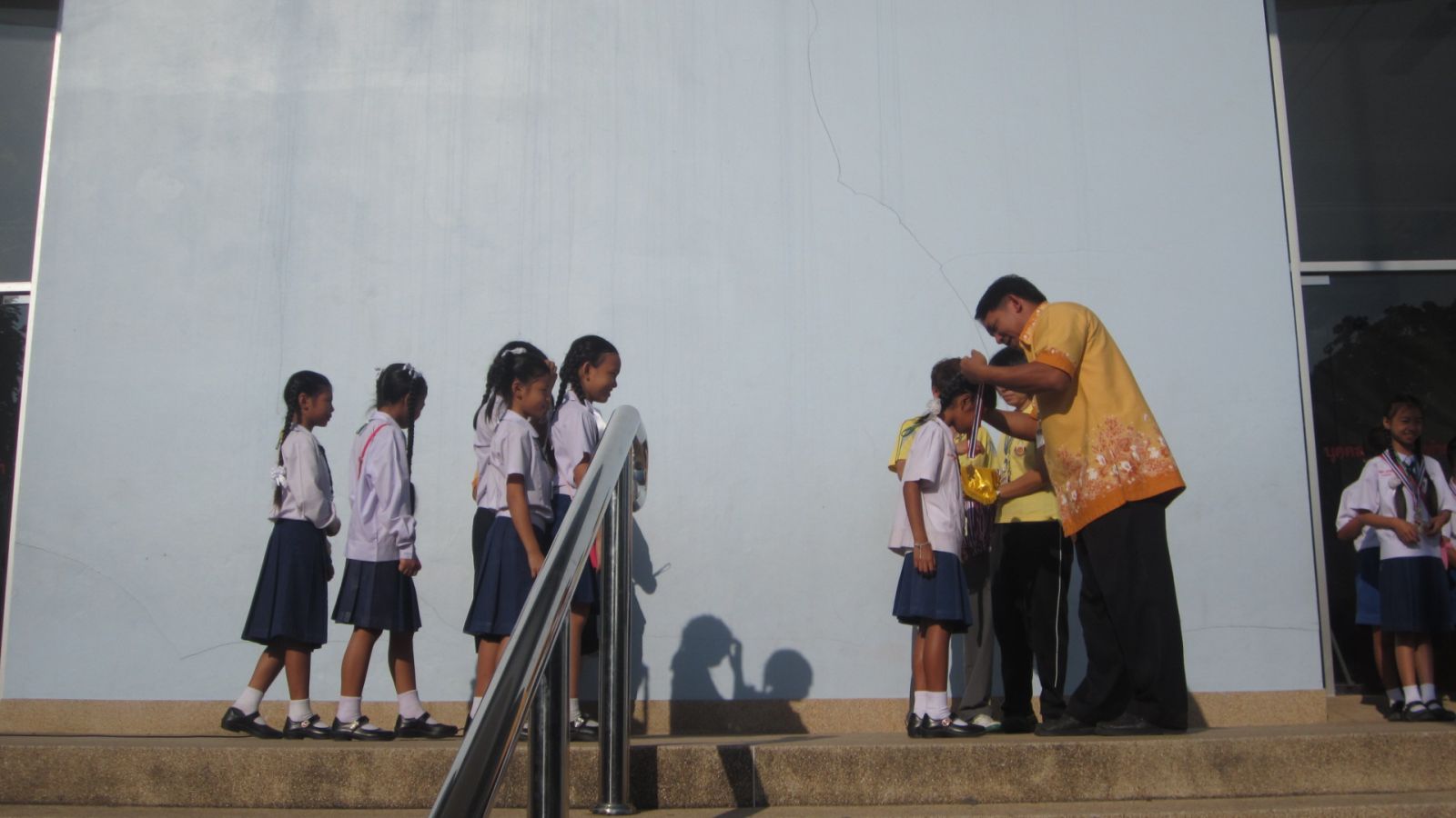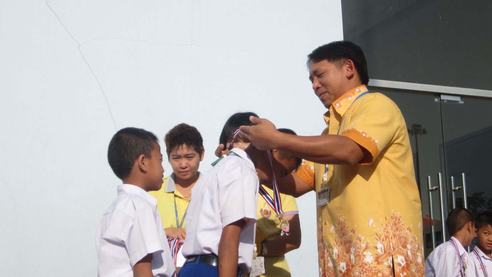วันที่ 21 พฤศจิกายน 2557 จากการแข่งขันกระโดดเชือก THAIOIL ROPE SKIPPING CHAMPIONSHIPS ครั้งที่๔ ที่ผ่านมาโดยมีนักเรียนเข้าร่วมแข่งขันและได้รับรางวัลต่างๆ จึงได้จัดพิธีมอบเหรียญรางวัล โดยมี ดร.จักฤช กันทอง ผู้อำนวยการเป็นประธานมอบเหรียญรางวัลให้กับนักเรียนที่เป็นตัวแทนเข้าแข่งขัน และมอบของที่ระลึกให้กับครูผู้ฝึกสอน ครูดารา แหลมหลัก และครูอรอุมา สำหรับการแข่งครั้งนี้มีผลการแข่งขันดังนี้