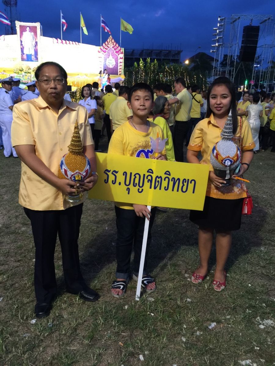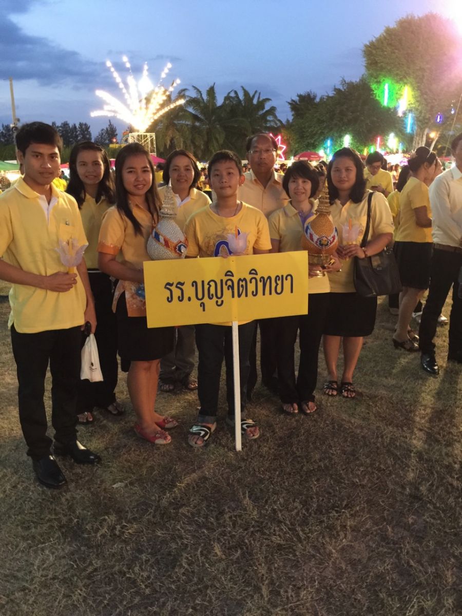 5 ธ.ค. 57 คณะครูโรงเรียนบุญจิตวิทยา นำโดย ที่ปรึกษาสนธยา ตุ๋นเจริญ และ ผช.ฯวรรณา เสนีย์วงศ์ ร่วมกิจกรรม เฉลิมพระชนมพรรษา ๕ ธันวามหาราช ชอง เทศบาลนครแหลมฉบัง ณ สวนเฉลิมพระเกียรติเทศบาลนครแหลมฉบัง โดยช่วงเช้า ร่วมตักบาตรข้าวสารอาหารแห้ง ช่วงค่ำ ร่วมพิธีจุดเทียนชัยถวายพระพร...