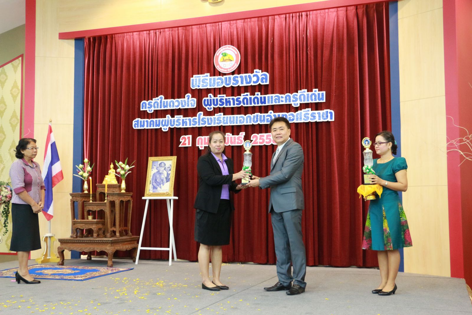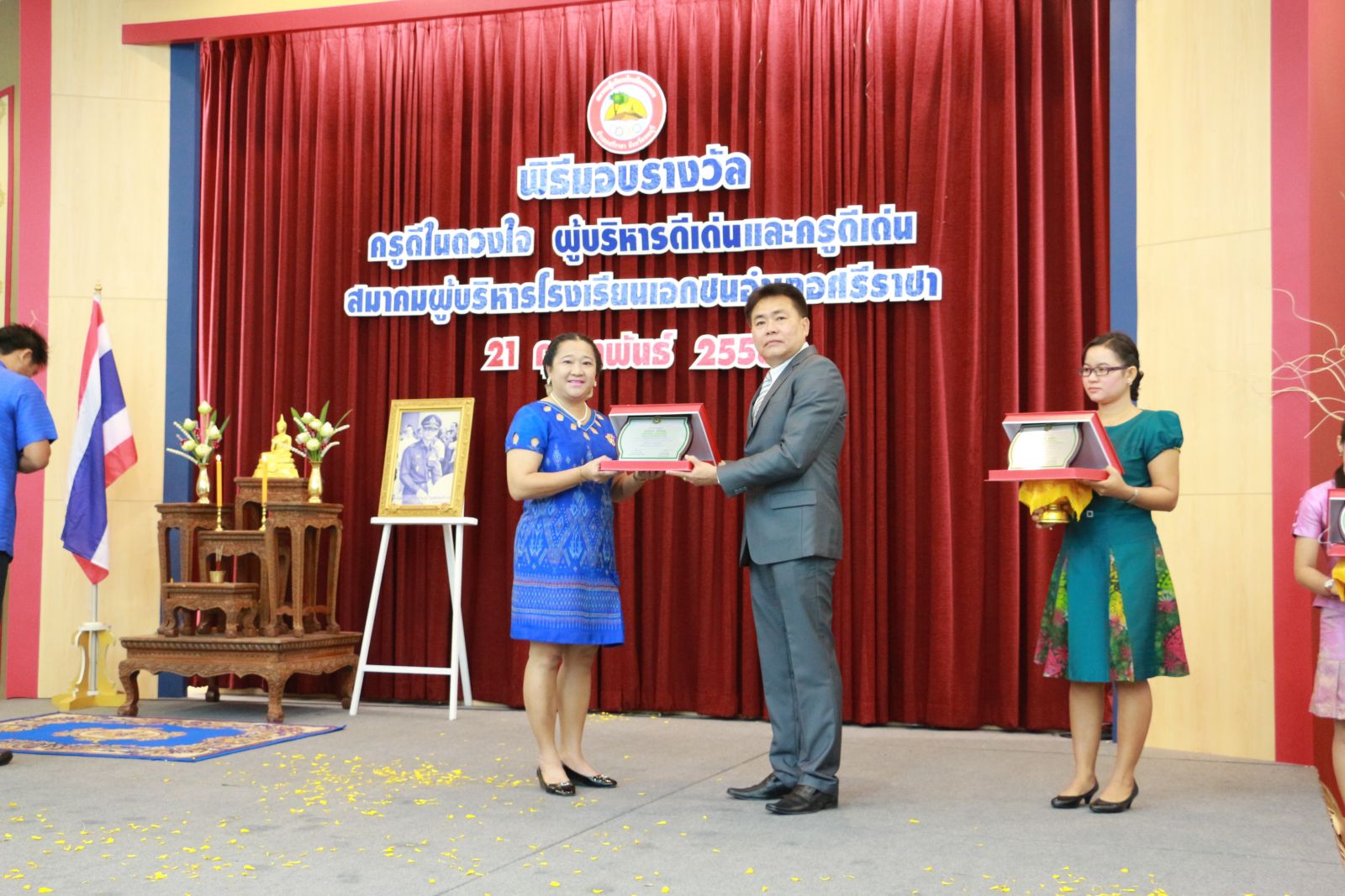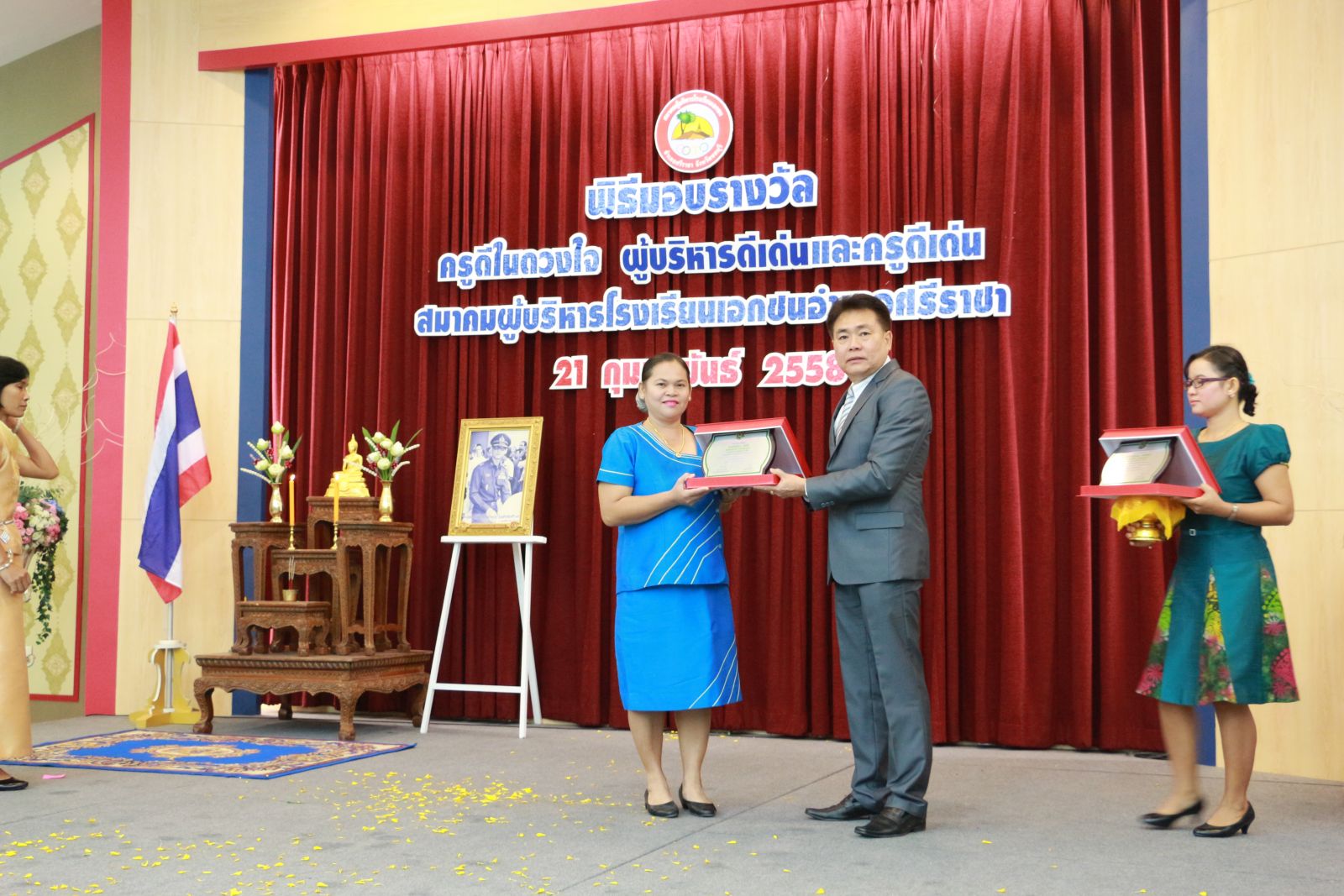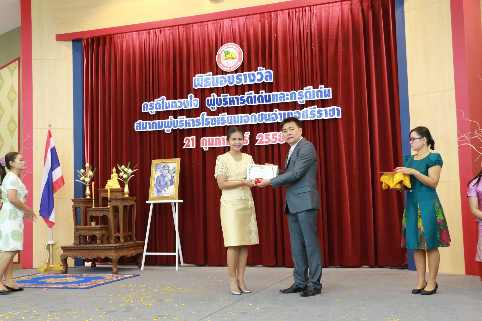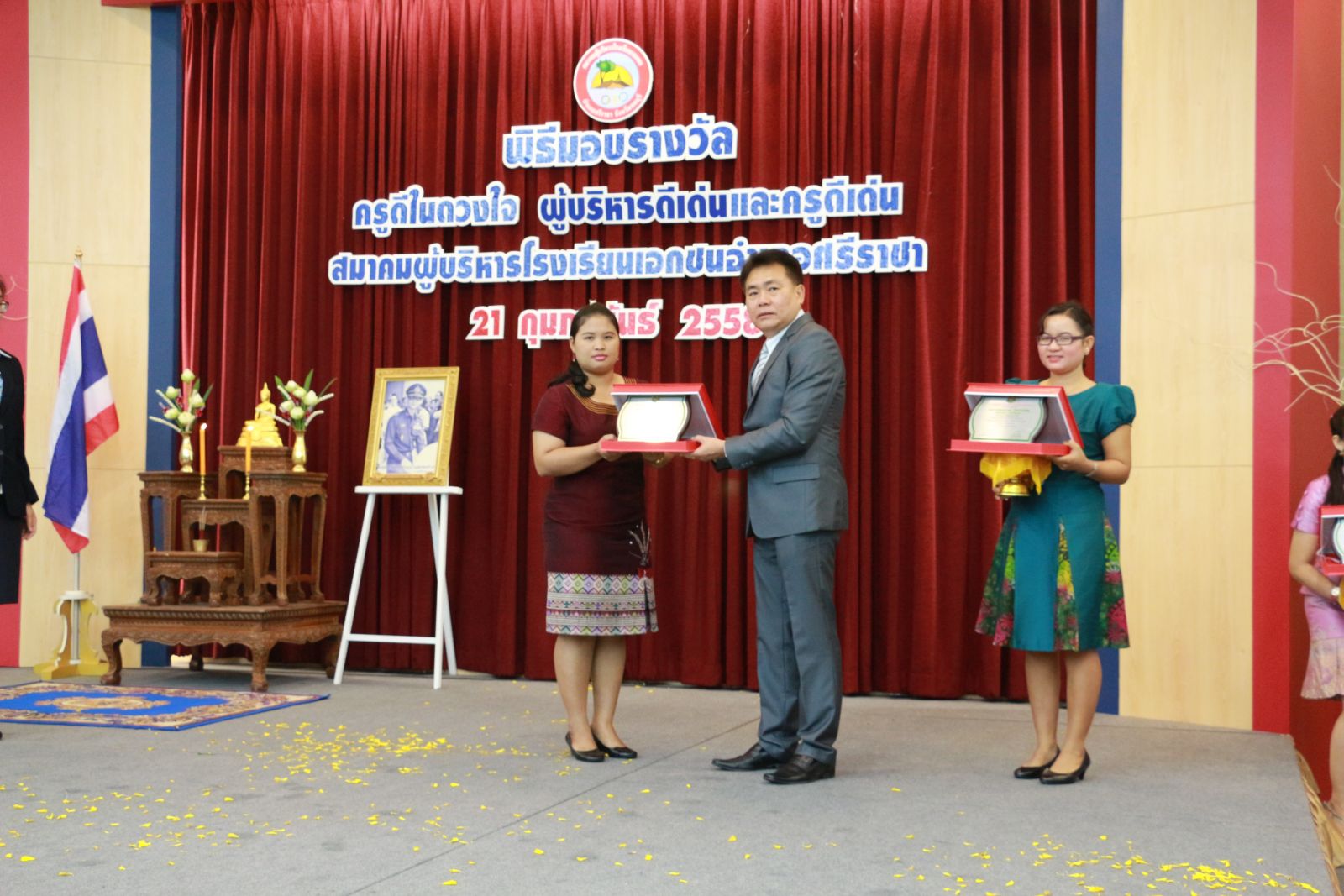 รับรางวัล ครูดีในดวงใจ ผู้บริหารดีเด่นและครูดีเด่น วันที่ 21 กุมภาพันธ์ 2558 ณ โรงเรียนอัสสัมชัญศรีราชา