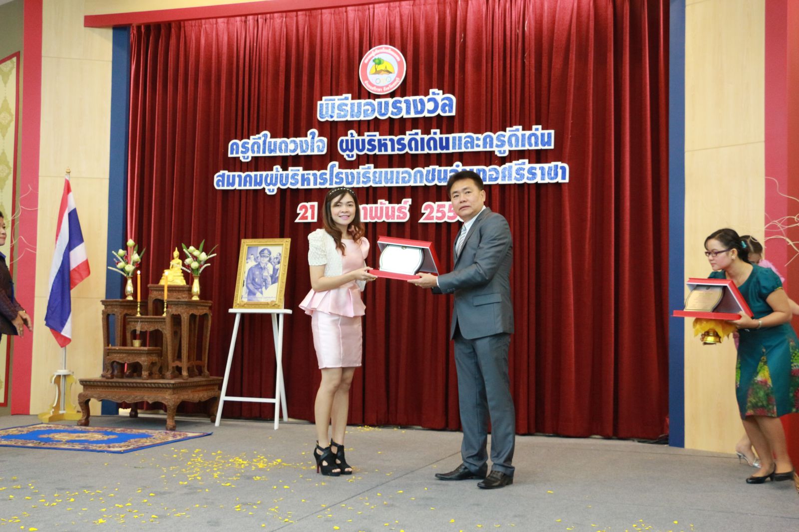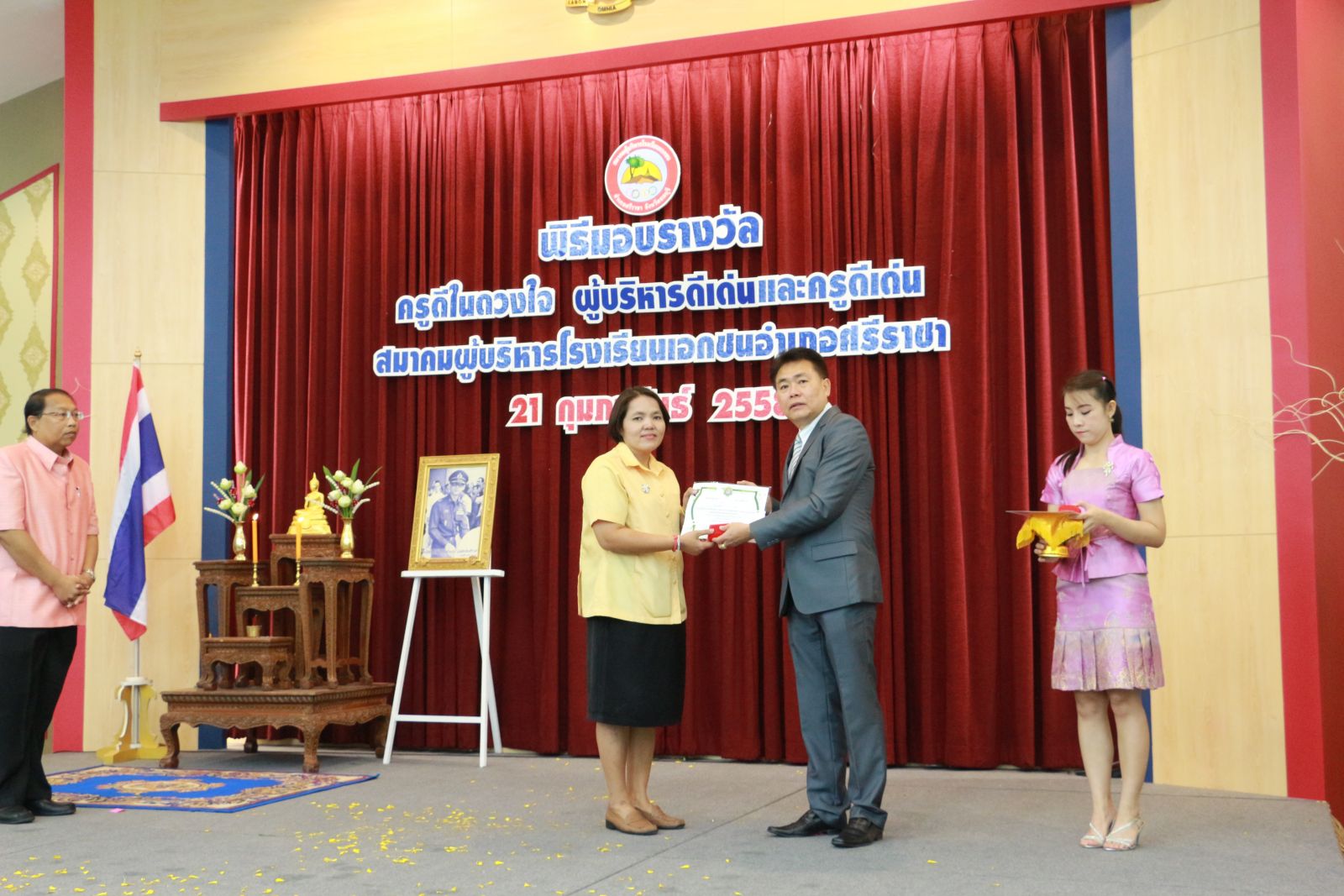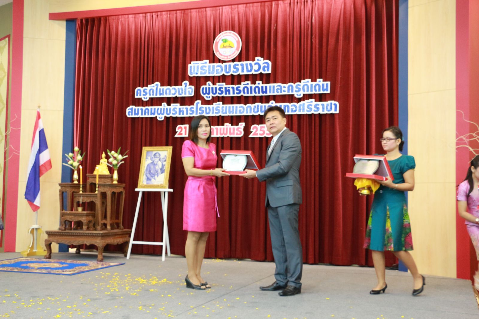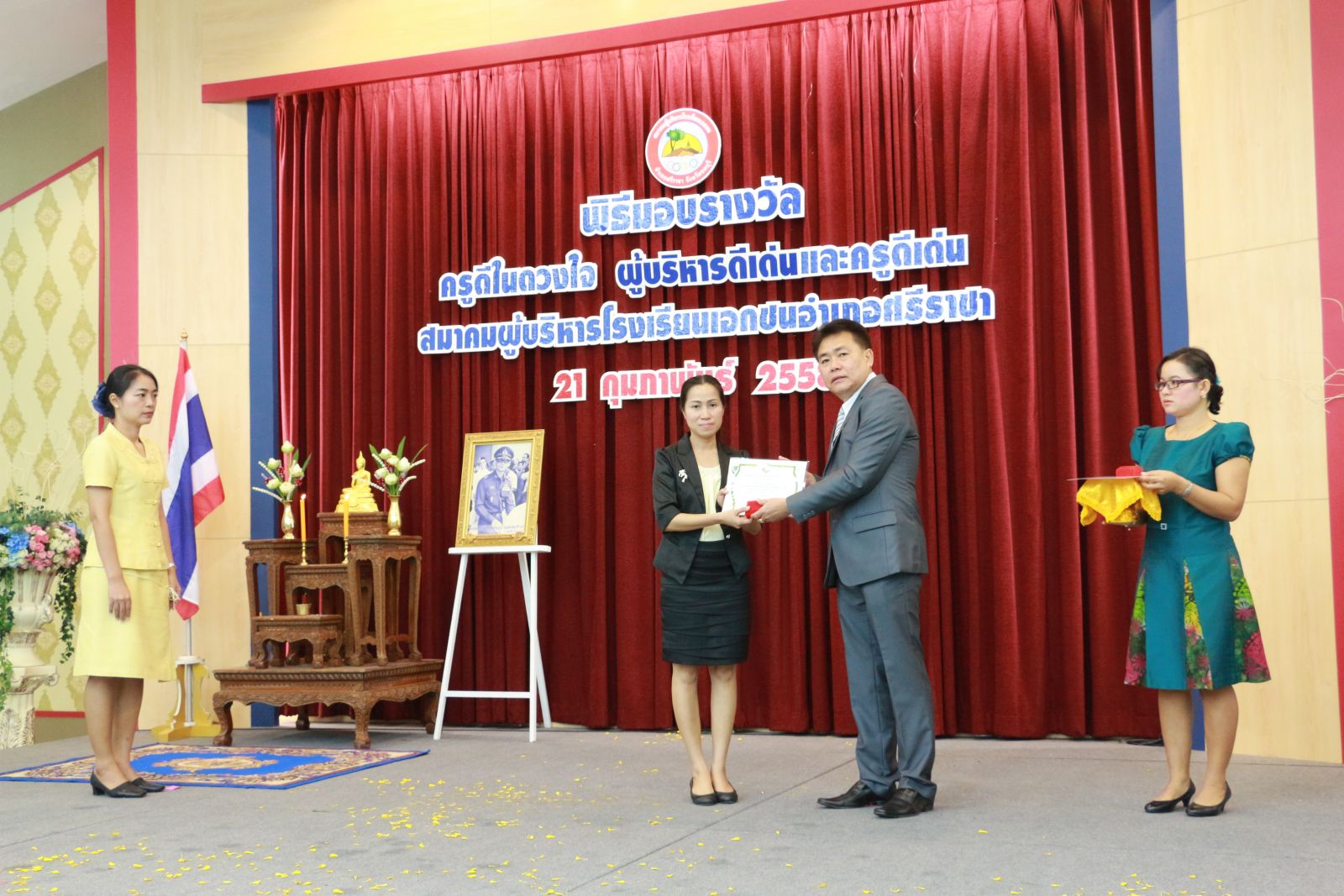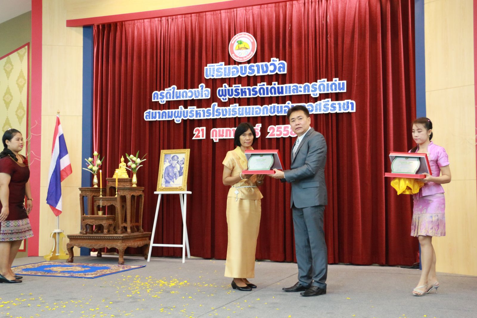 รับรางวัล ครูดีในดวงใจ ผู้บริหารดีเด่นและครูดีเด่น วันที่ 21 กุมภาพันธ์ 2558 ณ โรงเรียนอัสสัมชัญศรีราชา