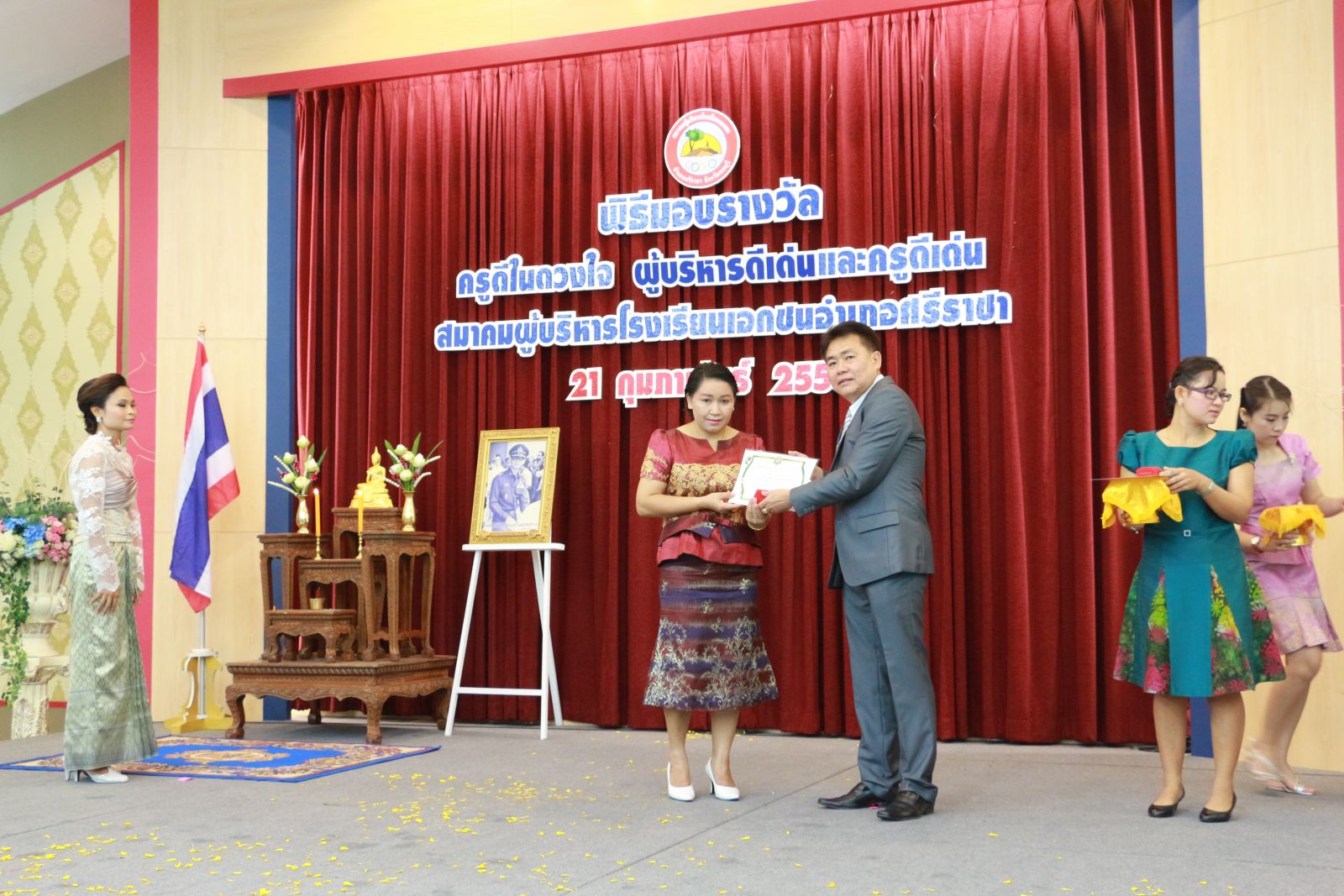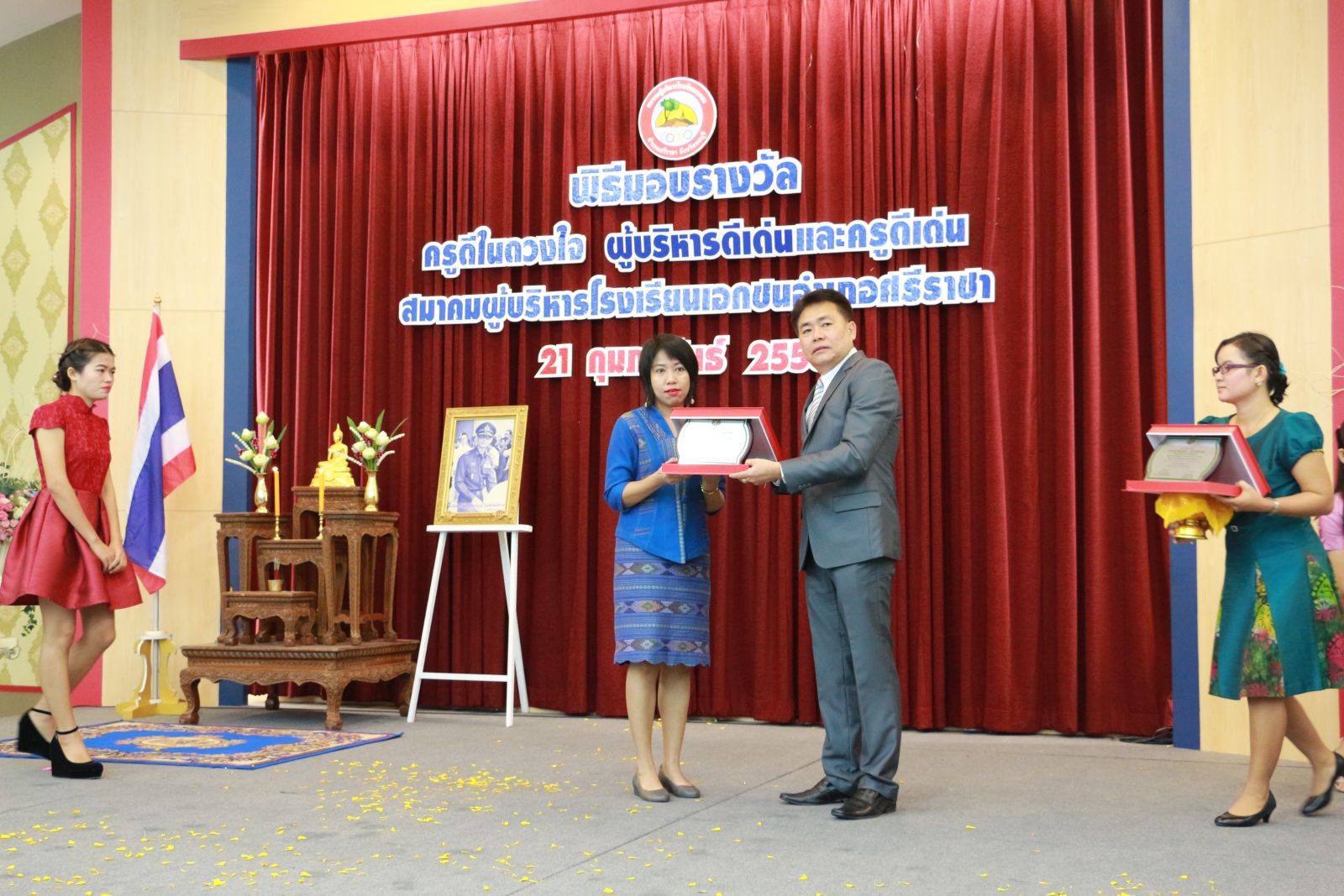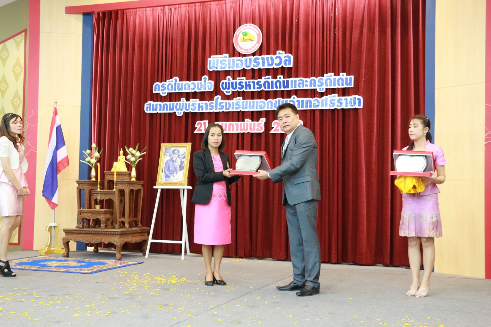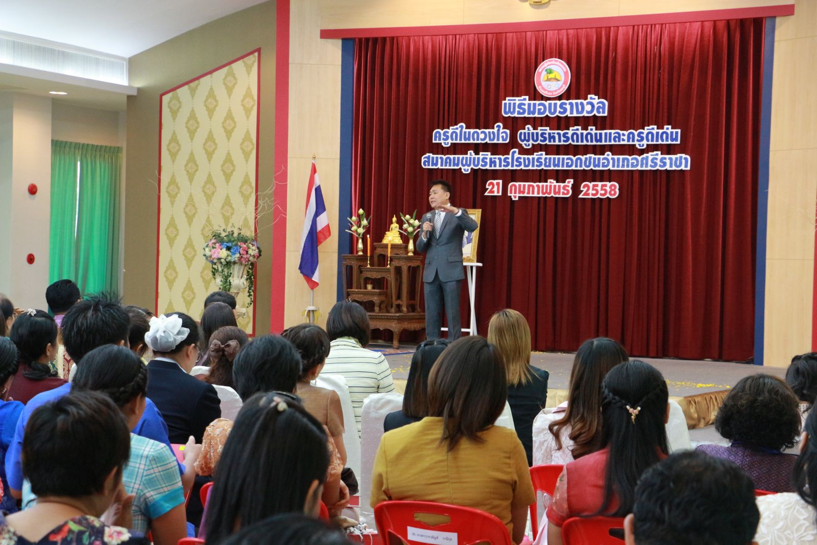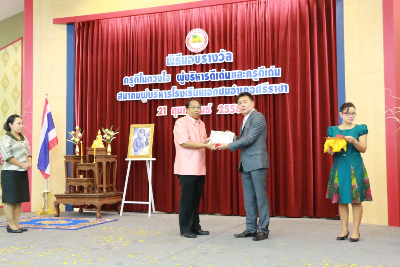รับรางวัล ครูดีในดวงใจ ผู้บริหารดีเด่นและครูดีเด่น วันที่ 21 กุมภาพันธ์ 2558 ณ โรงเรียนอัสสัมชัญศรีราชา