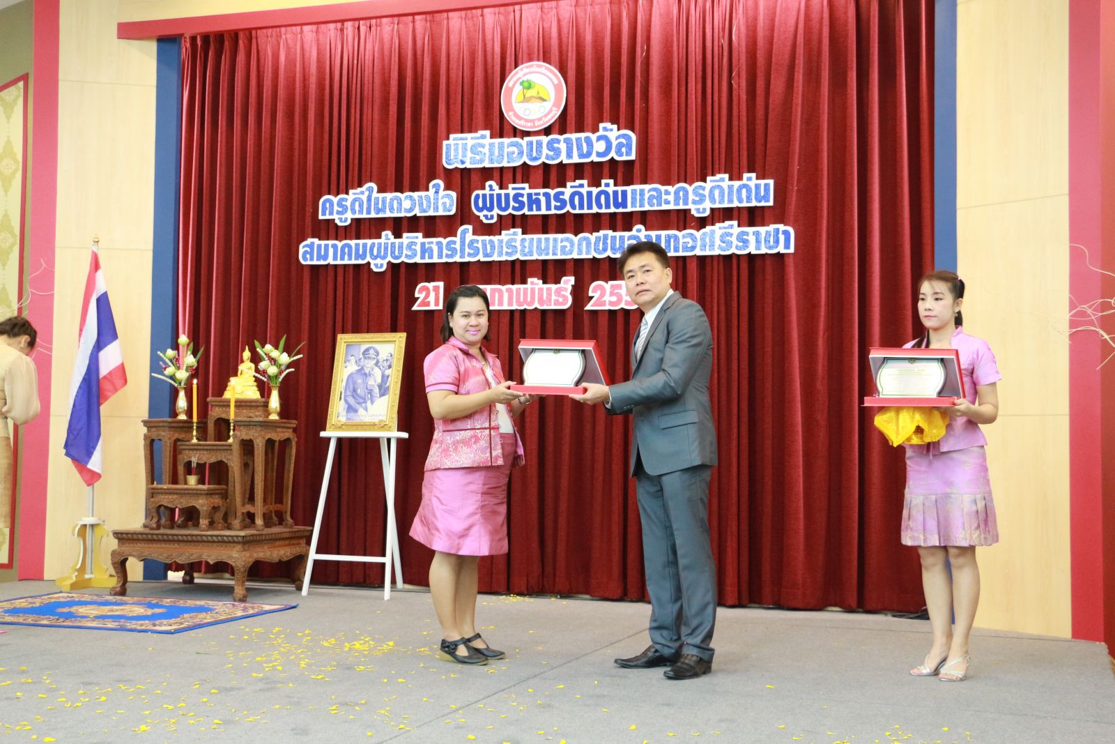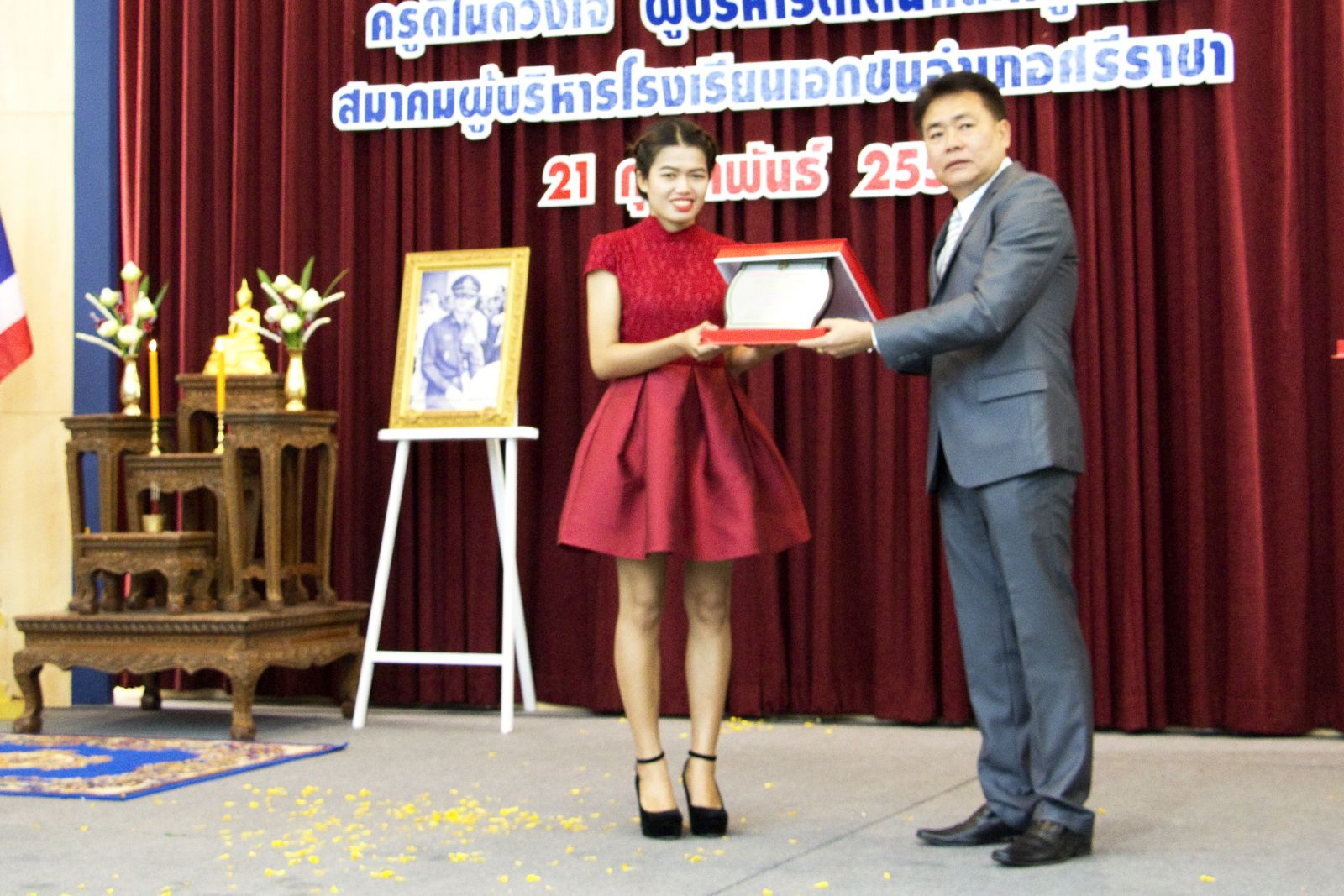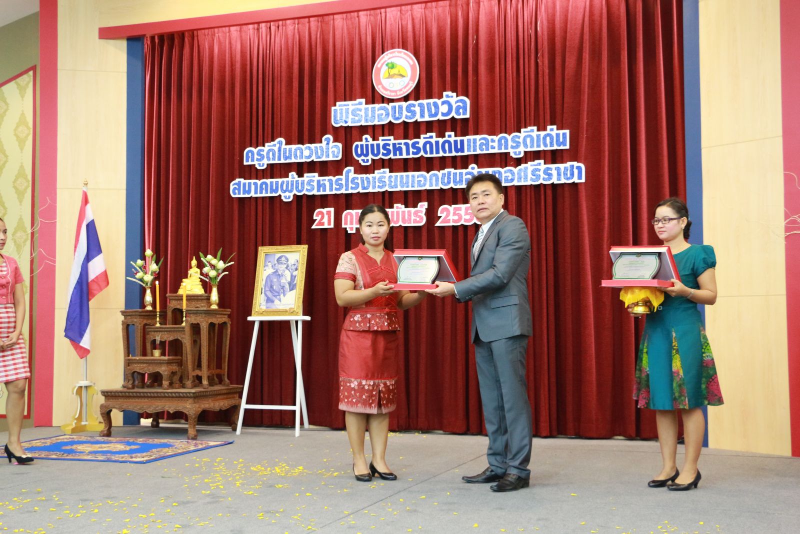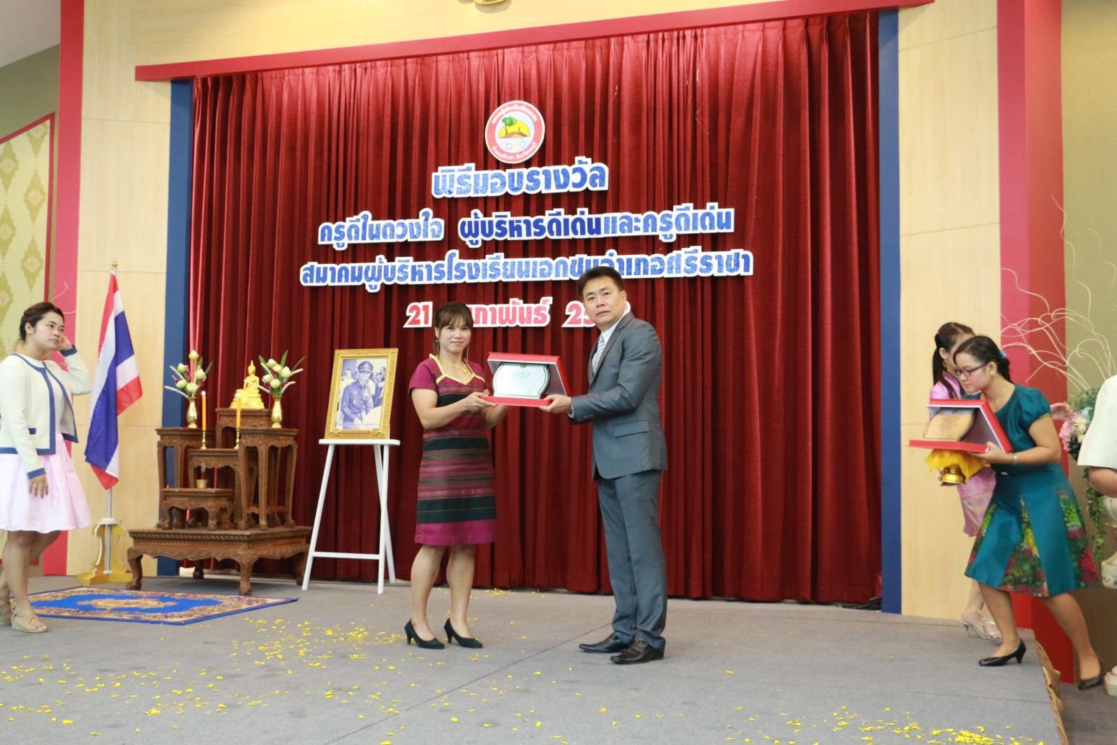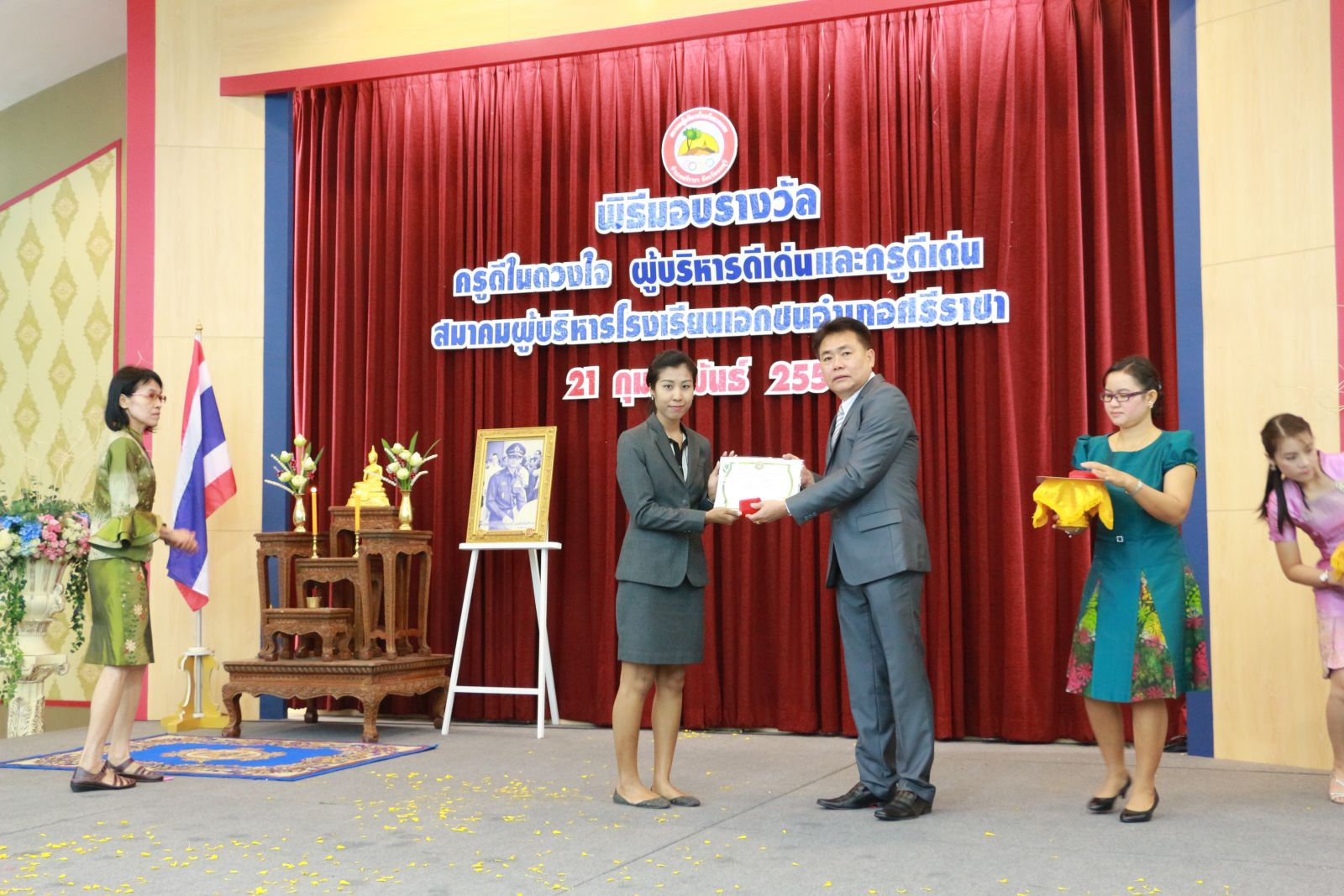 รับรางวัล ครูดีในดวงใจ ผู้บริหารดีเด่นและครูดีเด่น วันที่ 21 กุมภาพันธ์ 2558 ณ โรงเรียนอัสสัมชัญศรีราชา