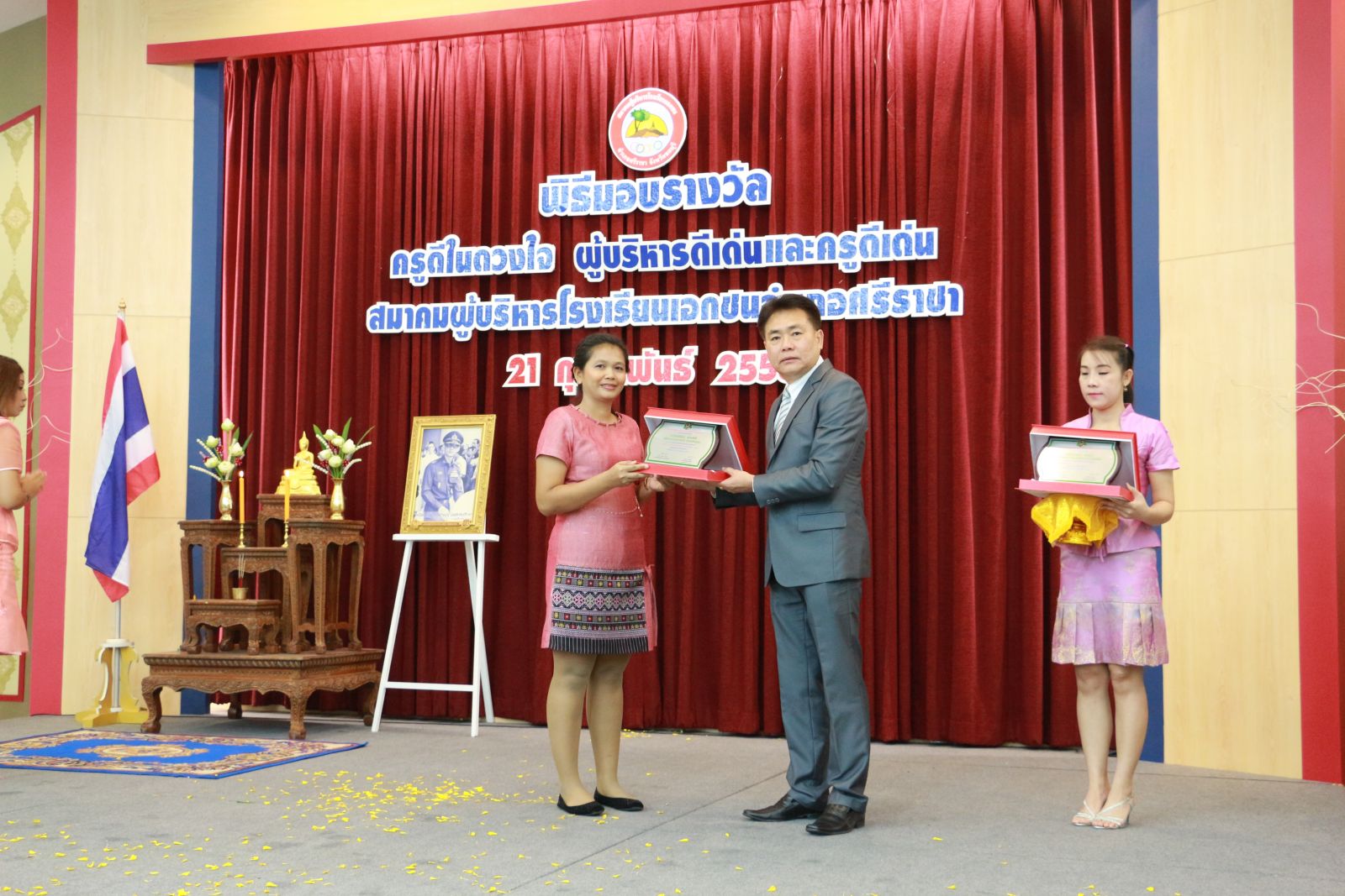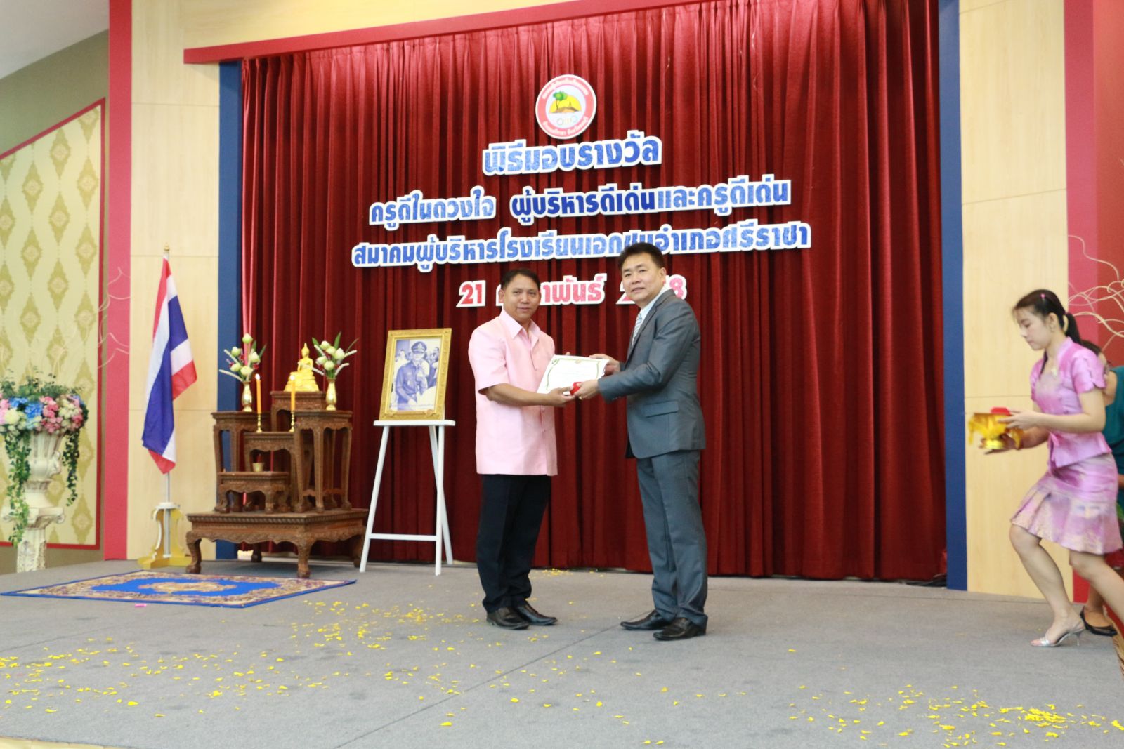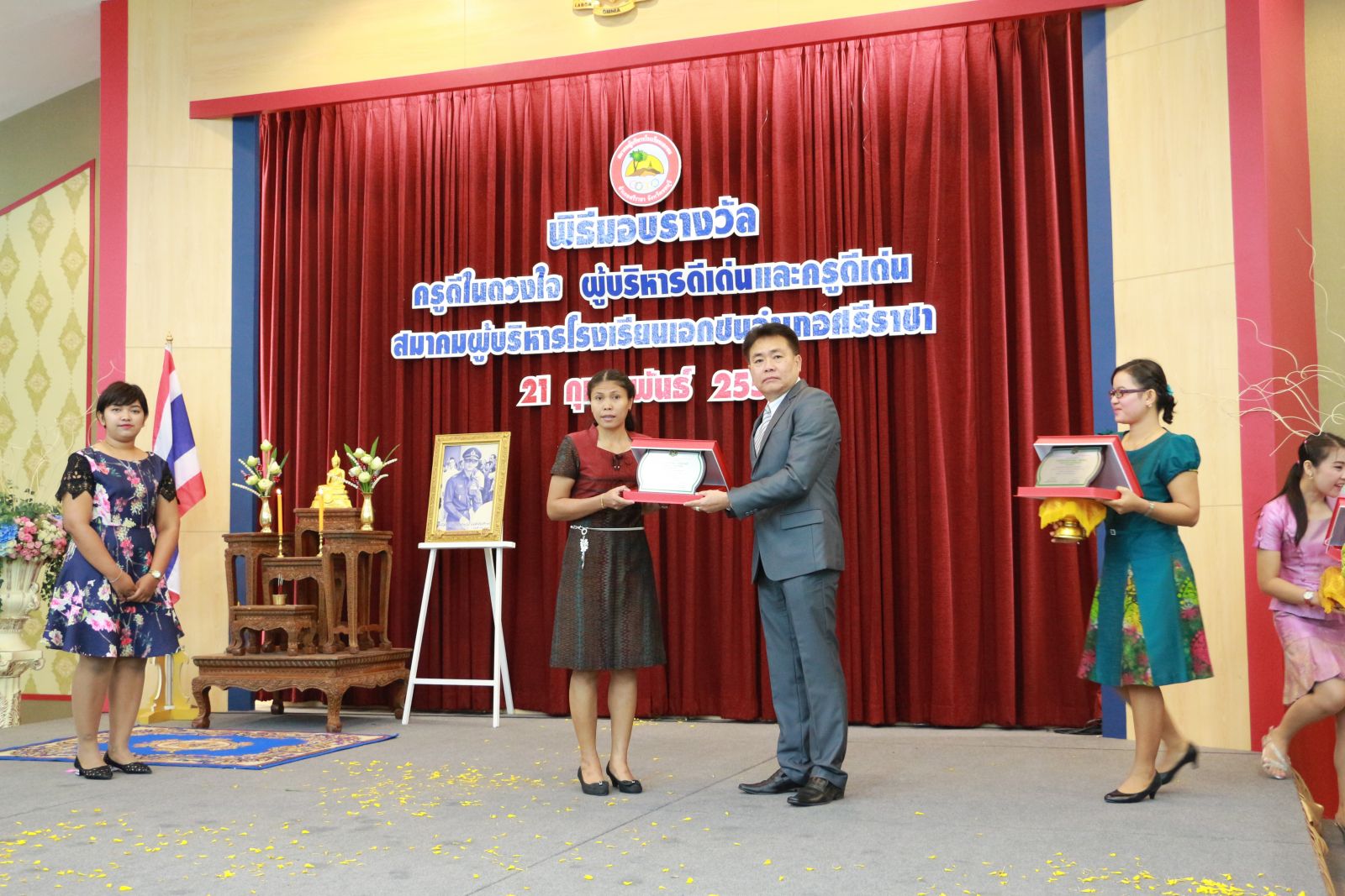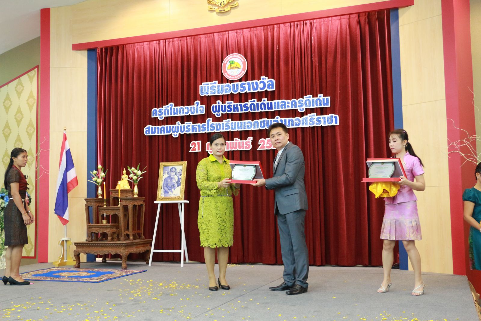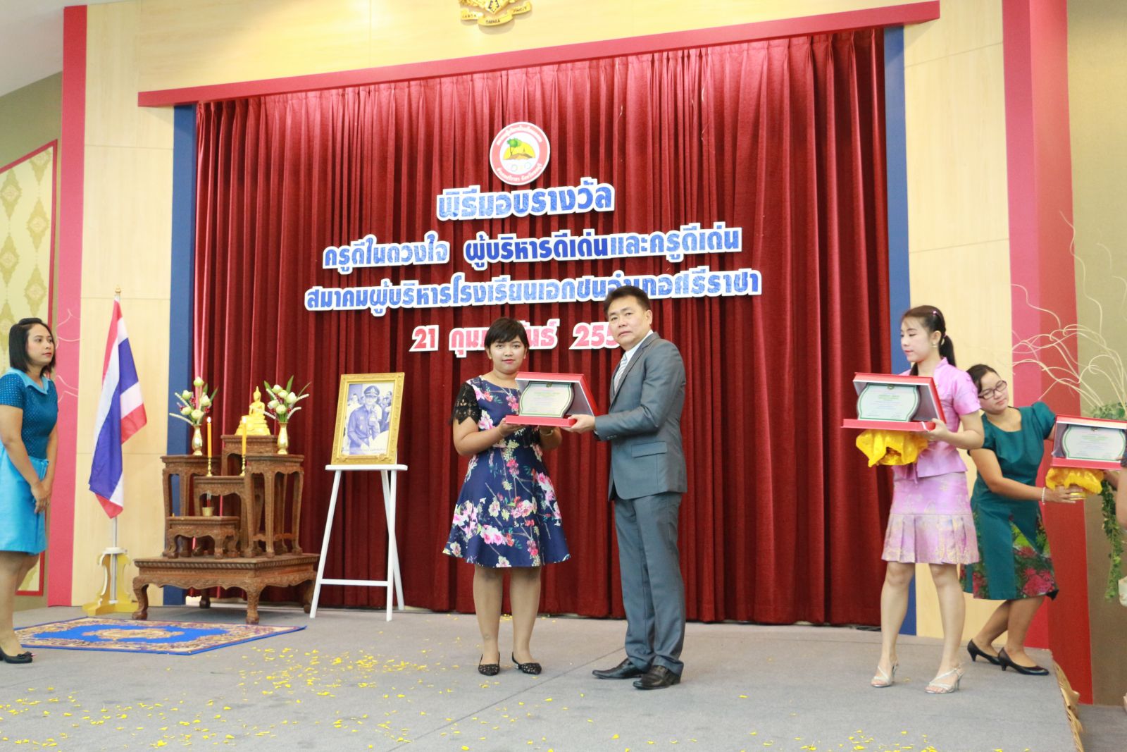 รับรางวัล ครูดีในดวงใจ ผู้บริหารดีเด่นและครูดีเด่น วันที่ 21 กุมภาพันธ์ 2558 ณ โรงเรียนอัสสัมชัญศรีราชา
